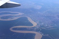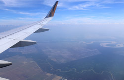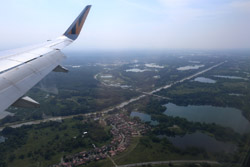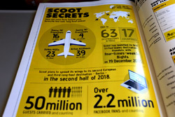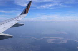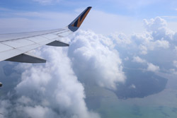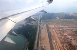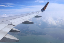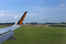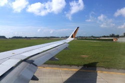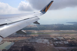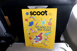 We pushed back on time with a healthy load of passengers. Flight attendants came along the aisle several times to thoroughly inspect everyone's compliance with safety requirements. It was much more serious than other discount carriers that I've been on. Announcements were full of the Scoot theme, including the flight deck's welcoming message as we "scooted" off to Ipoh. Flight time would be under an hour and the weather would be good today.