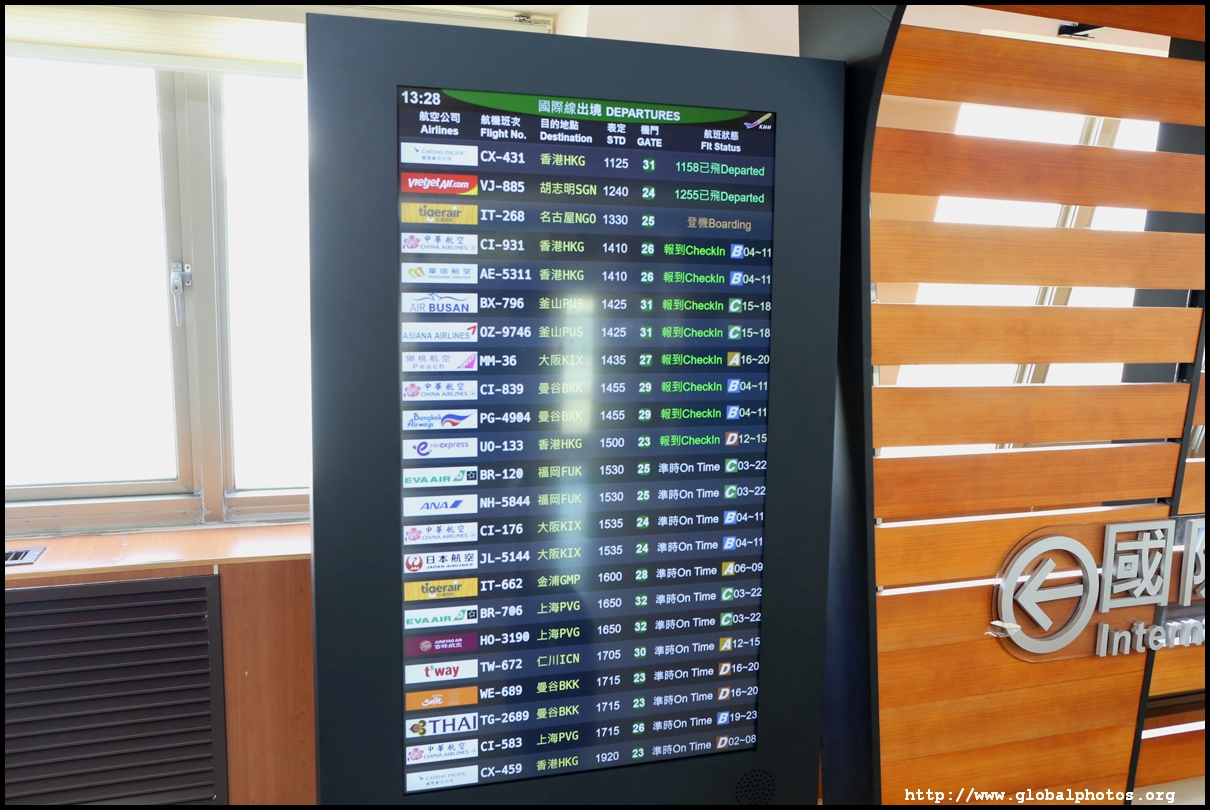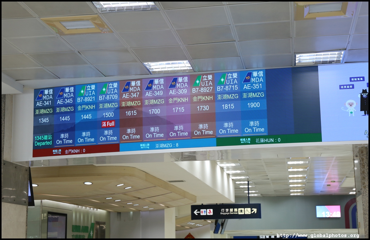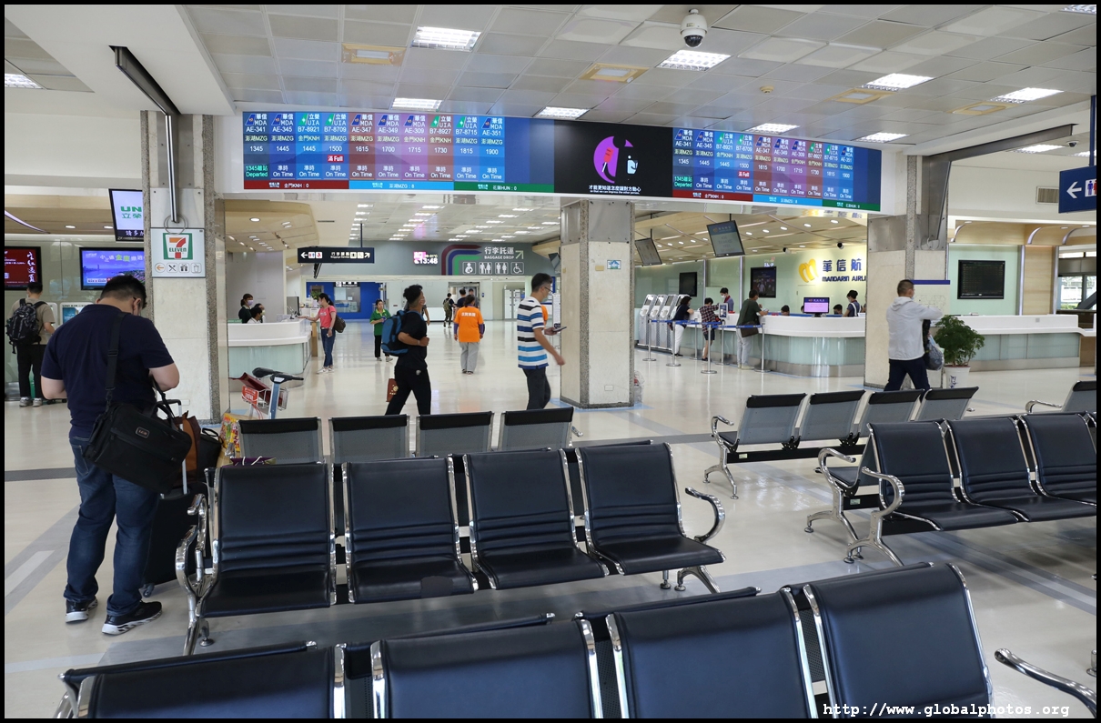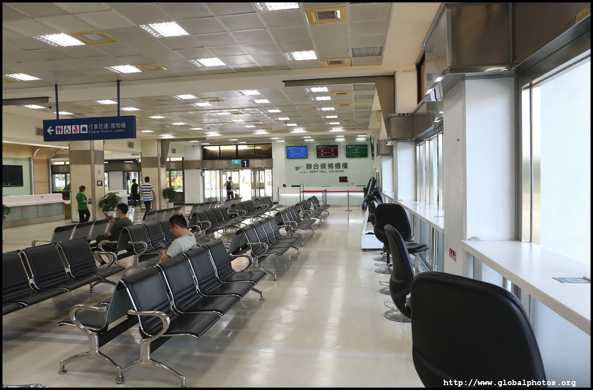 The departures check-in area is downstairs on the ground floor, but even that area wasn't busy. Checking out the flight board, most flights are headed to the outer islands of Penghu and Kinmen, both of which run fairly frequently throughout the day. You can take the high-speed train to Taipei instead.