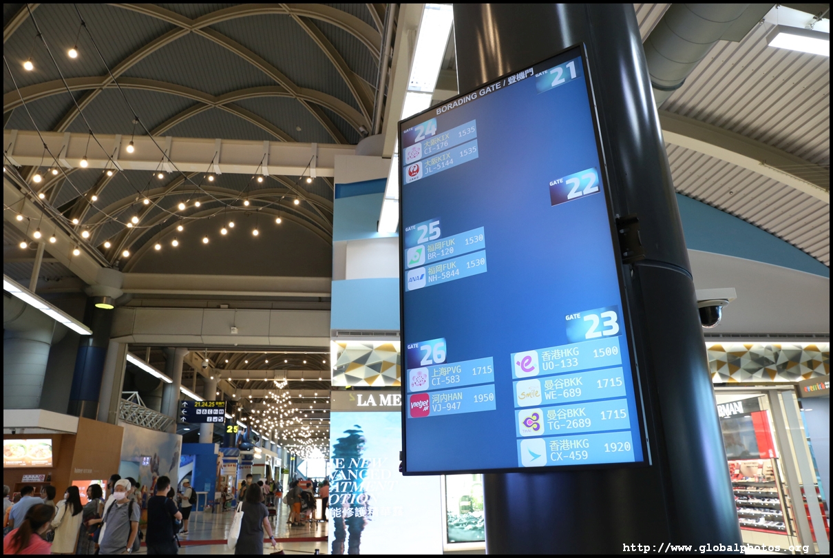 Hong Kong Express' counters are off to the right and it was 90 minutes from departure. There was no line for the check-in agent and I went straight in. My hand-carry was a bit over the limit at 8.4kg while my backpack was under 6kg. The agent reminded me not to buy any more duty-free afterwards and affixed the cabin-approved tags to both bags. She also mentioned changing my seat would incur a fee, something I didn't get departing Hong Kong. Scanning the departures board, this isn't a busy airport at all, a pleasant change compared to Taipei.
