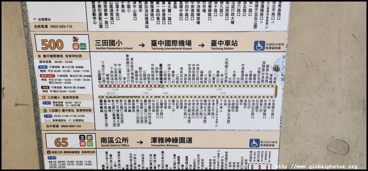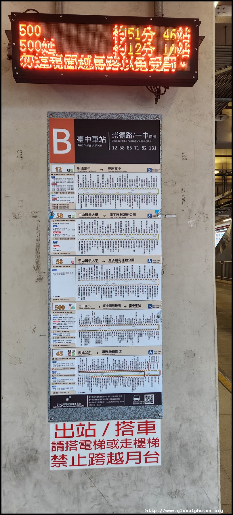 Taichung's bus signs are almost entirely in Chinese except the terminating stations. The arrows on this one are pointing in the reverse direction, making it even more confusing.