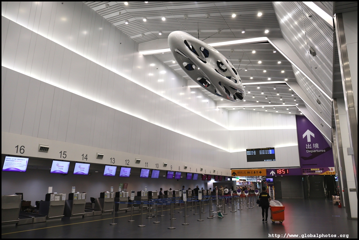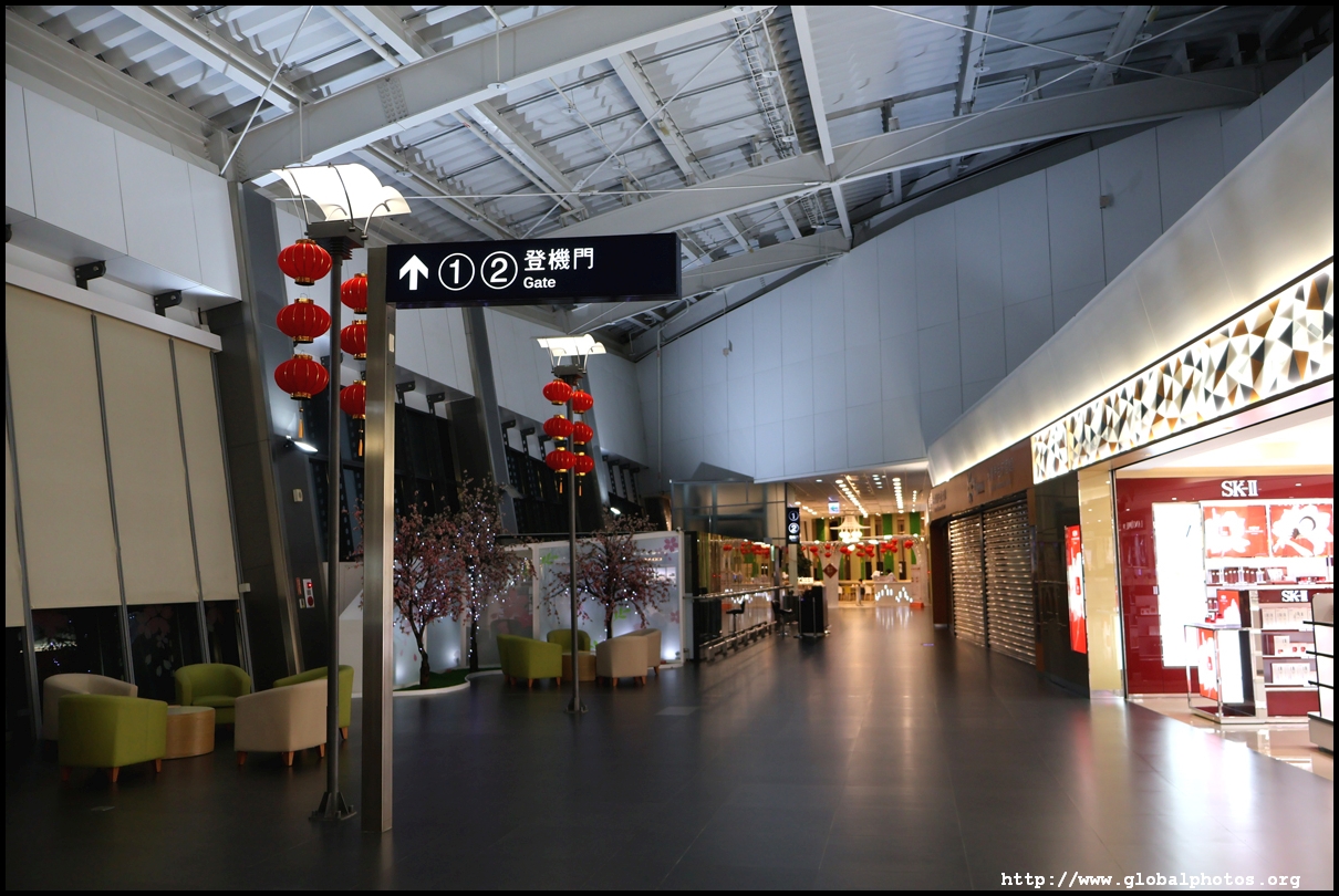 Like other Taiwanese airports, departures and arrivals share a single floor, but rightfully placed so they don't interfere with each other.