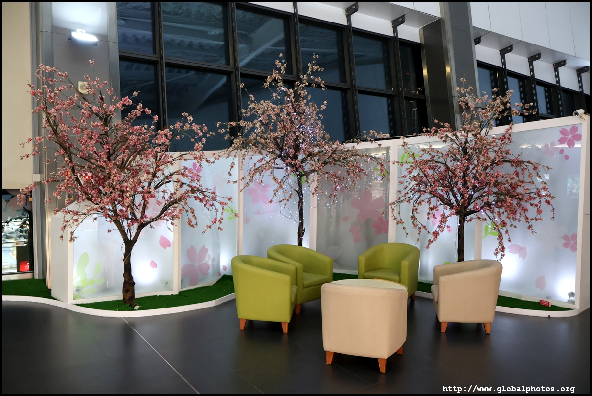 There are various seating areas along this hall between shops and restaurants that don't belong to the gate area. They were well-furnished with nice tables and chairs and I found a window spot with a laptop desk and an outlet to charge my phone.
