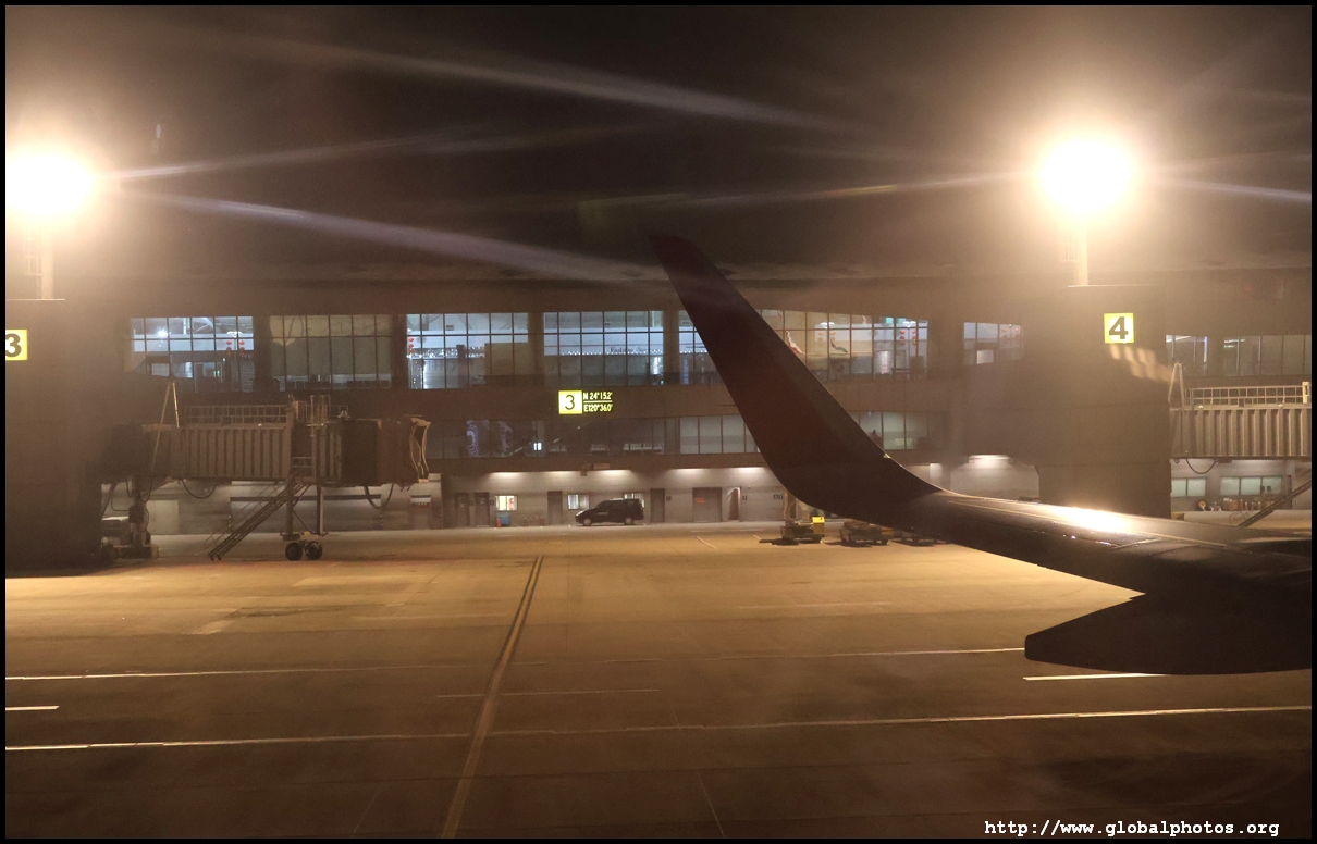 Our descent started at 9:24pm and we hit bits of bumps along the way, although nothing too serious, touching down at 9:56pm. Unfortunately, we ended up at remote stand 307 less than 10 minutes later, requiring a bus ride into the terminal. I guess with these late evening arrivals, they're pretty much done for the day and they don't bother to park at the terminal overnight.