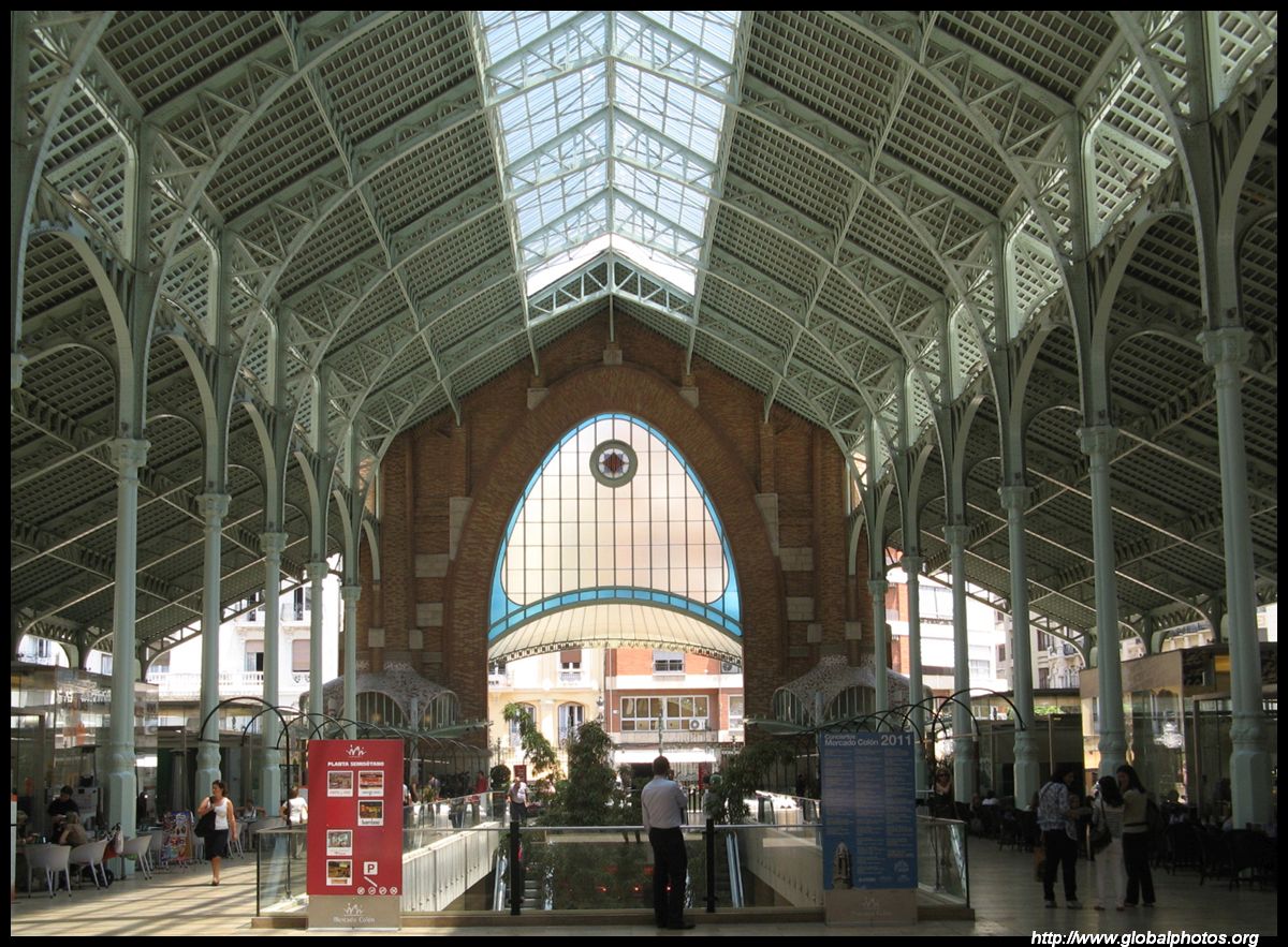 Mercado de Colon was built in 1914 with a modernist design. Today, it's no longer a traditional grocery market. The interiors have been renovated into a modern facility of cafes and restaurants on the ground floor, and a supermarket in the basement.