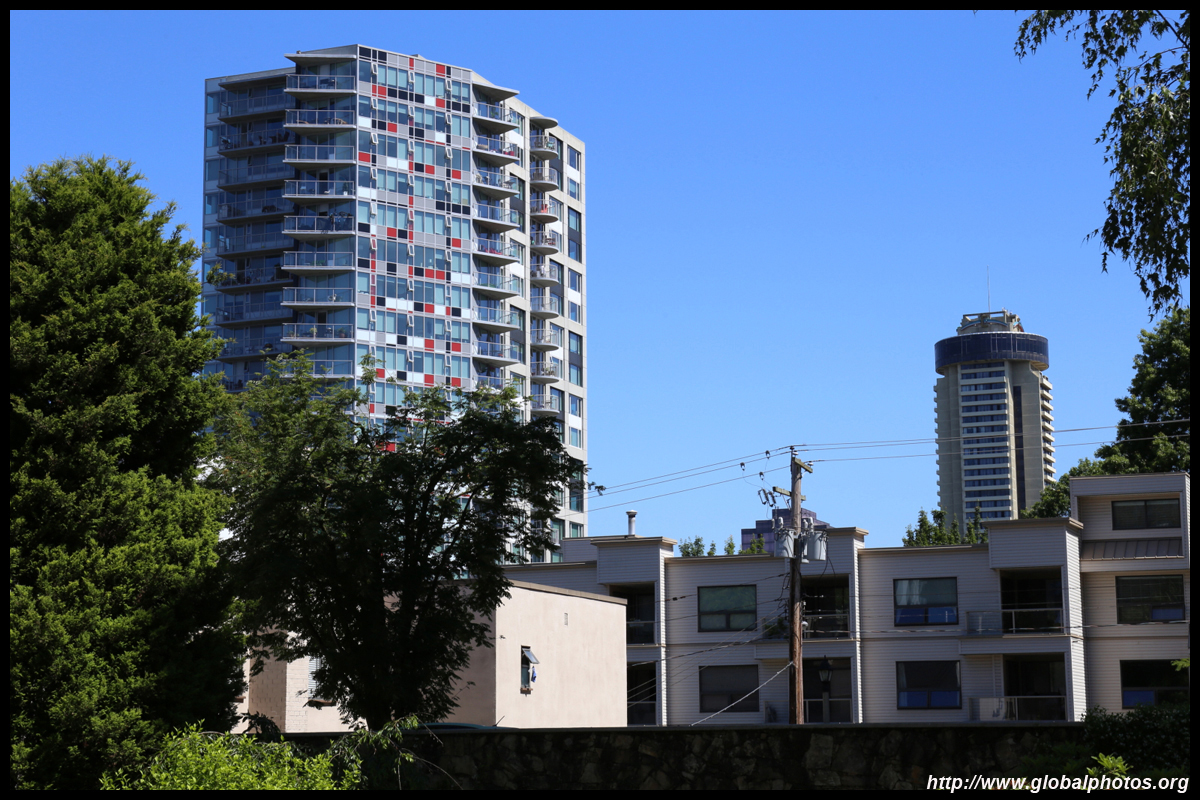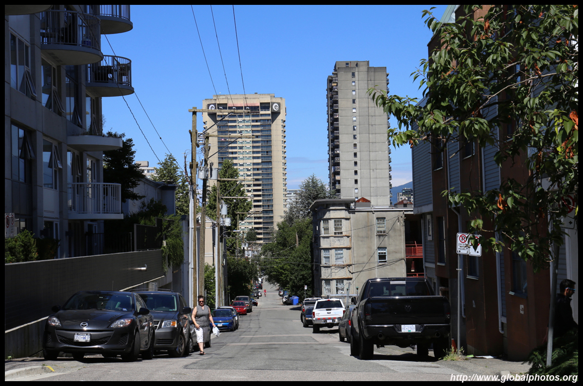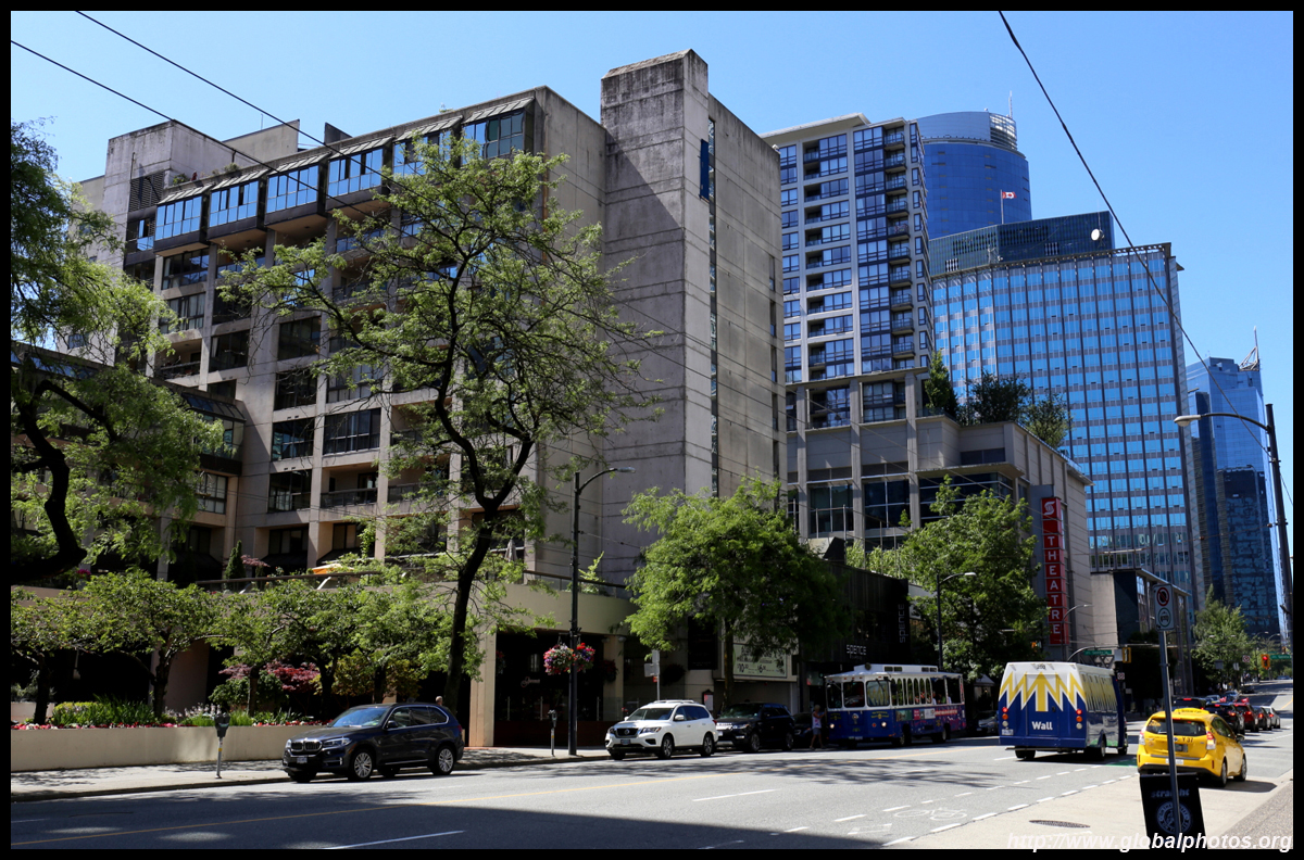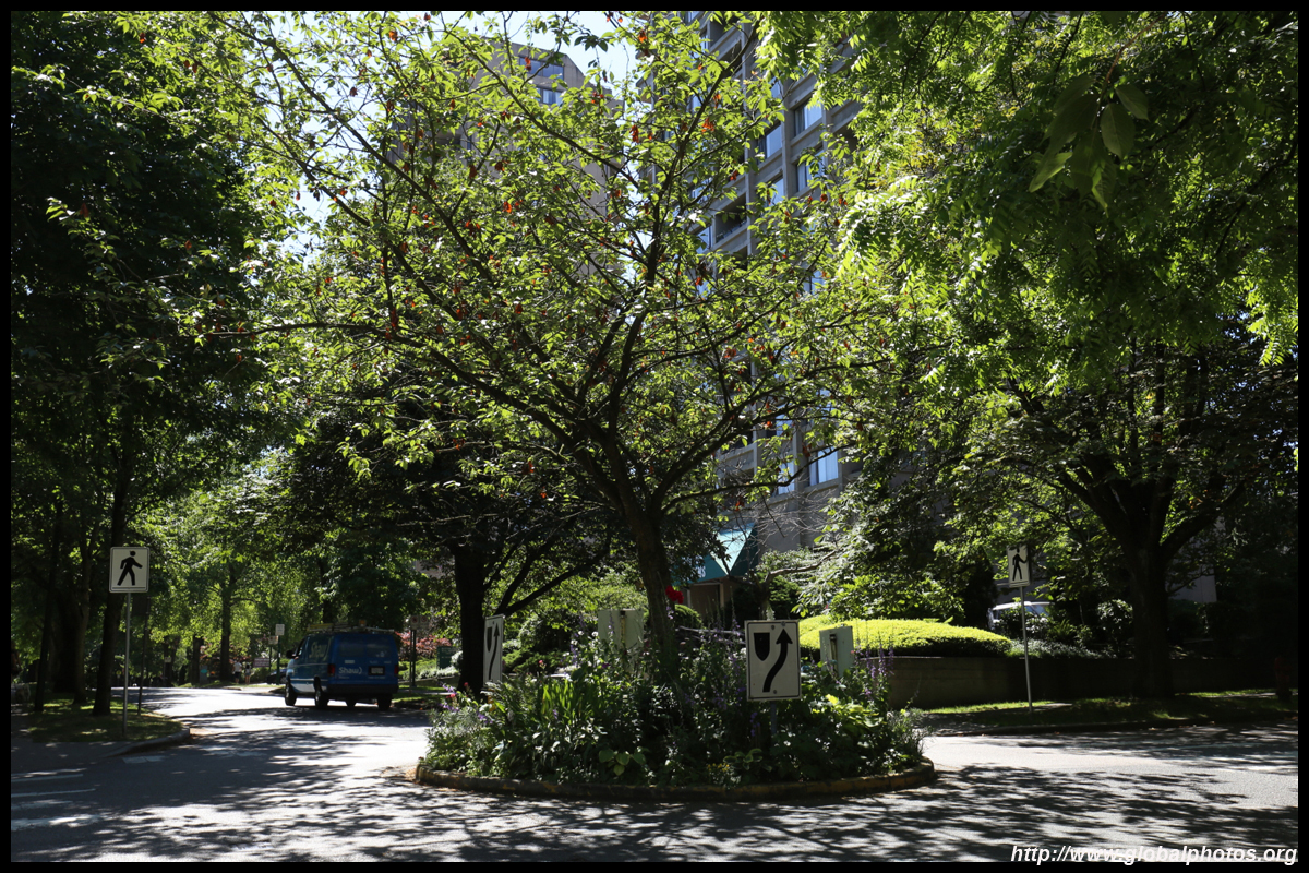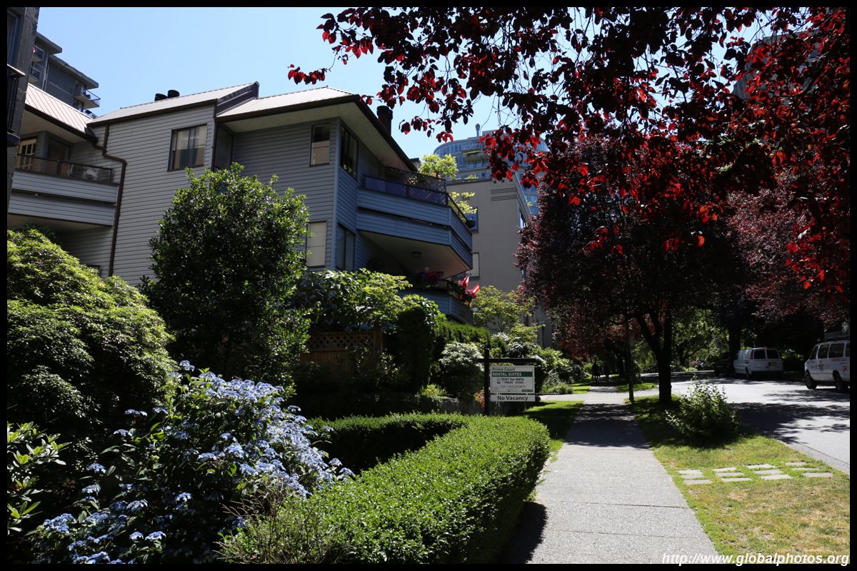 The West End neighbourhood is leafy and lowrise, although change began in the 1970s when the Edwardian houses were gradually replaced by highrises. It actually doesn't feel like a downtown location in here with nice landscaping and fairly sparse traffic.