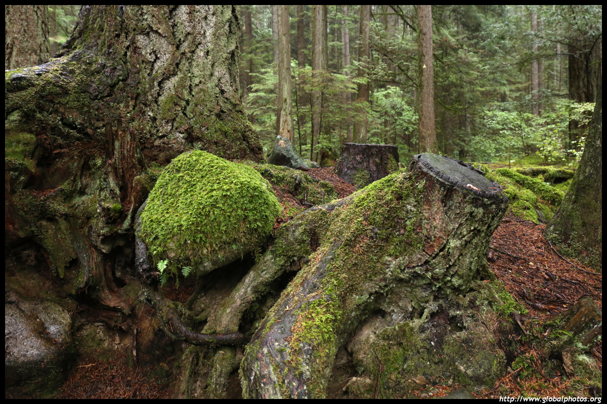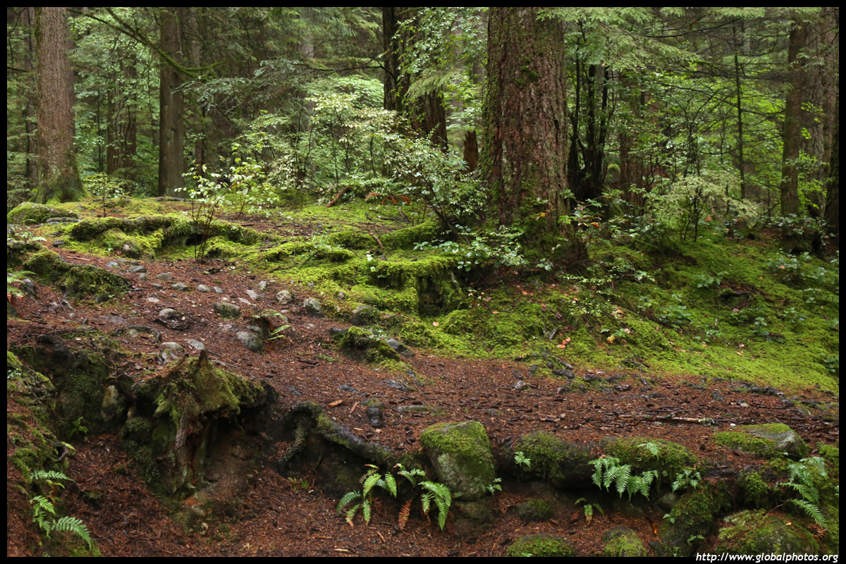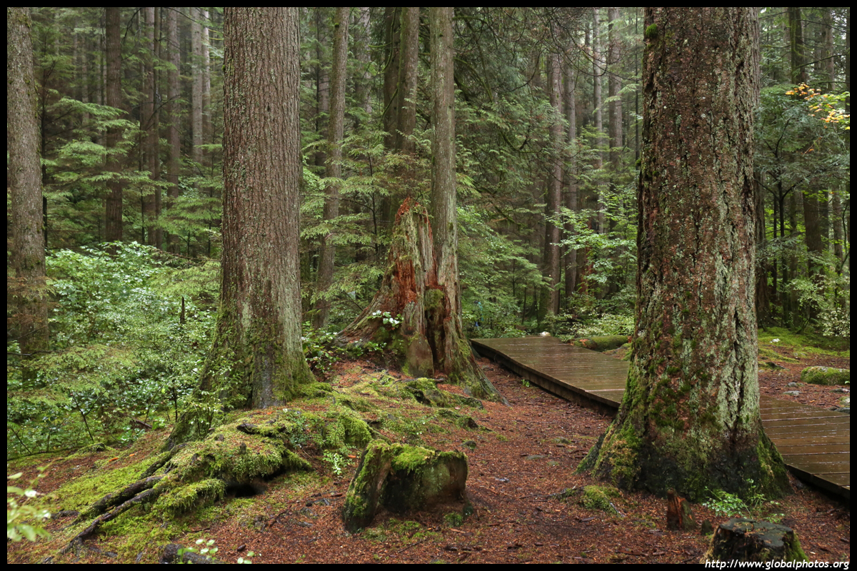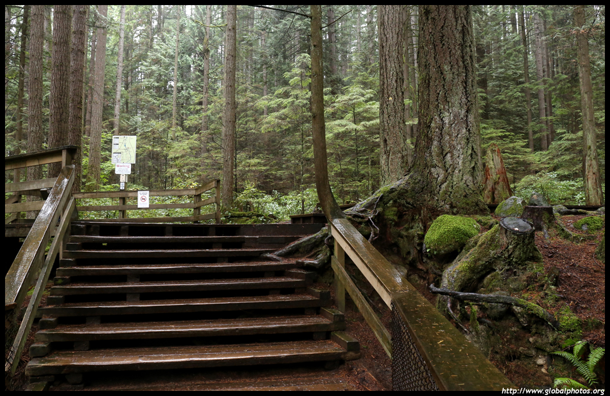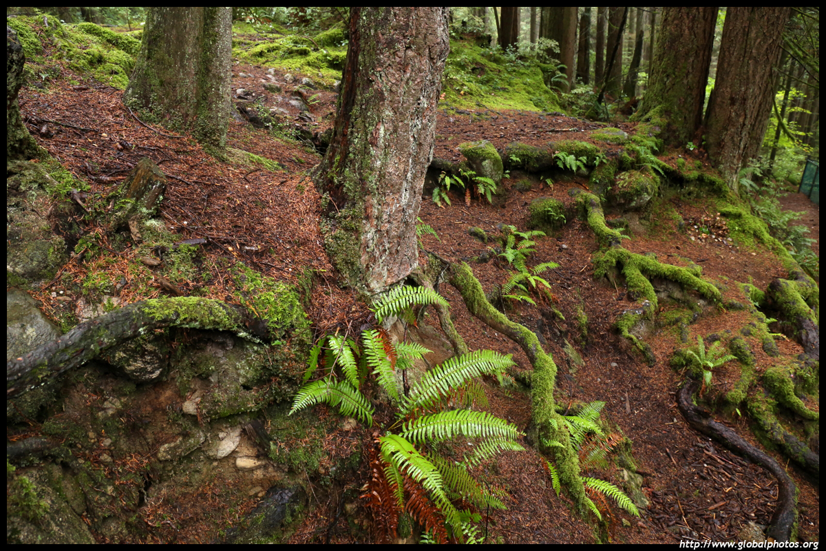 Opened in 1912, Lynn Canyon Park spans 617 acres of temperate rainforest with a suspension bridge 50m above the canyon. The park has plenty of very tall trees that will keep the ground shaded most of the time.