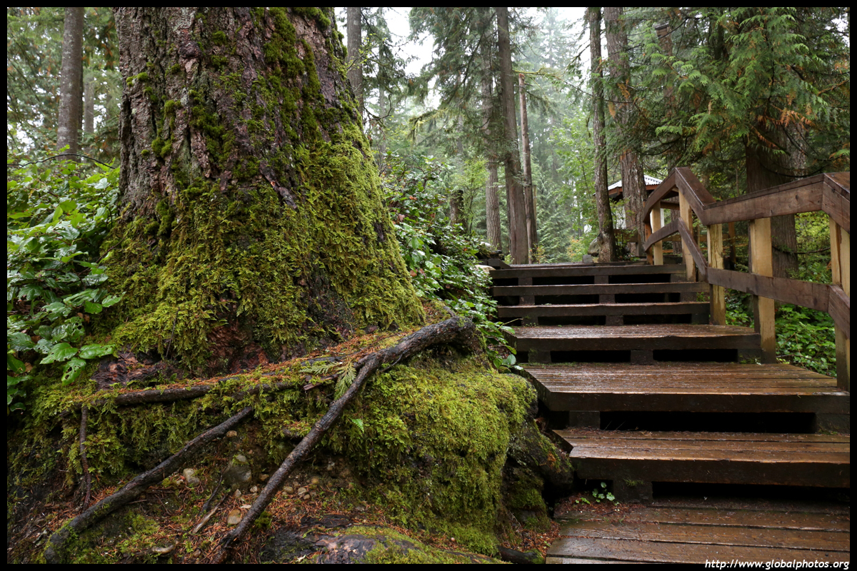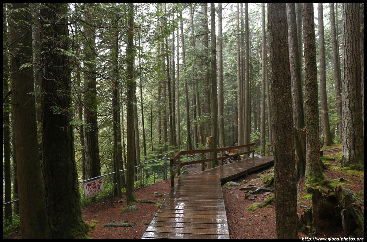 A lovely hiking path in between the tall trees continued on the other side, but with the rain starting to fall more heavily, I opted to enjoy just the bridge this time.