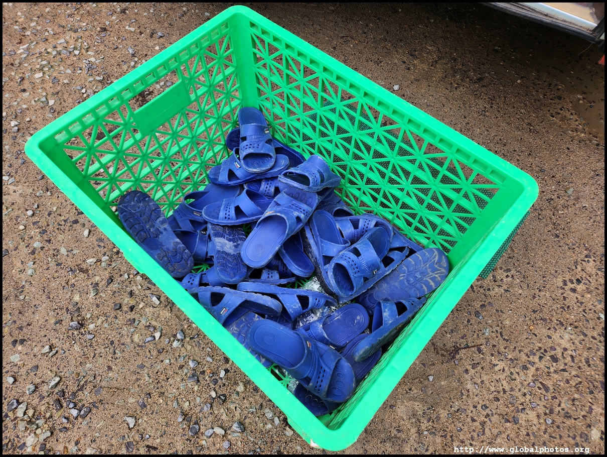 While I fumbled to put my shoes back on, I didn't notice there was a box of flip flops in front of the door. Apparently we could've used these to enter the rest stop.
