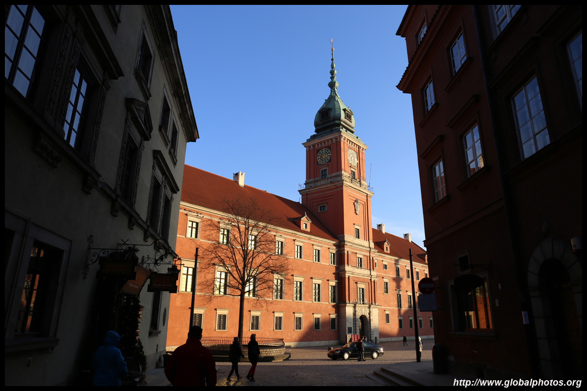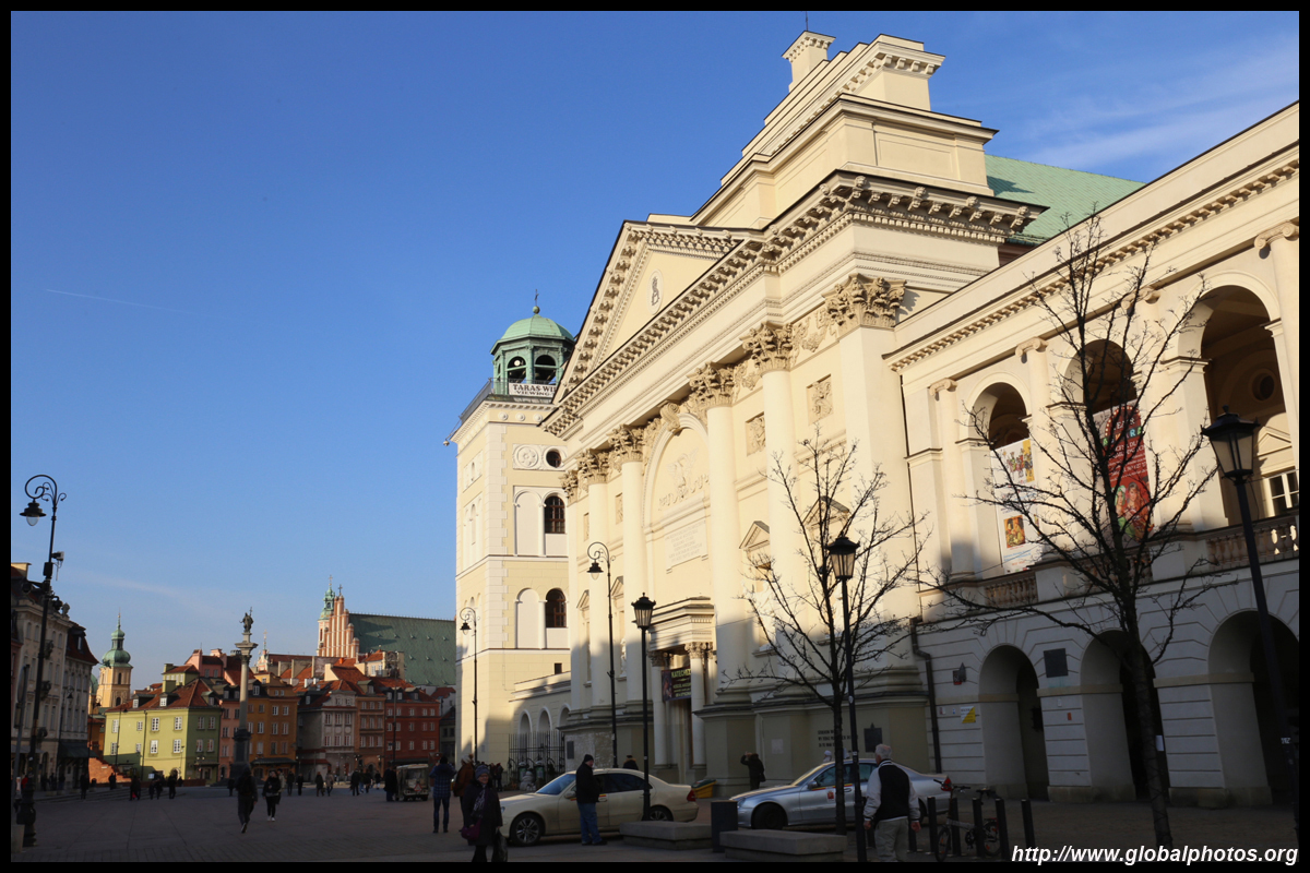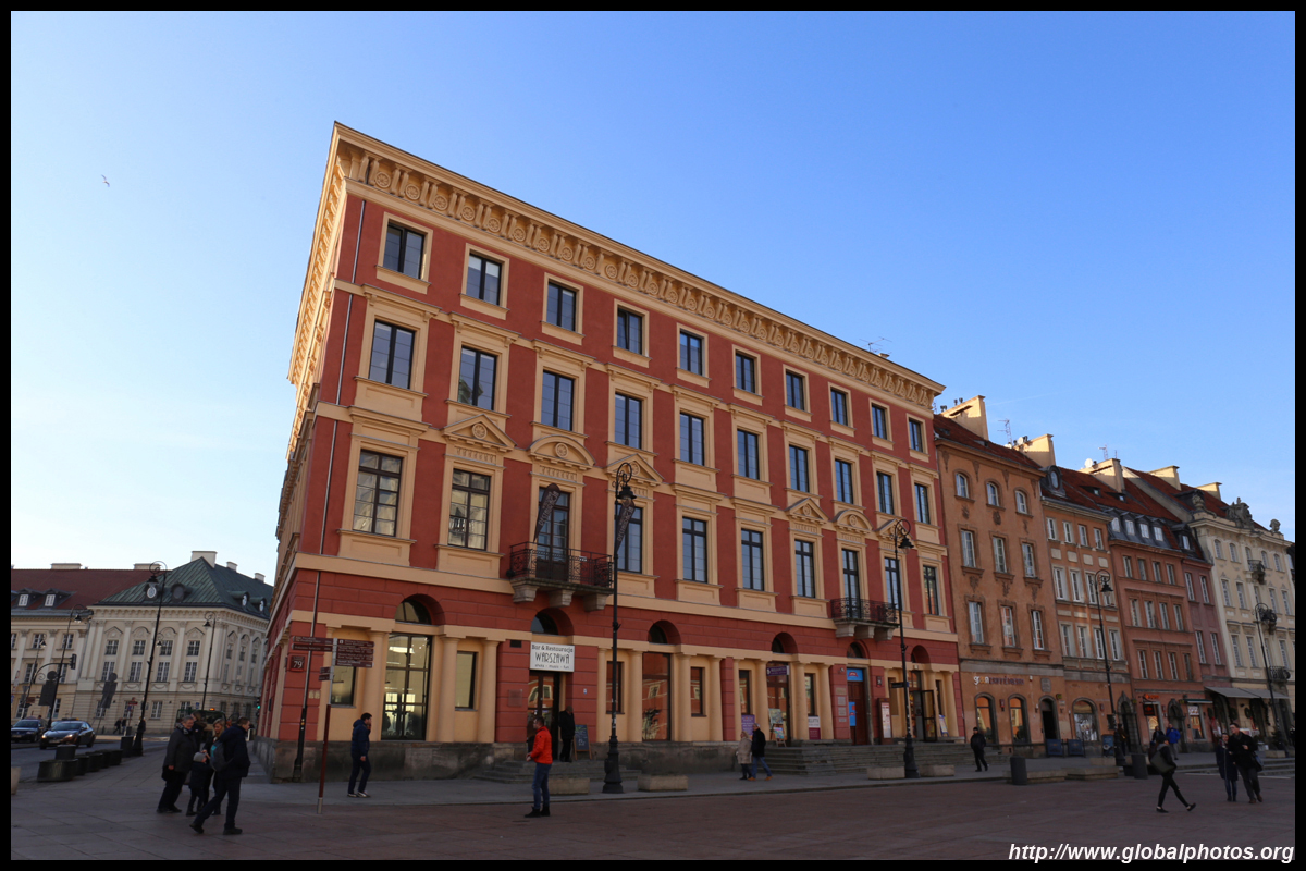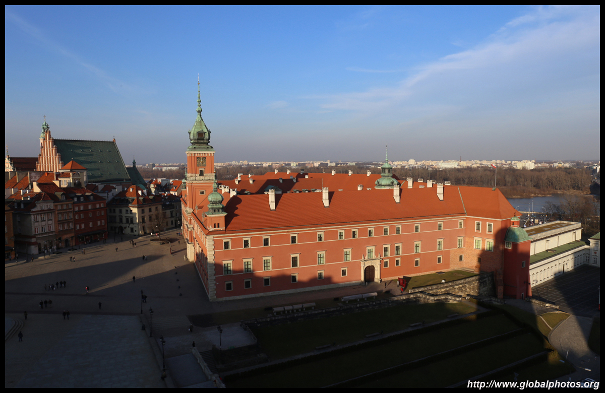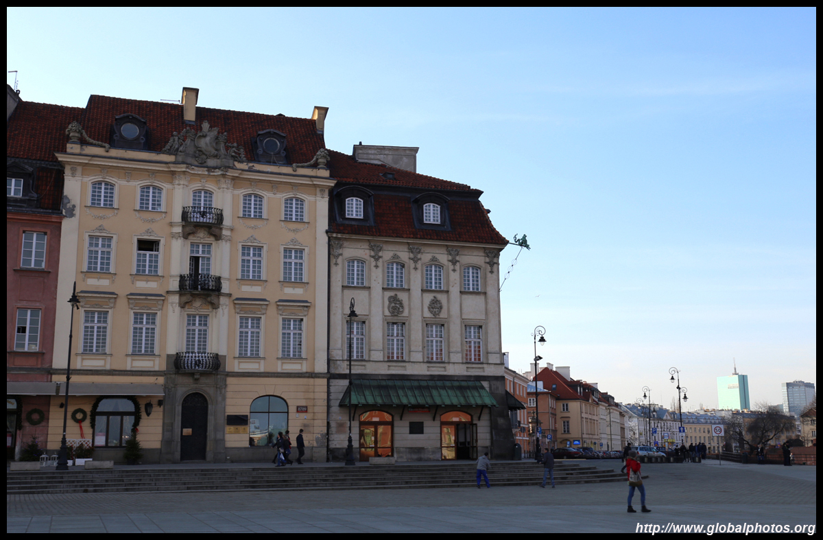 A large square fronts the Royal Castle, which was rebuilt after World War II and completed in 1984.