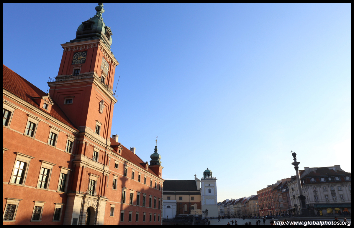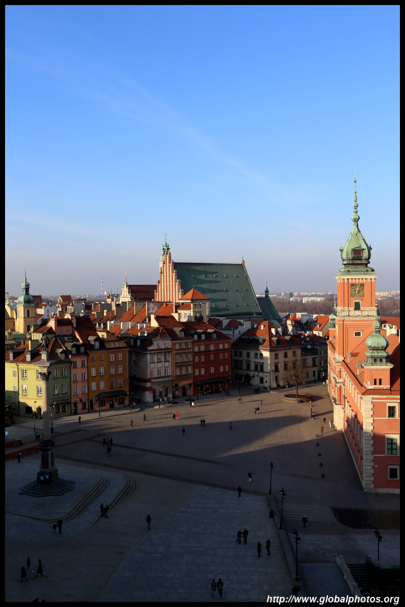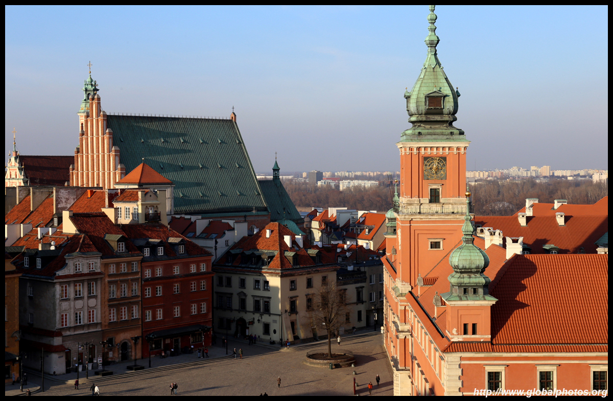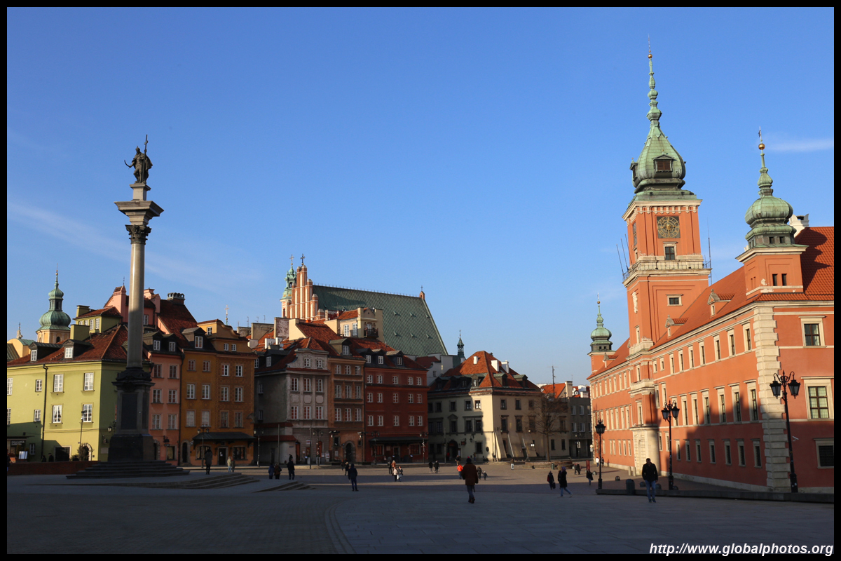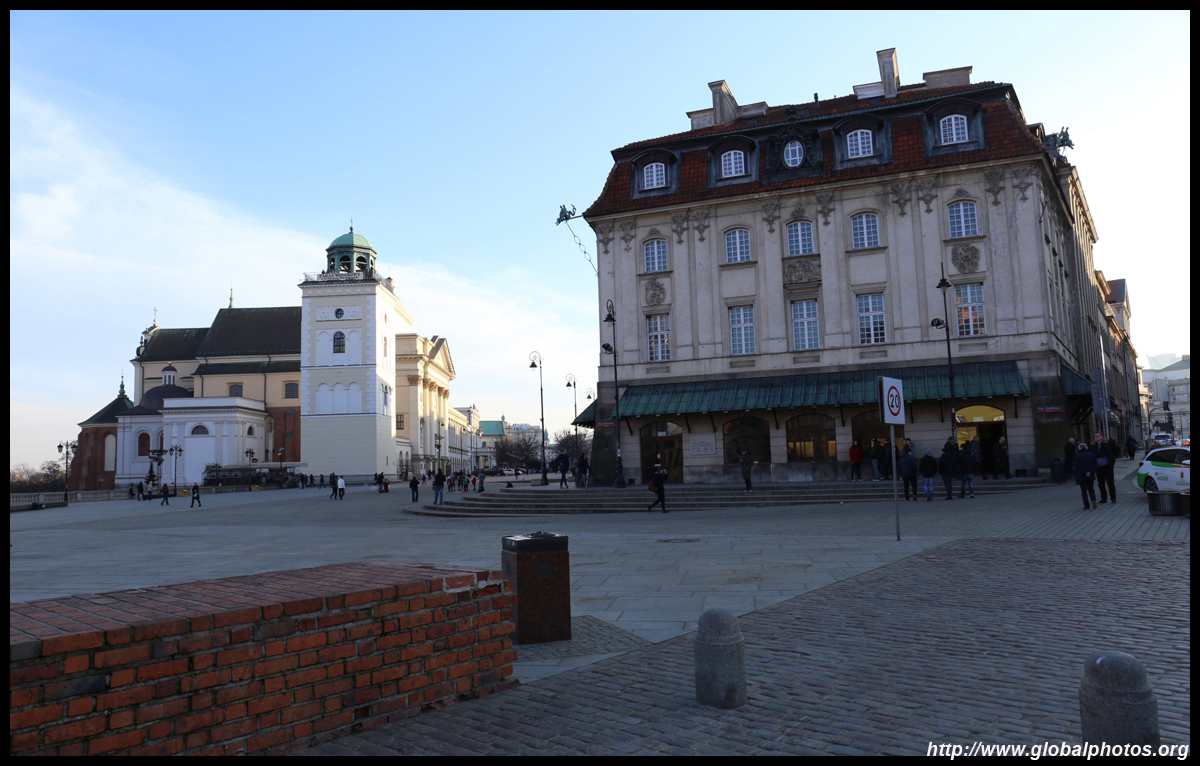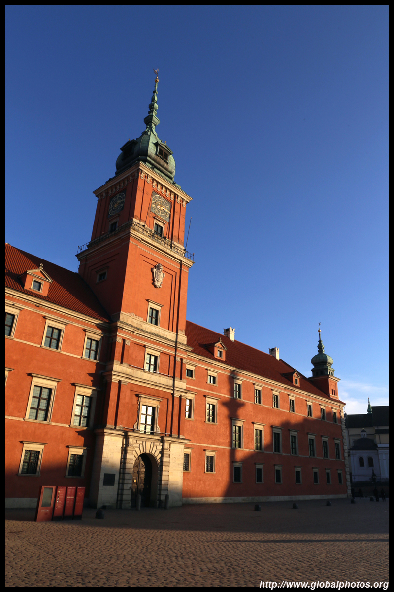 A large square fronts the Royal Castle, which was rebuilt after World War II and completed in 1984.