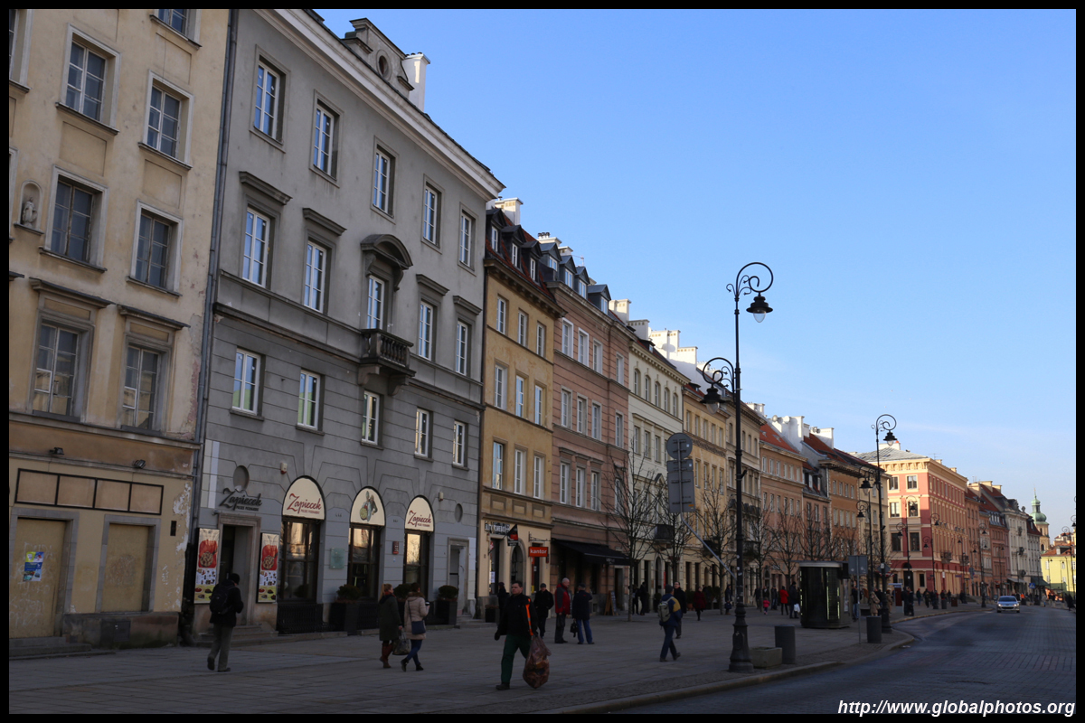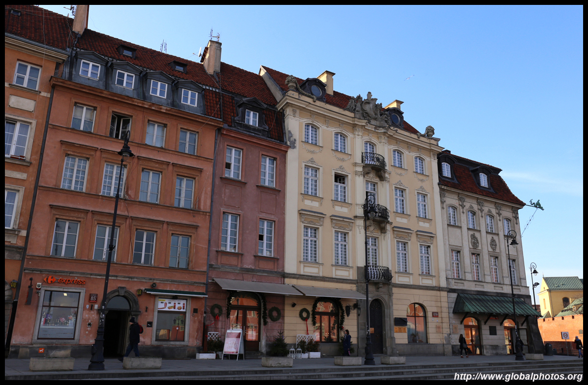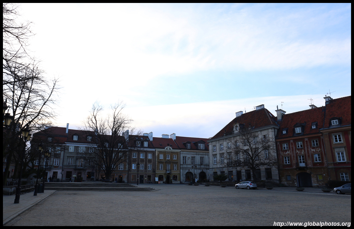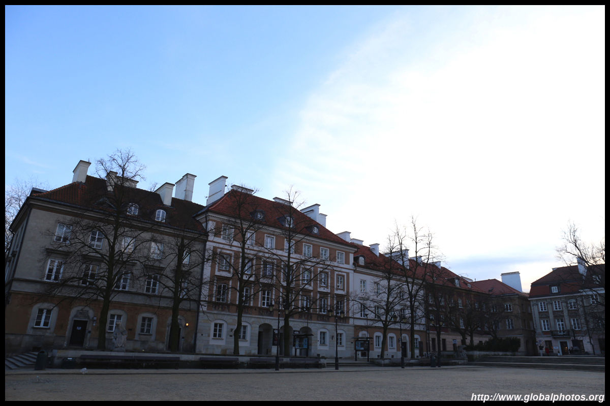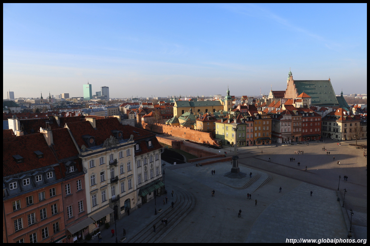 A large square fronts the Royal Castle, which was rebuilt after World War II and completed in 1984.
