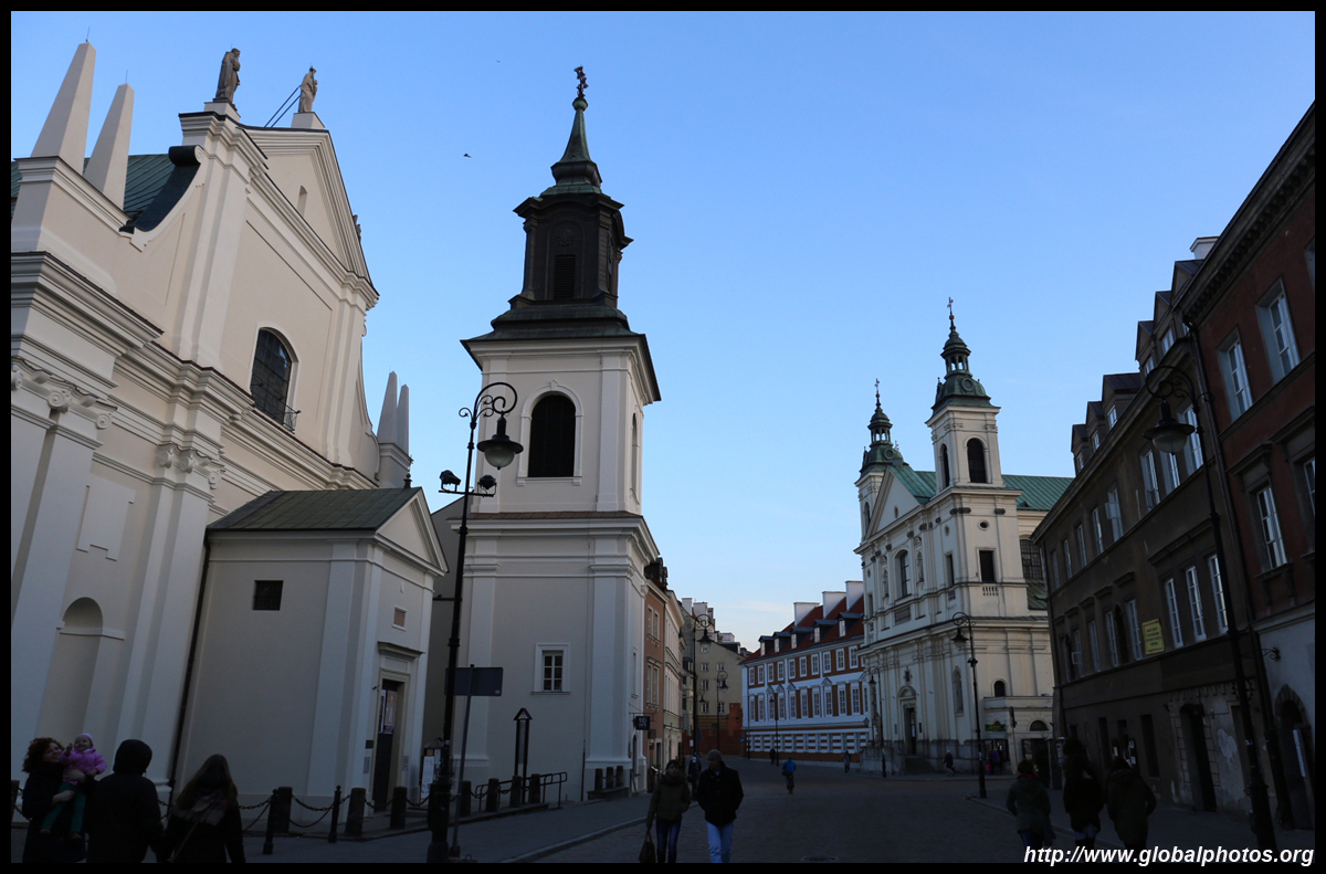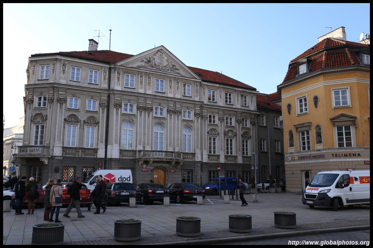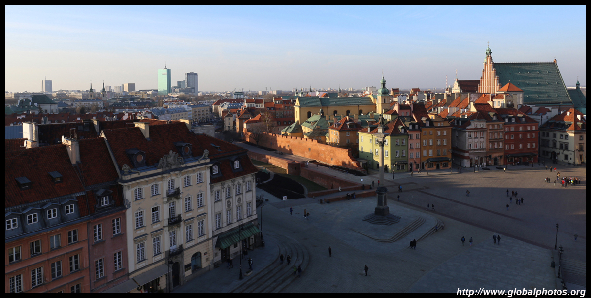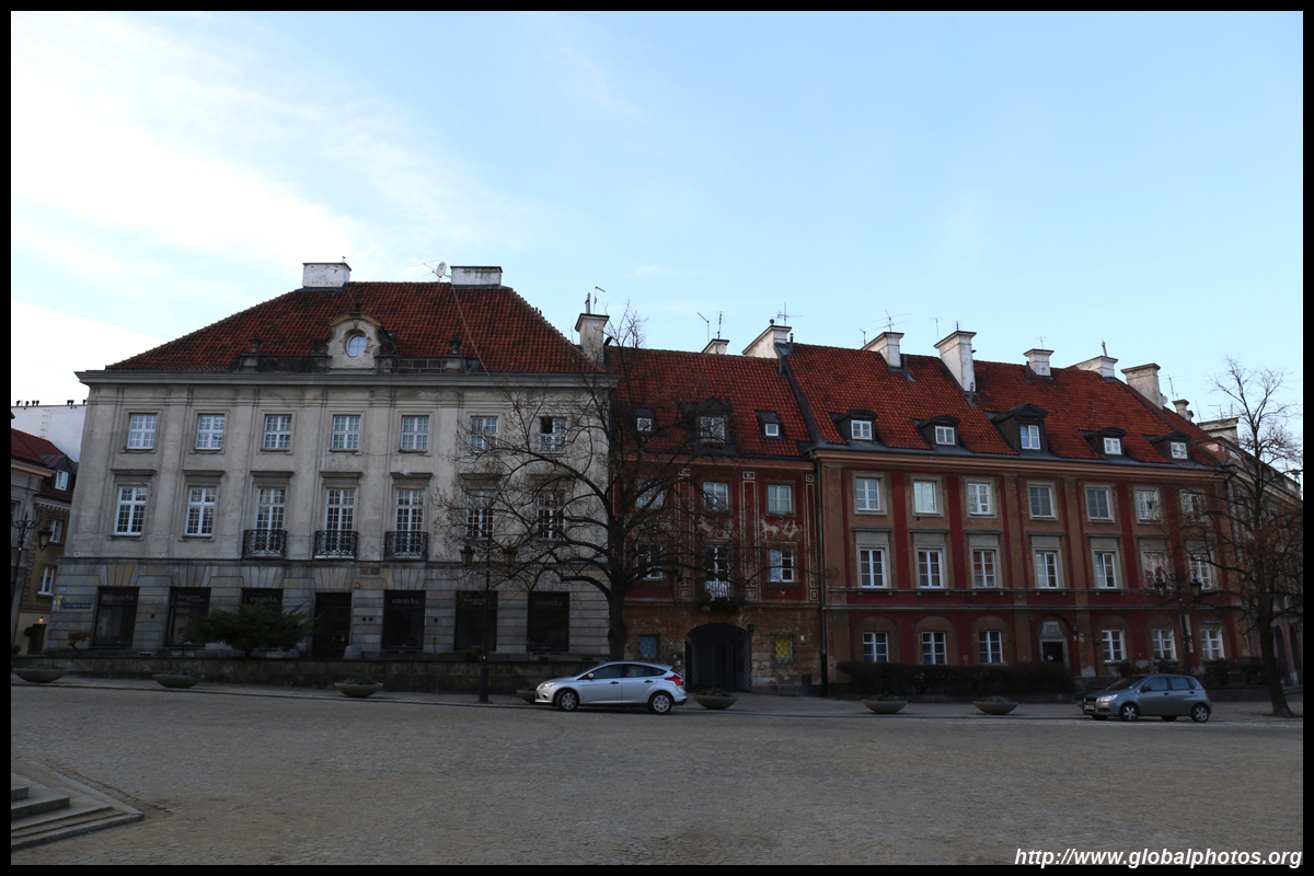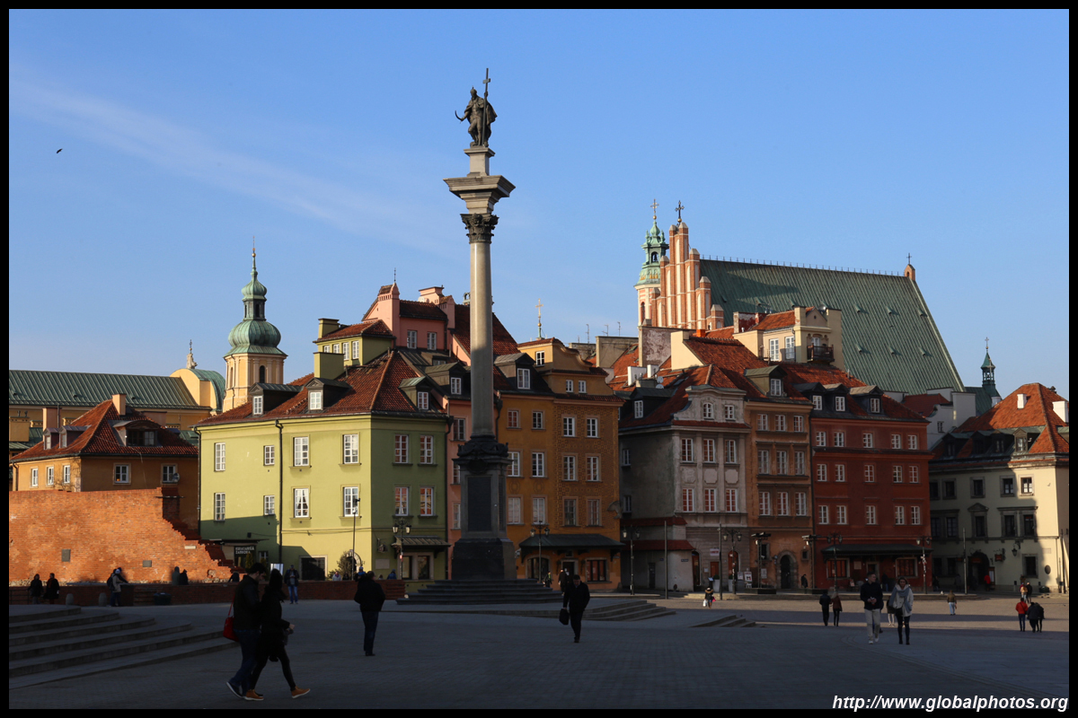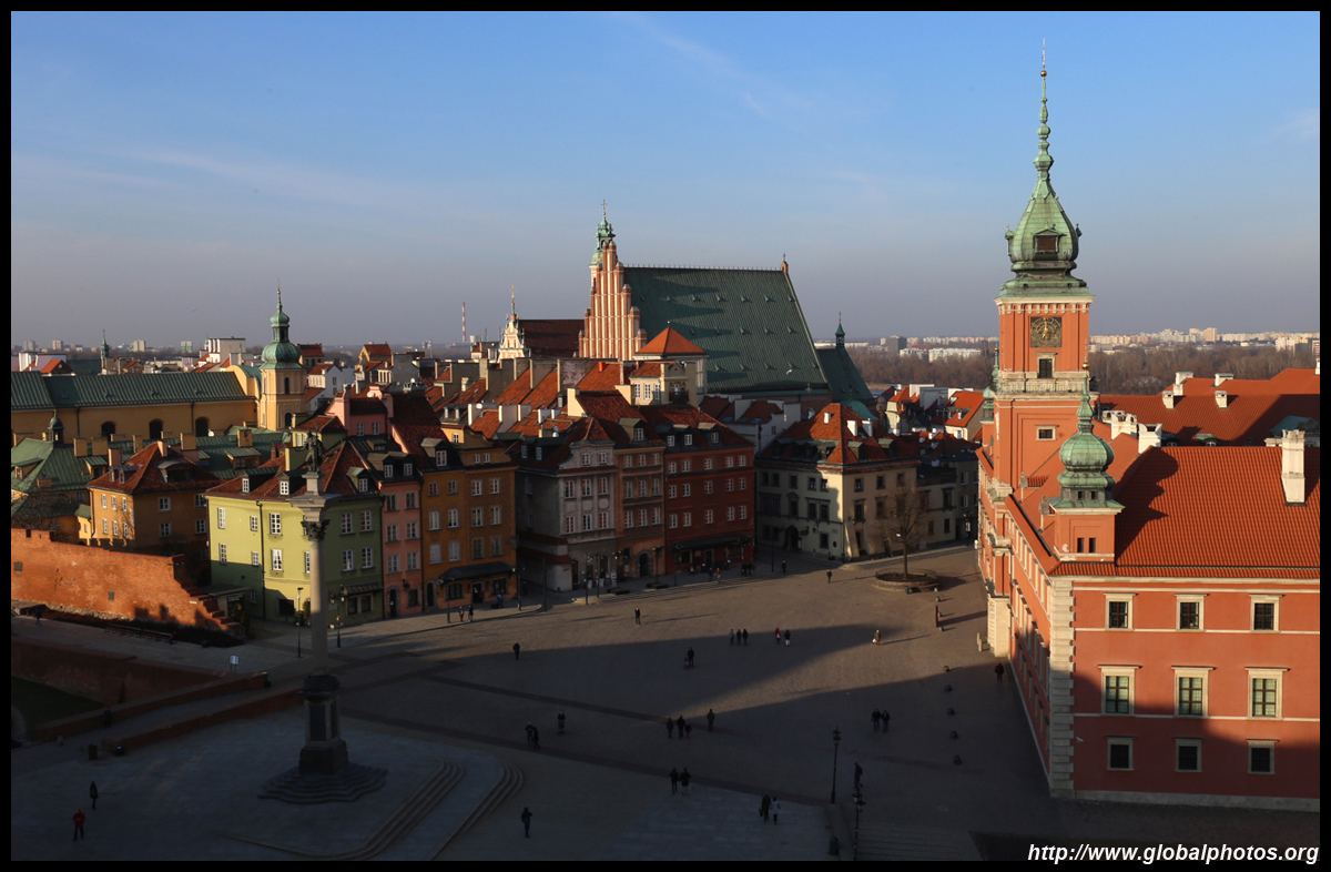 A large square fronts the Royal Castle, which was rebuilt after World War II and completed in 1984.