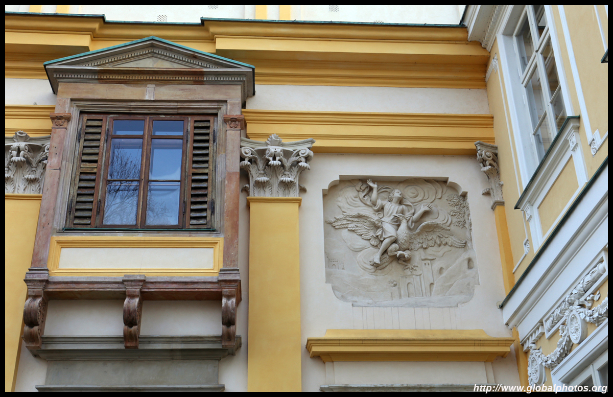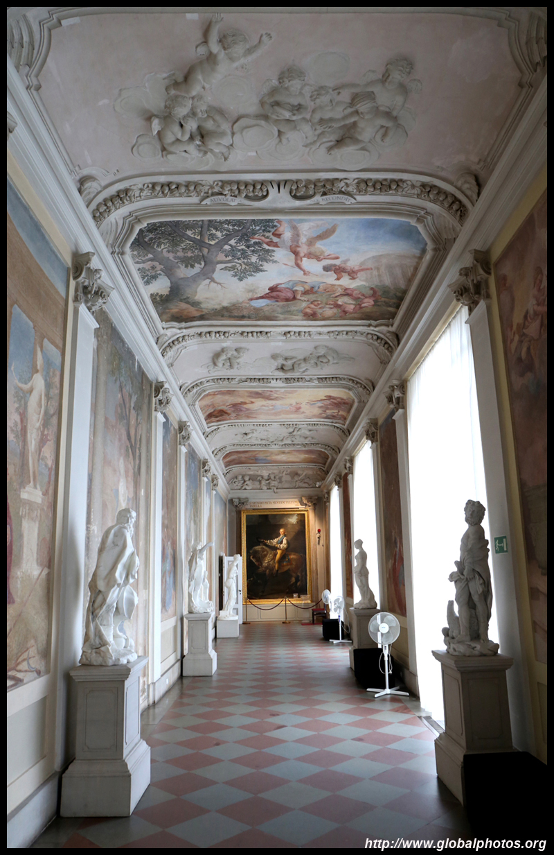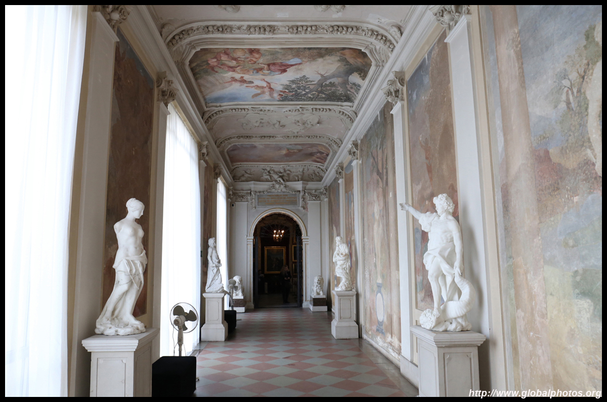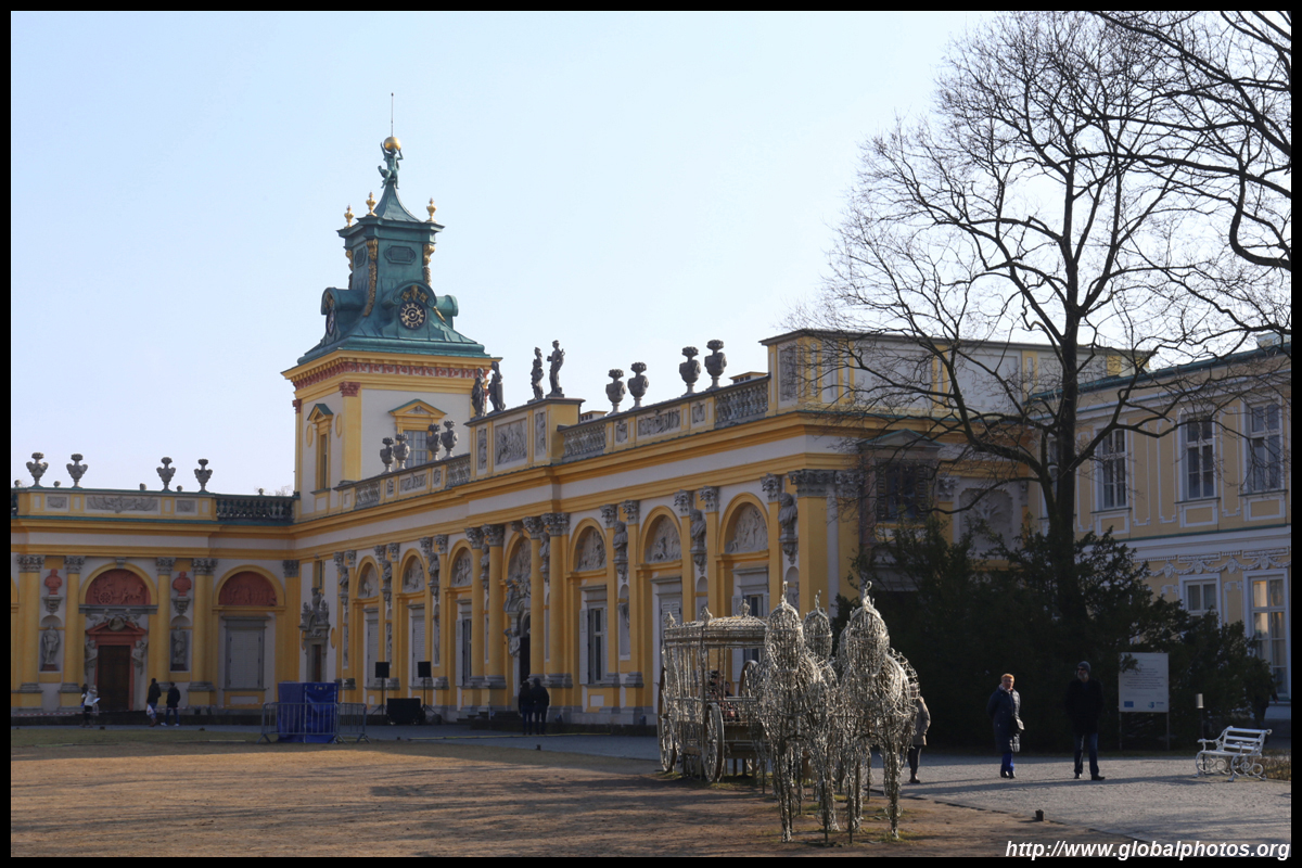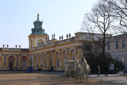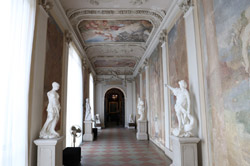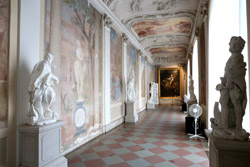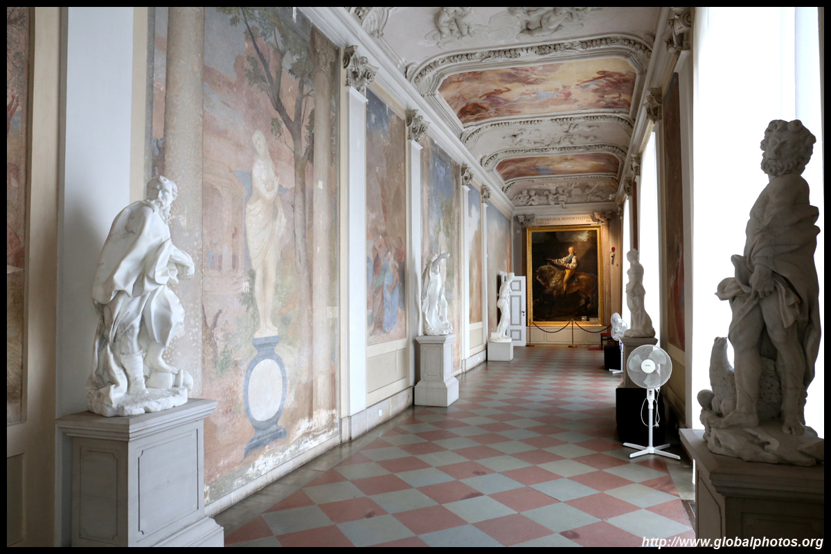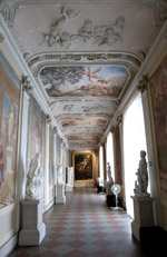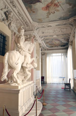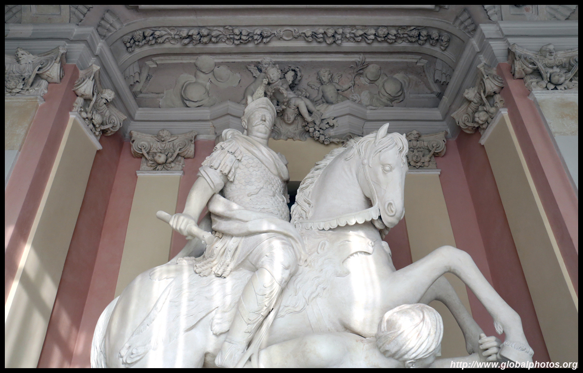 The South Gallery connects the old part of the palace with the new south wing that was added in the 18th century. The equestrian statue of Jan III was moved to this spot around 1730.