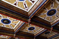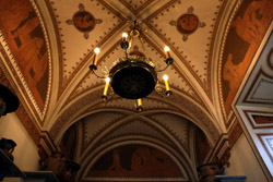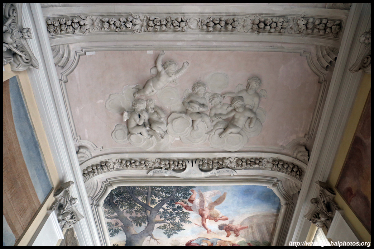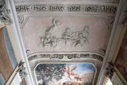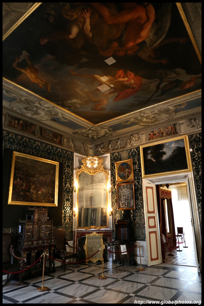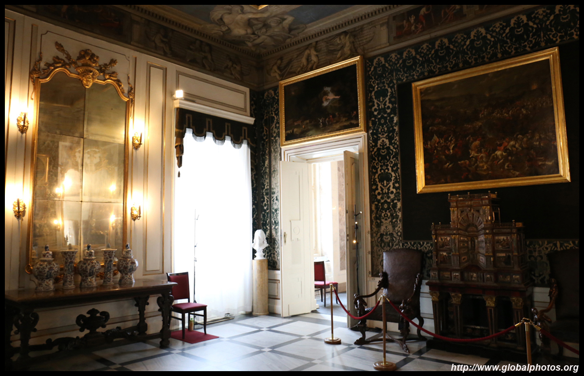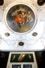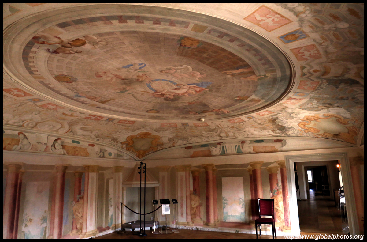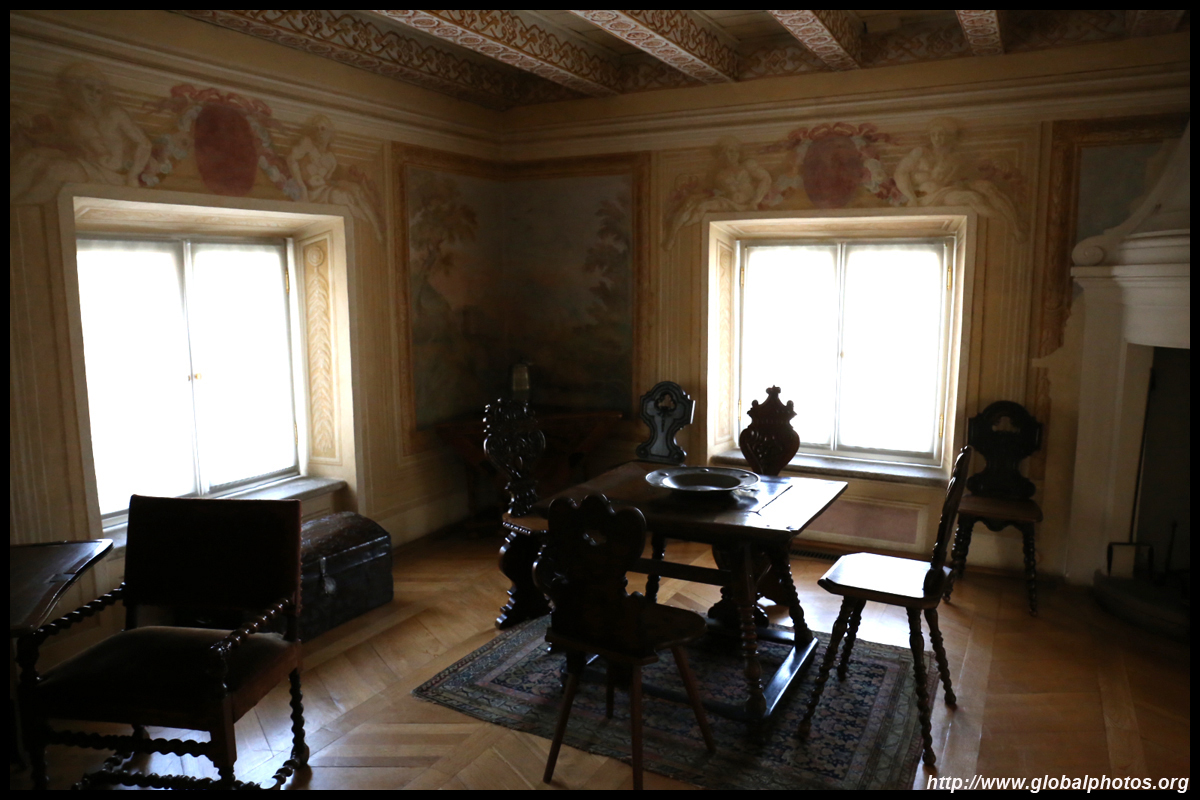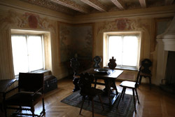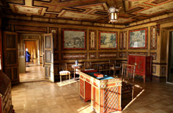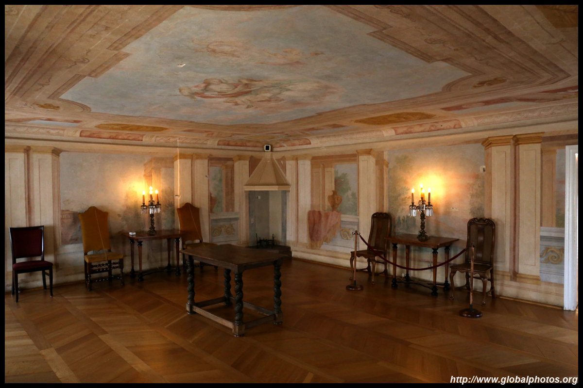 The Quiet Room was named to remind visitors not to disturb the king's sleep in the room below. It served as a guest apartment with frescos on the walls and ceiling.