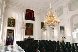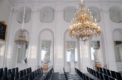 The bright White Hall is the grandest room of the palace for banquets and other lavish events.