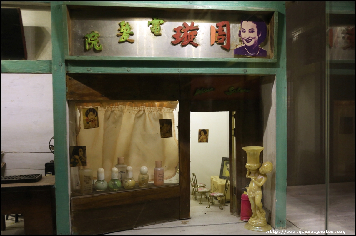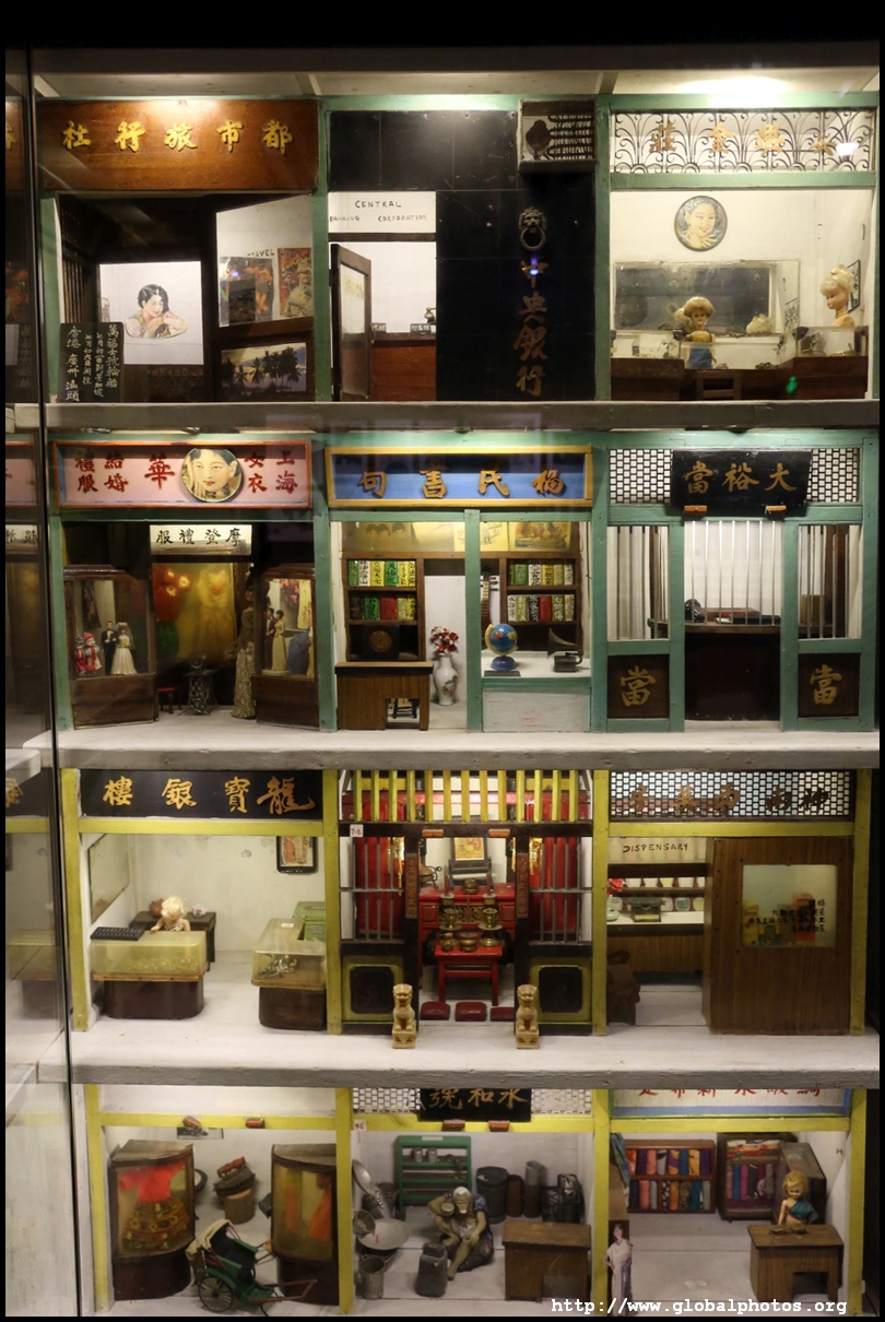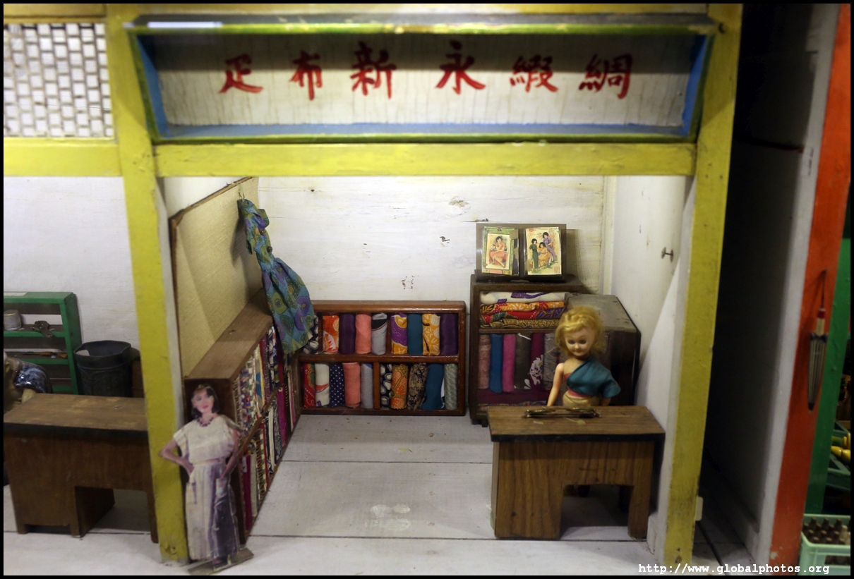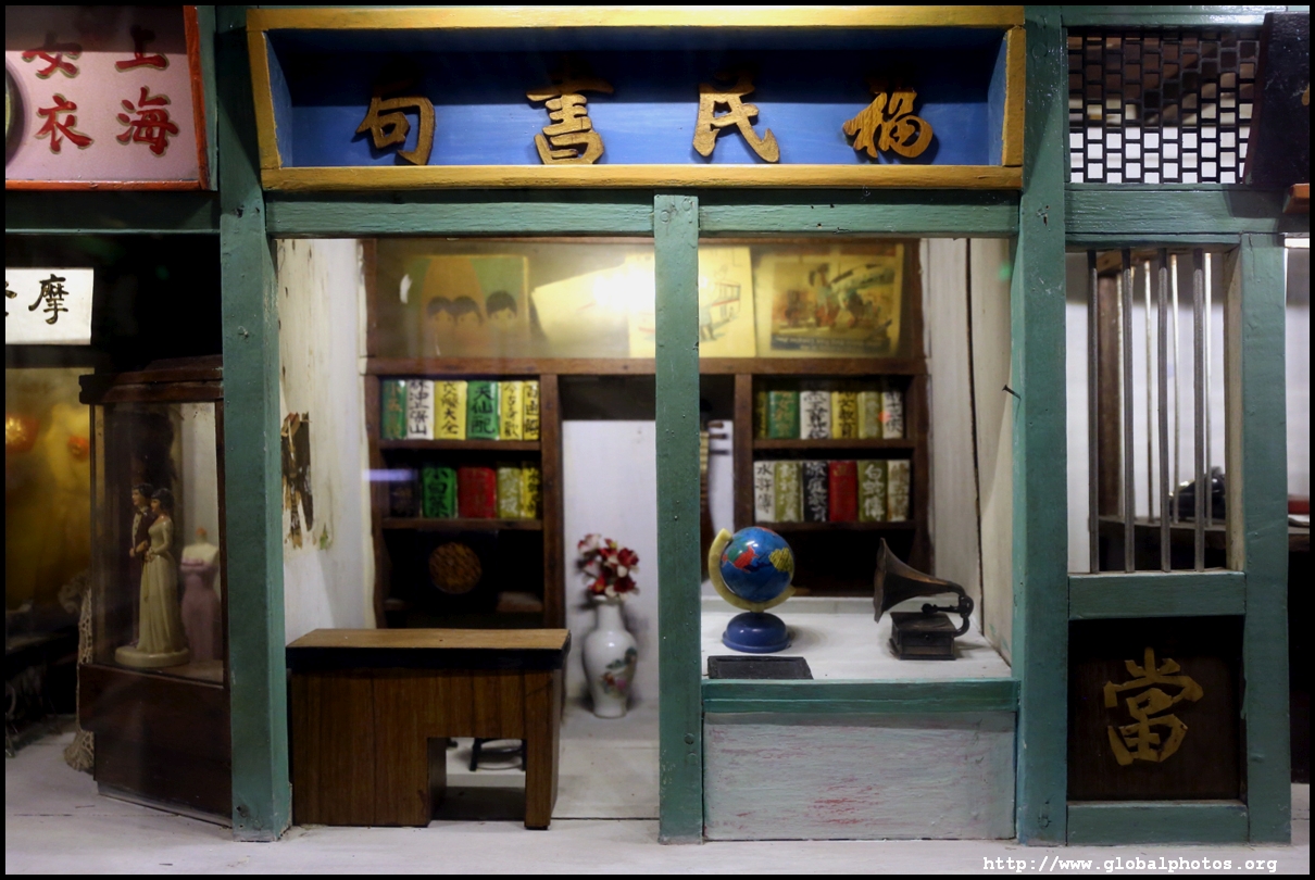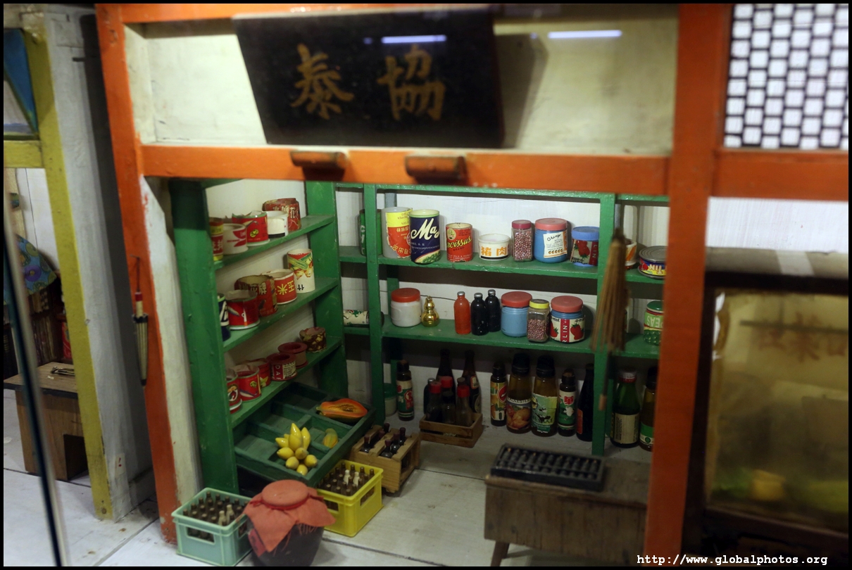 Located at the back of the ground floor is a huge scale model of a typical shopping and residential streetscape, from medicines to jewelry.