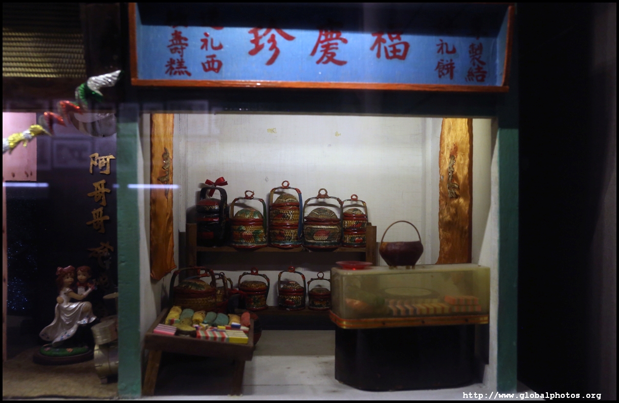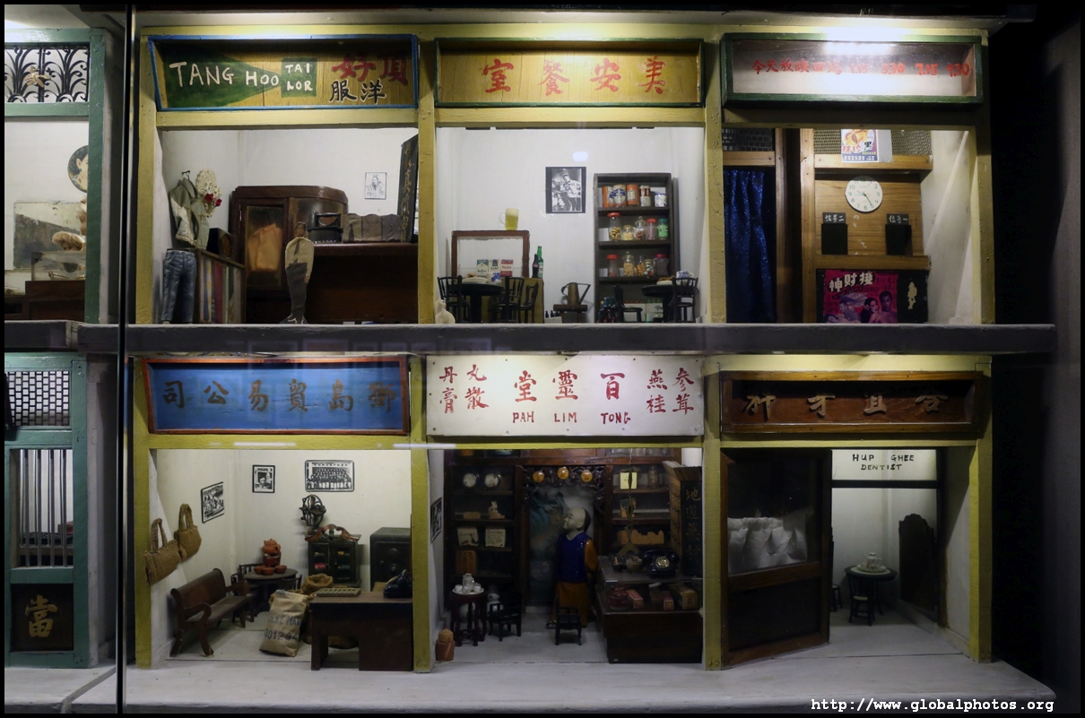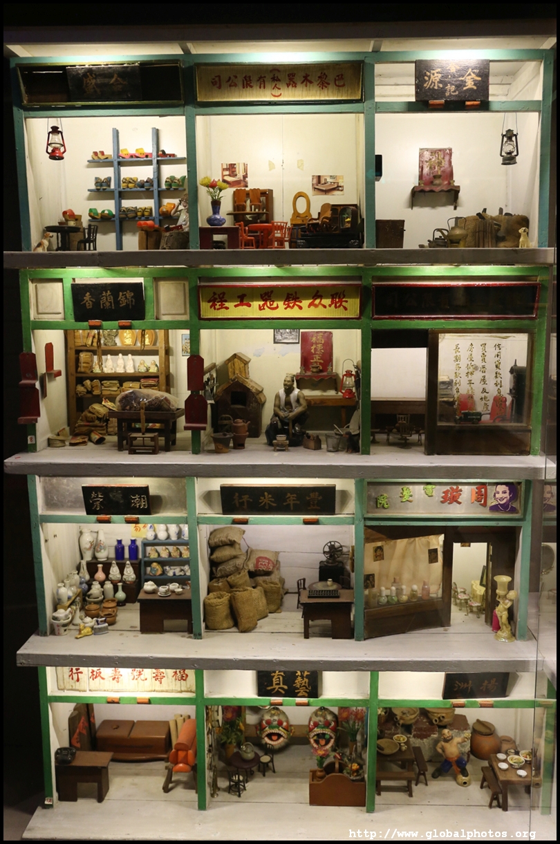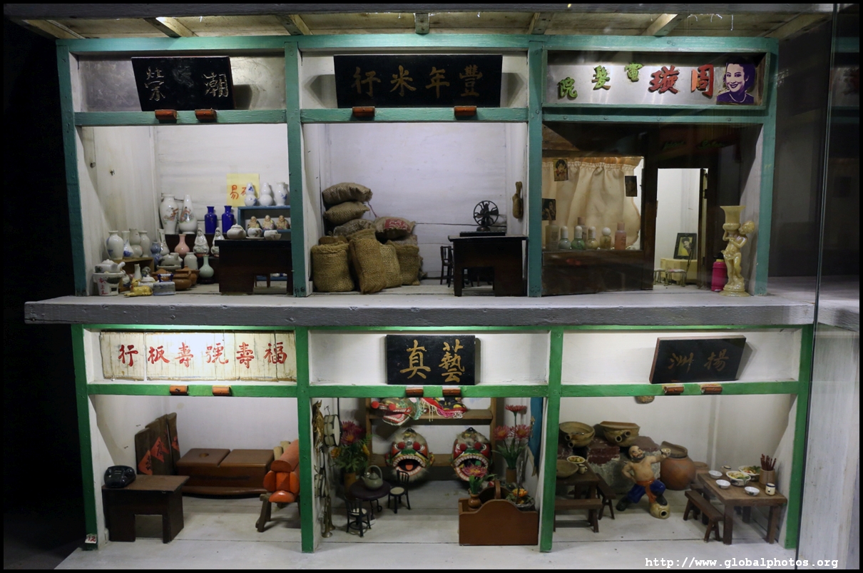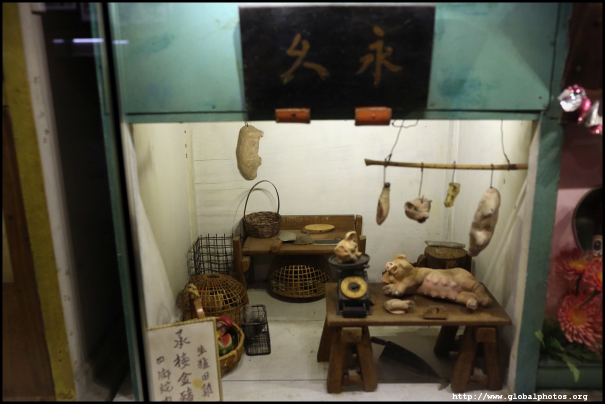 Located at the back of the ground floor is a huge scale model of a typical shopping and residential streetscape, from medicines to jewelry.