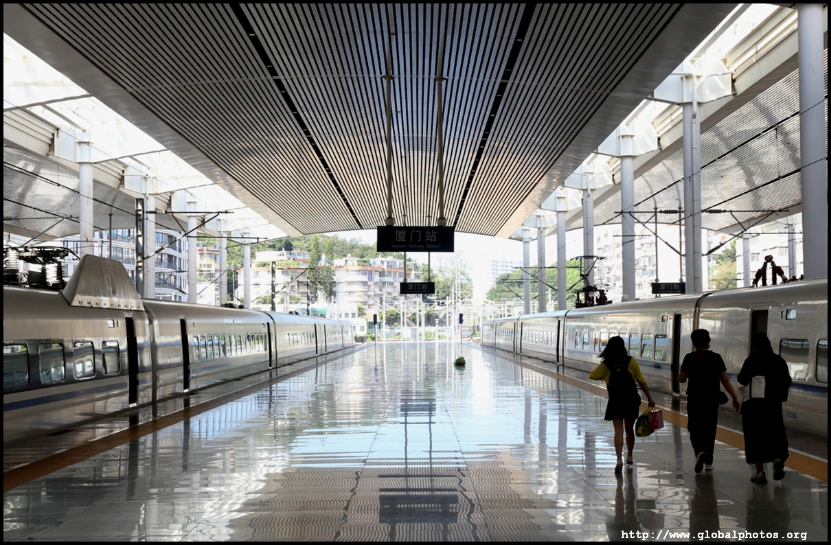 High-speed trains arrive at either the North or main railway station. Xiamen North has more trains but is a long 29 km ride into Zhongshan Lu shopping street, taking over 50 minutes. The main station is more centrally-located, with the metro journey taking less than half the time, although that same train would spend the saved time coming into the city from the North station anyway.
