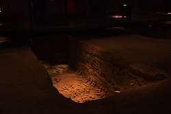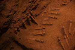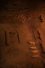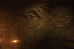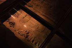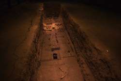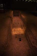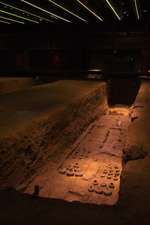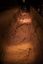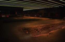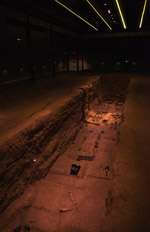 The museum's walkway crosses several pits. At these locations, the walkway turns into glass so visitors can peer directly below their feet to see what has been uncovered.