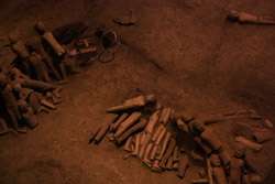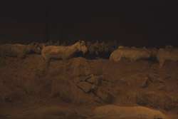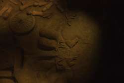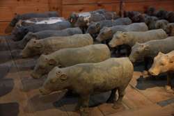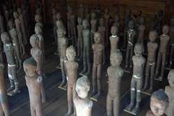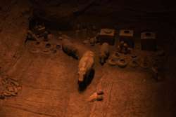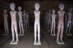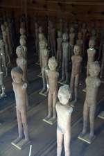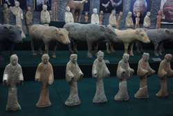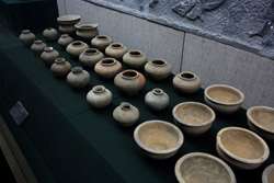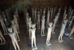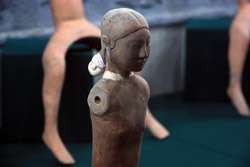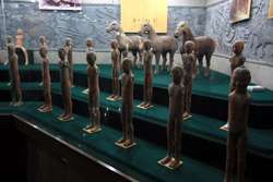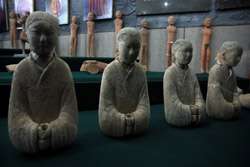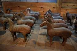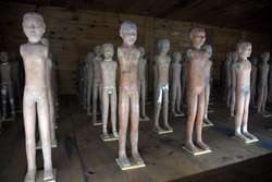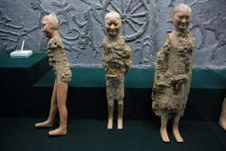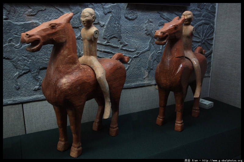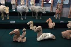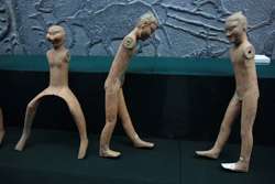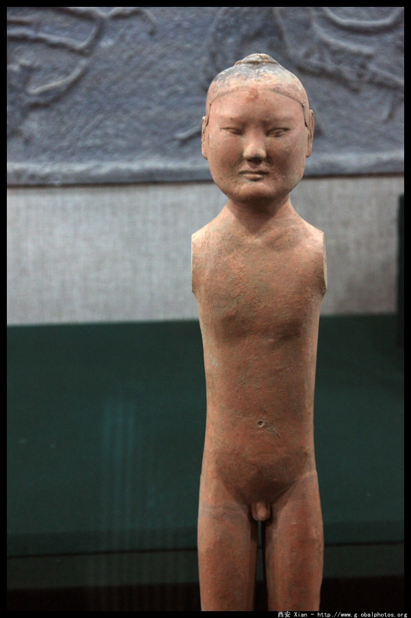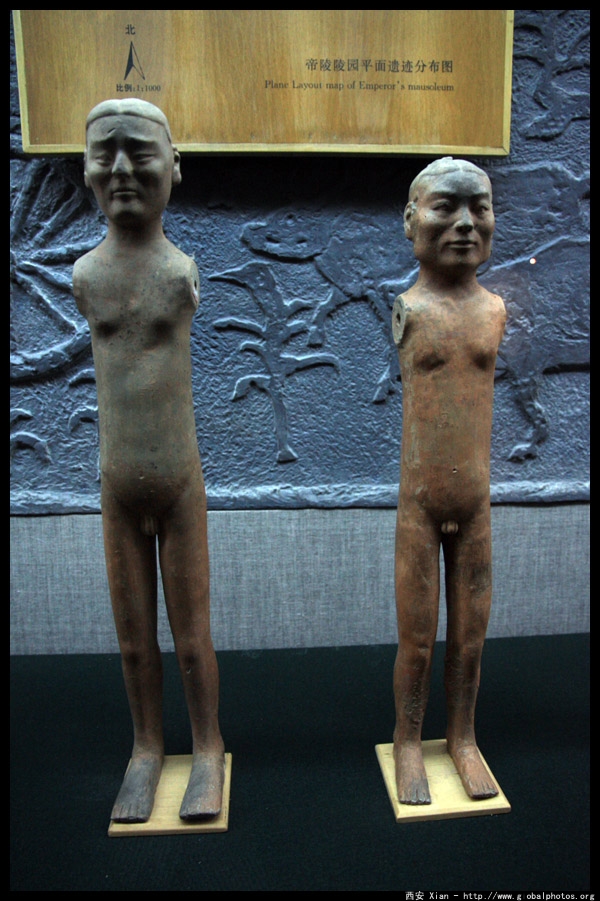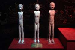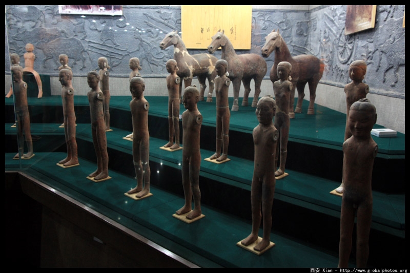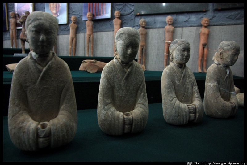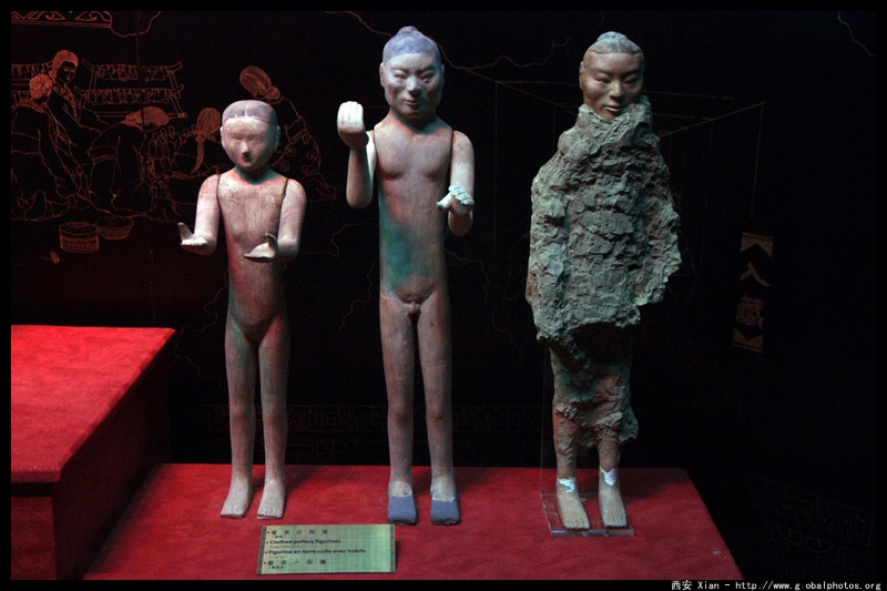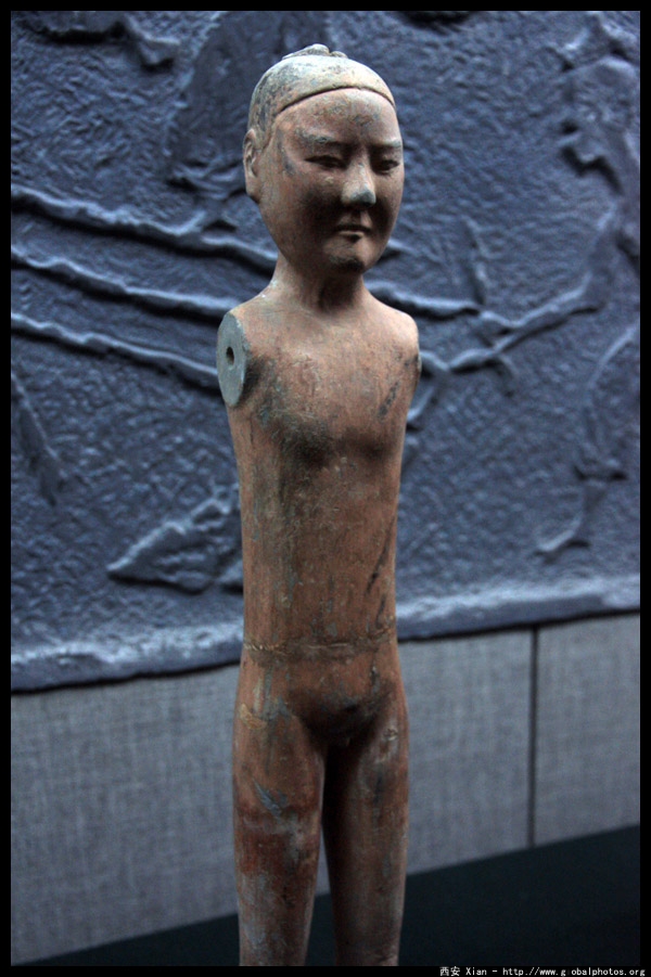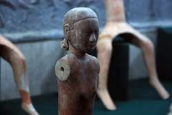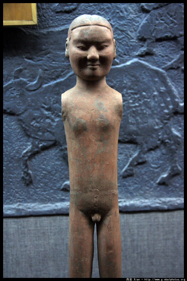 The Han figurines were clothed, but time has destroyed those. The arms and hands were made of wood and could move, but those have also not survived the test of time. What remains today are the heads, bodies, and legs, which look quite eerie.
