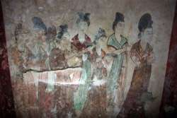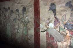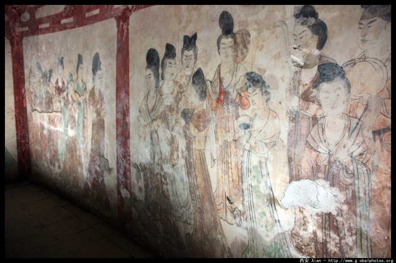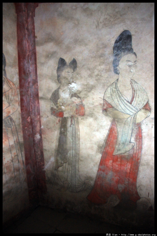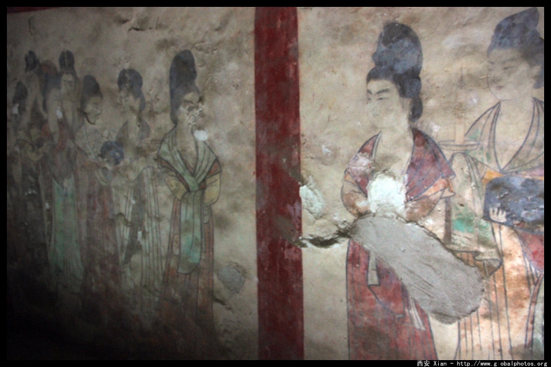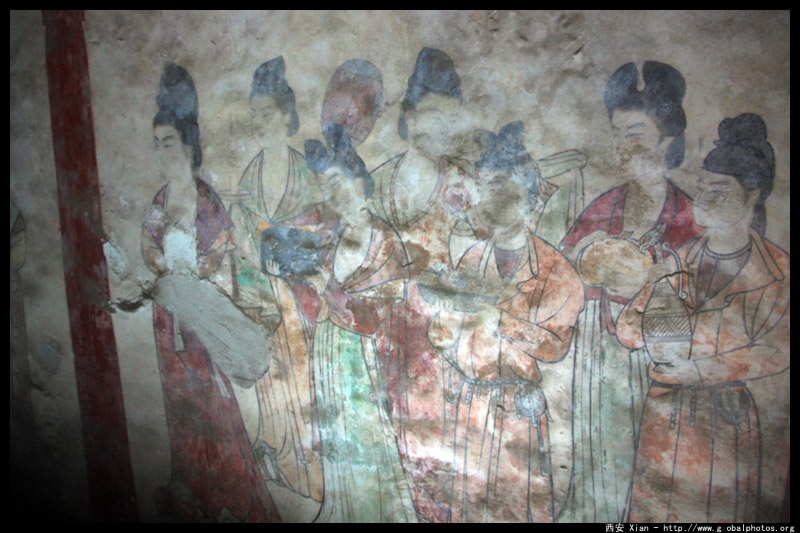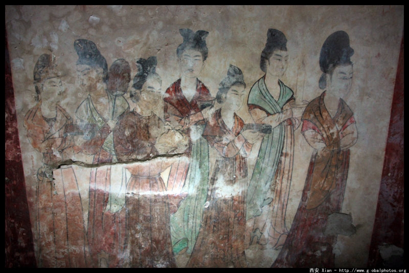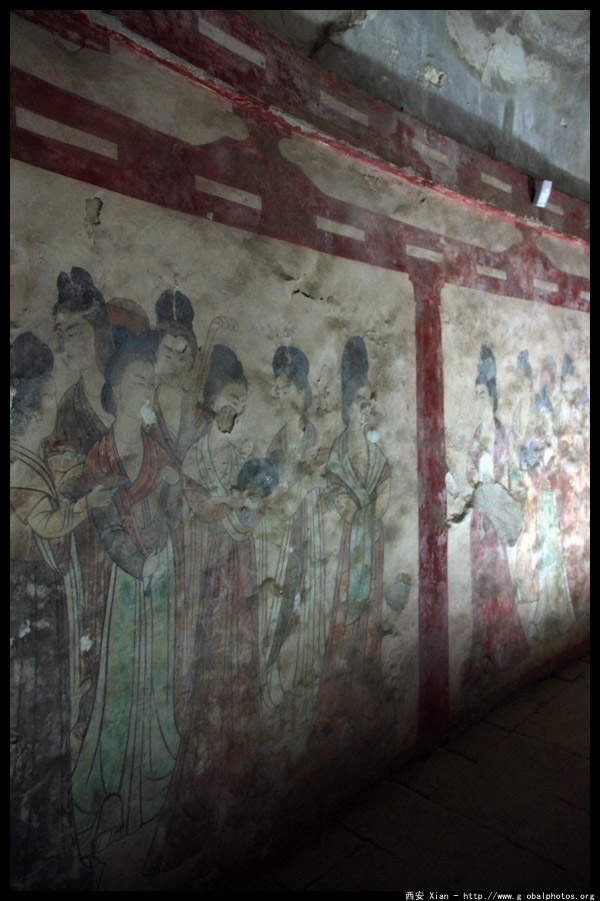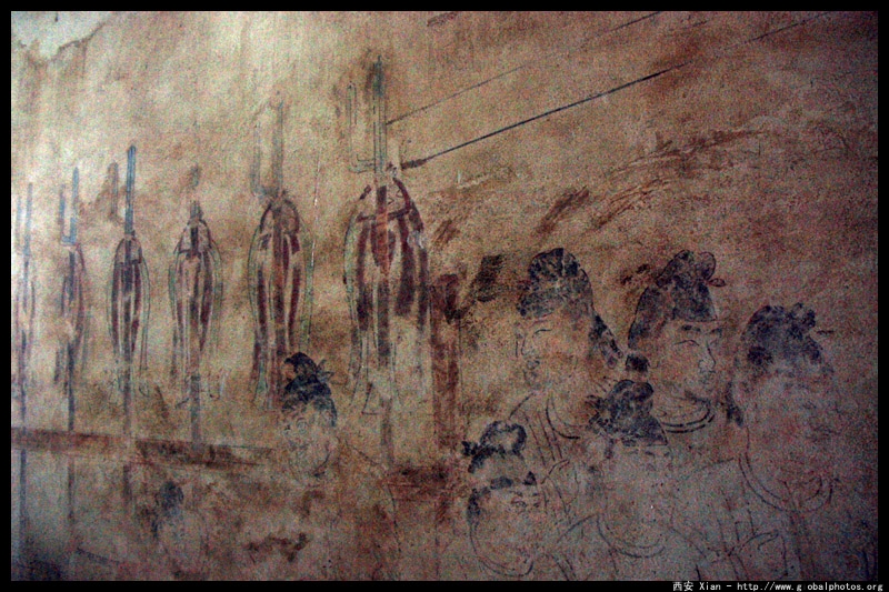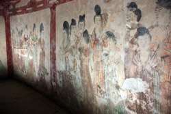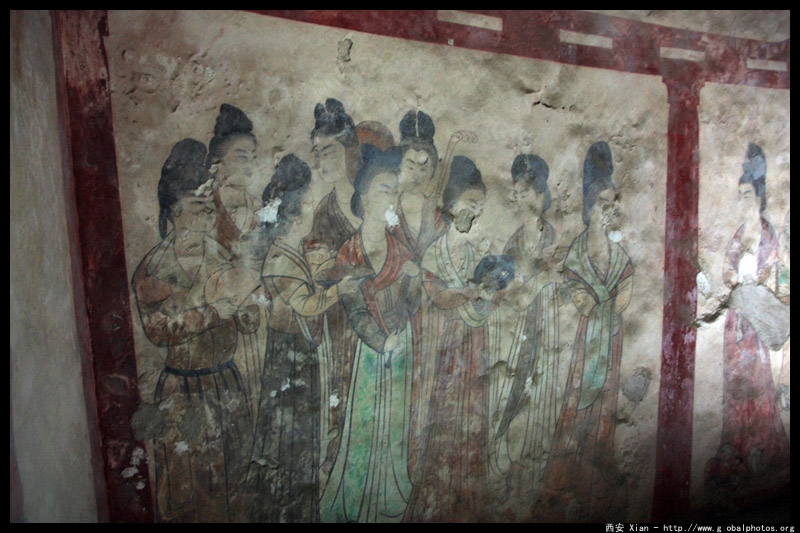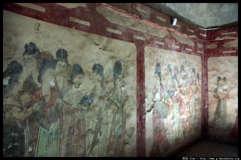 Princess Yongtai's tomb is located just off the main mausoleum. The original wall paintings have been removed and put on display at the Shaanxi Provincial Museum in Xian for a hefty price of 300 yuan. What lies in the tomb today are replicas.