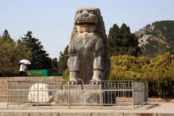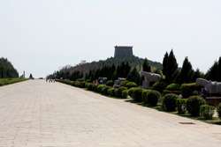 The main part of the mausoleum consists of this grand boulevard entrance, lined with animal and human statues on both sides.
