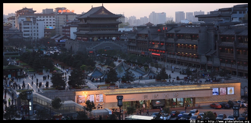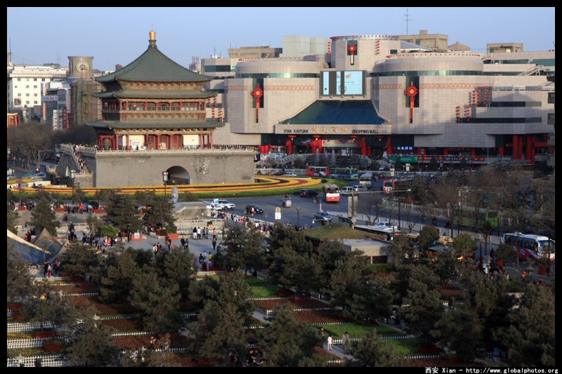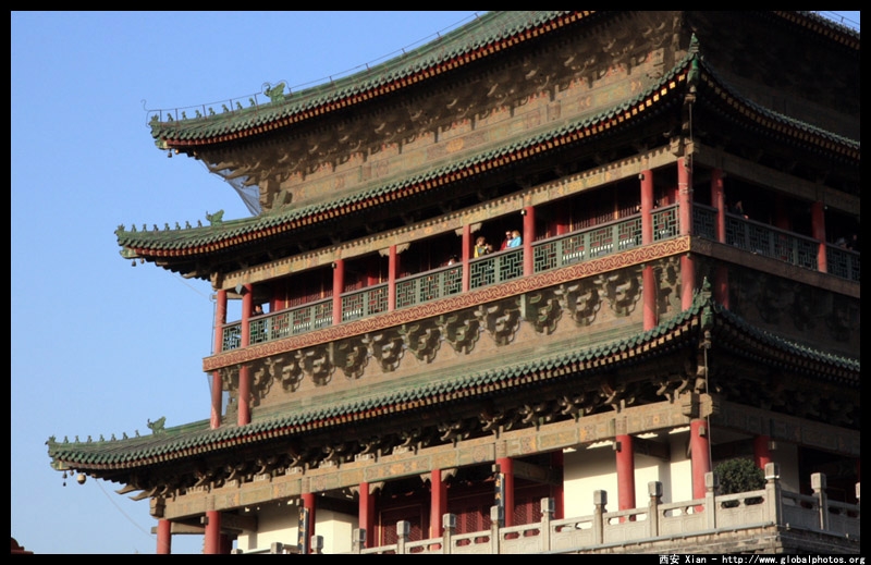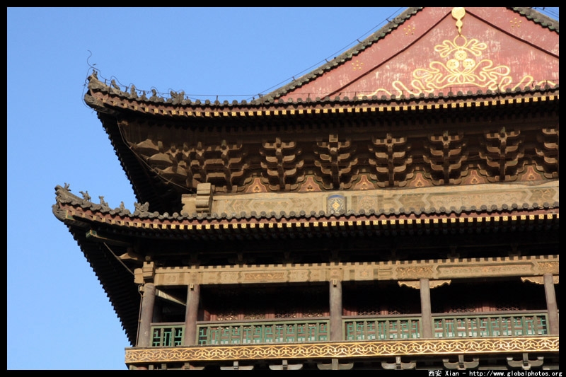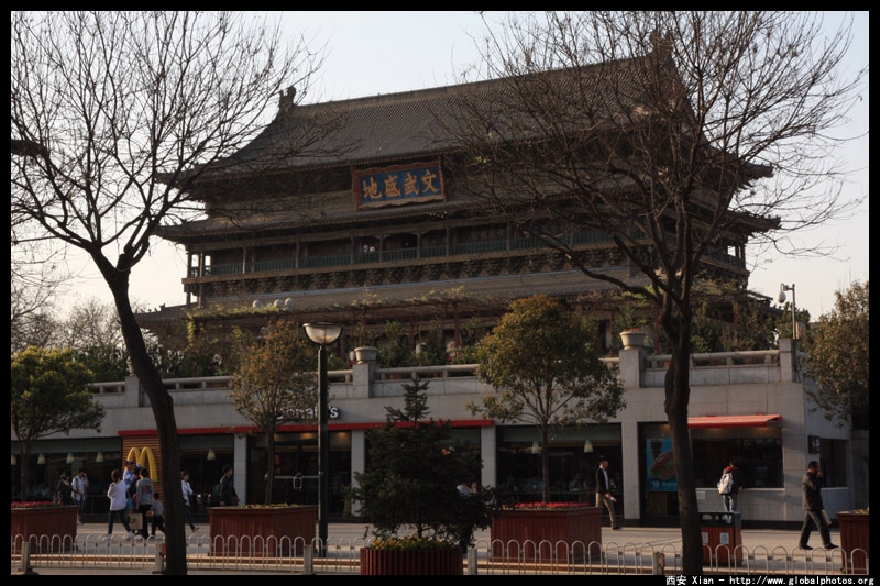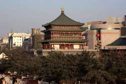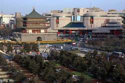Today, the Bell Tower sits at a central location - in the heart of a massive traffic circle where the north-south and east-west axes intersect. Like most of Xian's big attractions, it costs a lot of money to go in. 50 yuan later, I had a ticket for this and also the nearby Drum Tower.
