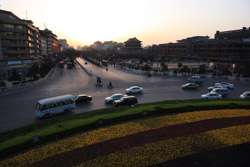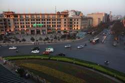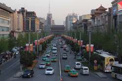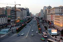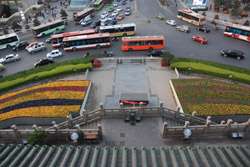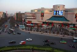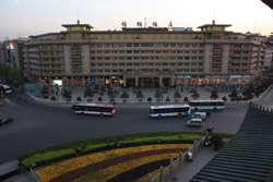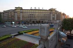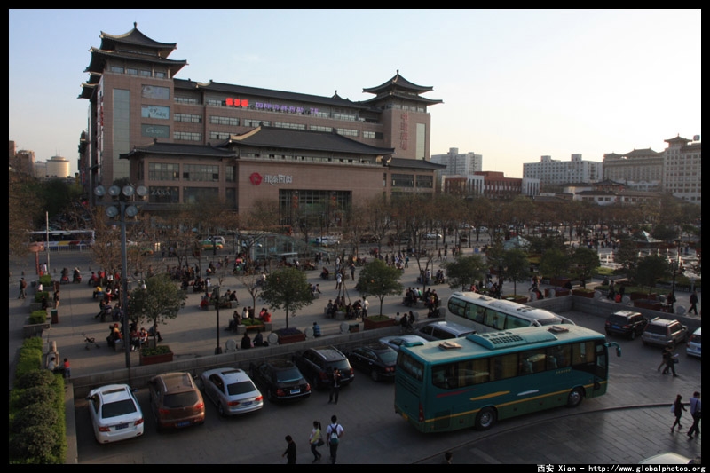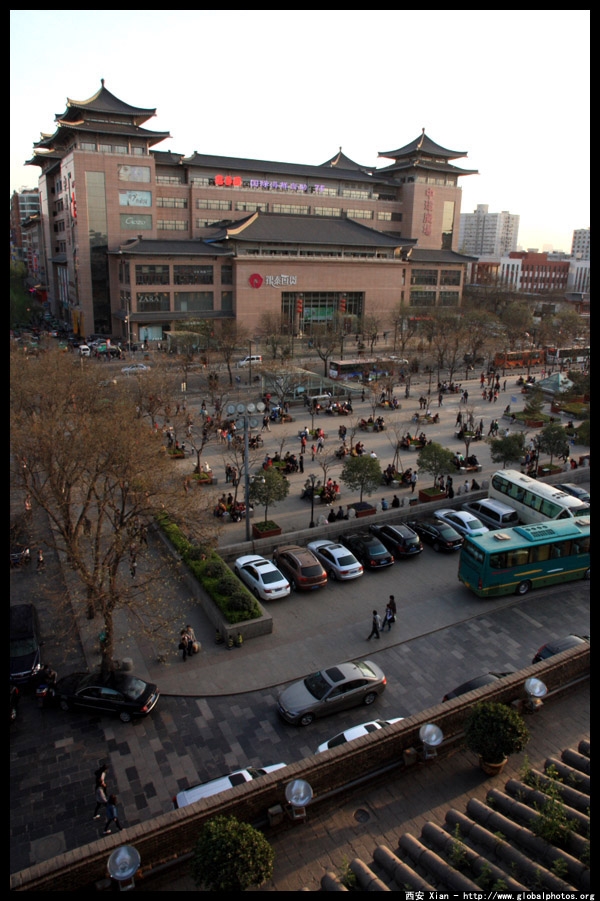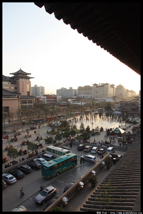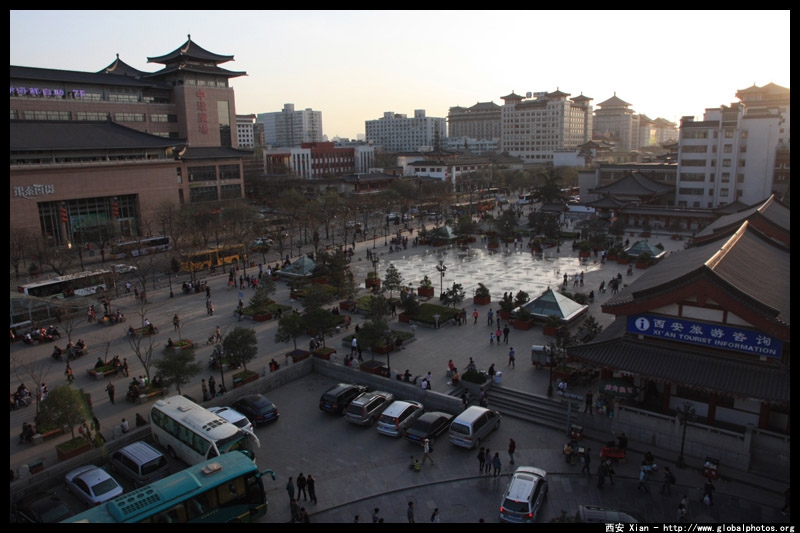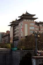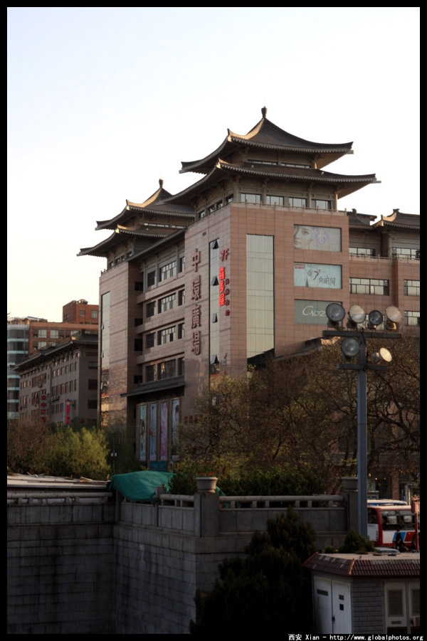 Even the newer buildings here have traditional Chinese tops. The downside is the parking lot. It would've been much nicer if the landscaped public square extended right to the tower.