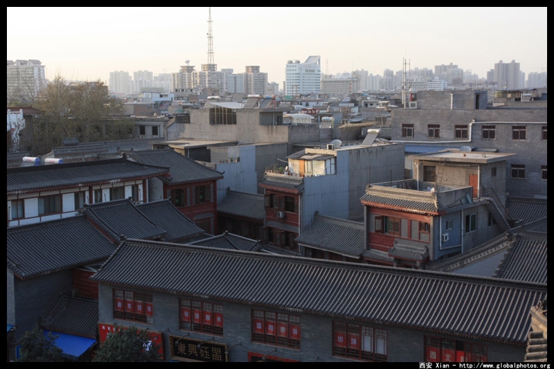 The tower isn't tall enough to see the roofs of its neighbours, but it does offer a clear view of the Drum Tower.