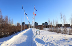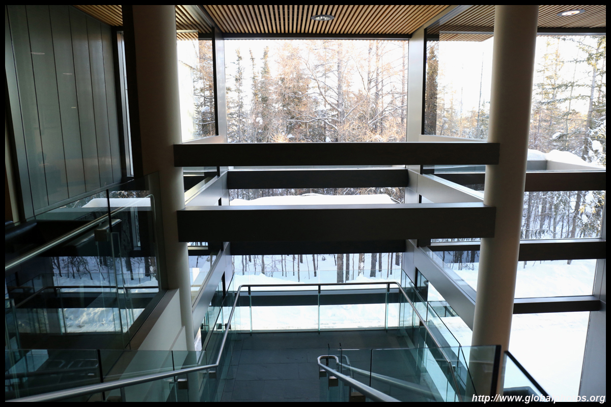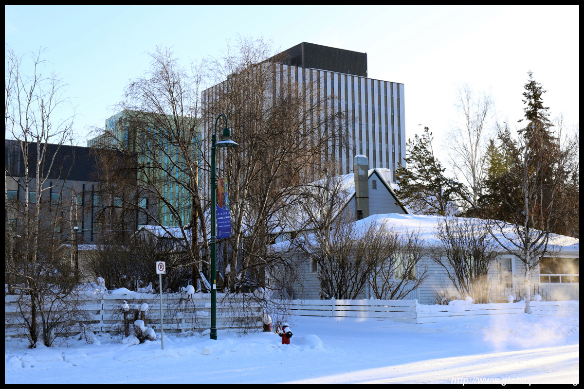 Be sure to stop at City Hall to obtain a free pin and certificate that you have visited above 60 degrees. Afterwards, exit into Somba K'e Park for the 5-minute walk to the Prince of Wales Northern Heritage Centre.