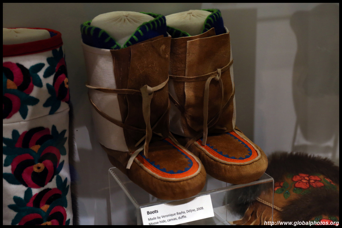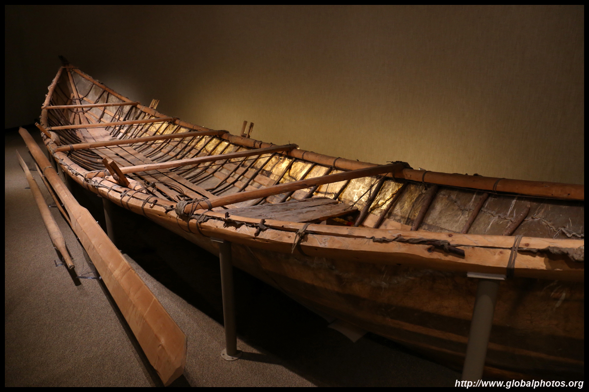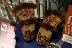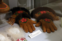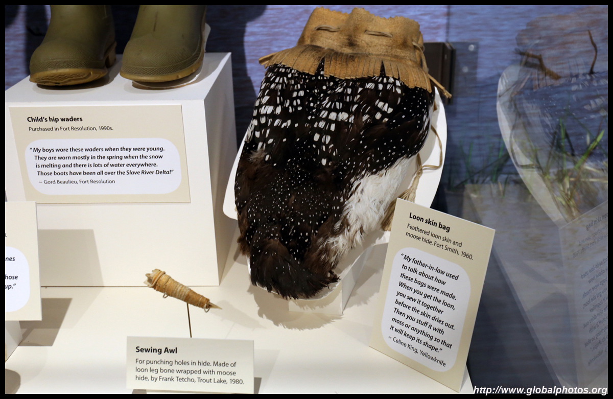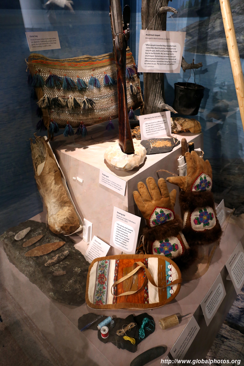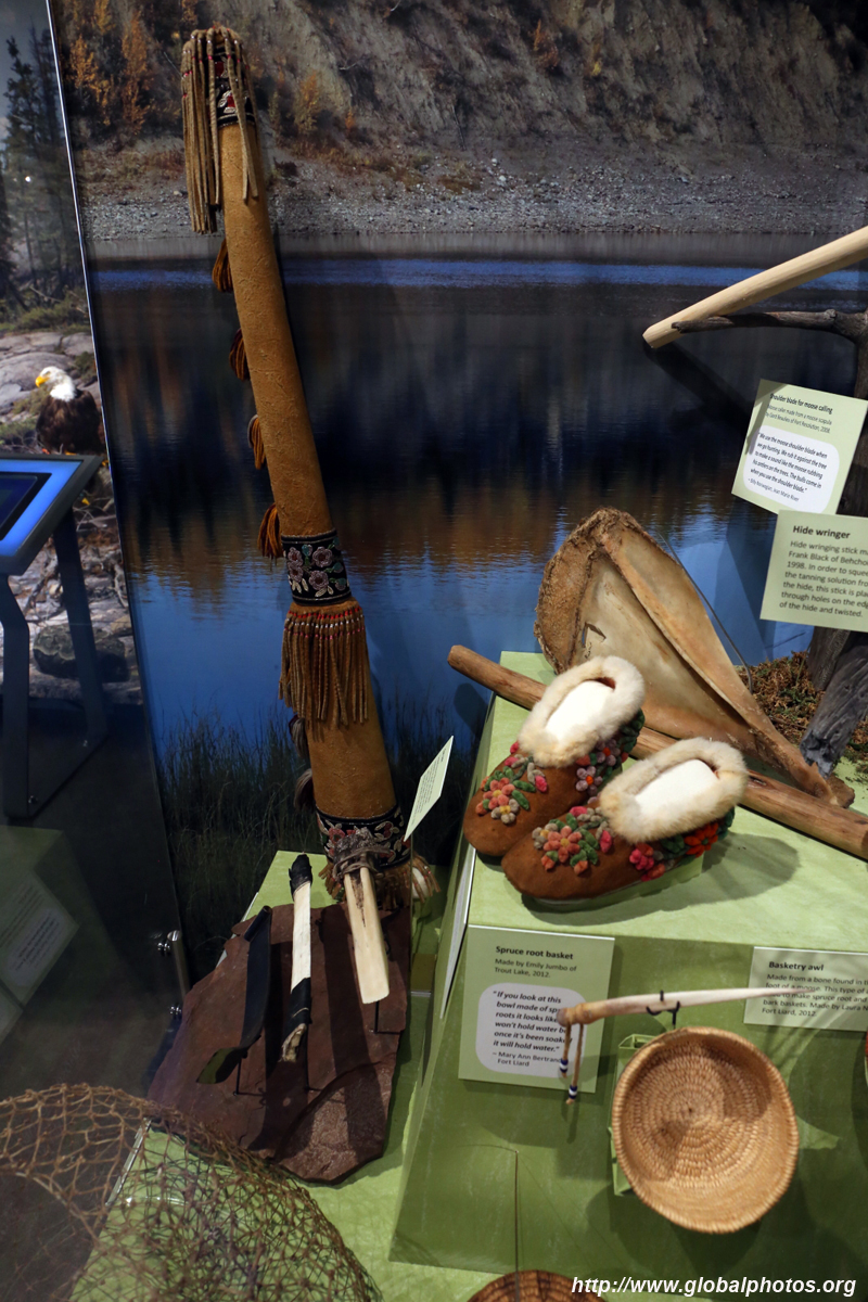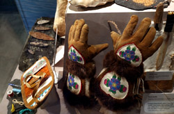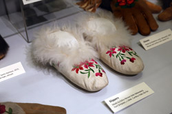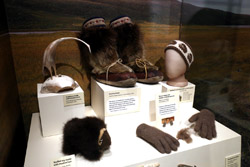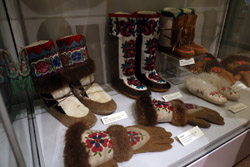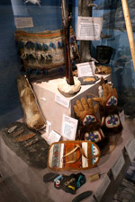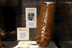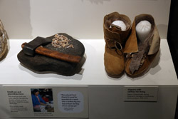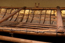 The mooseskin boat was popularly used in the late 1800s to the 1950s to carry cargo along the rivers. This example was built in 1981 and is the largest artifact in the museum.