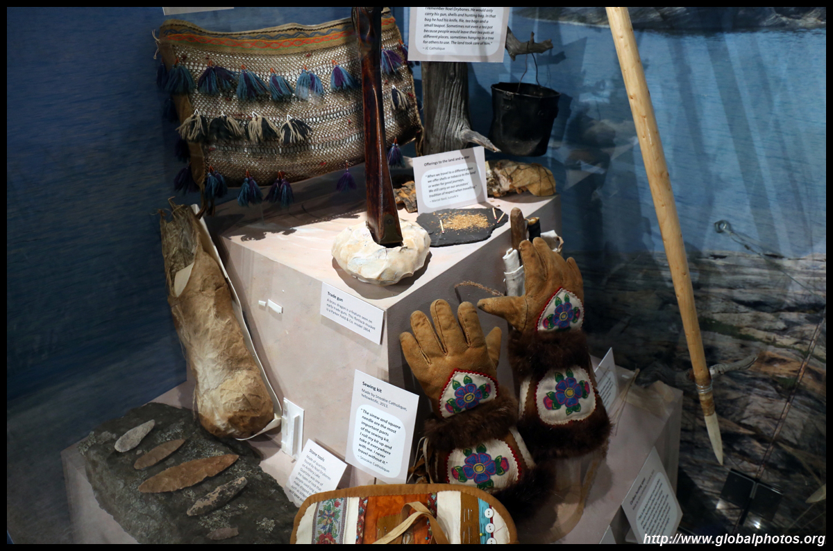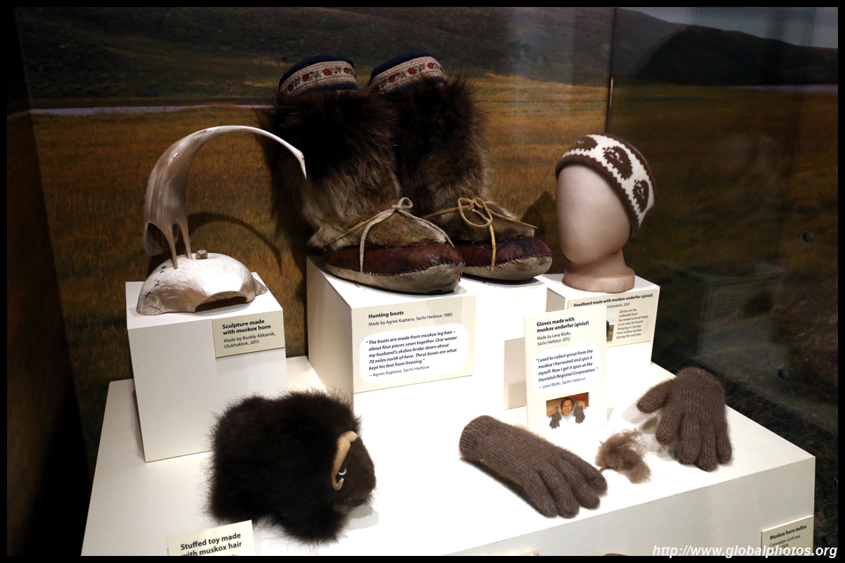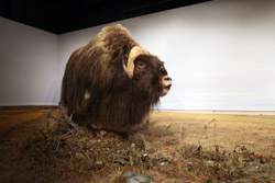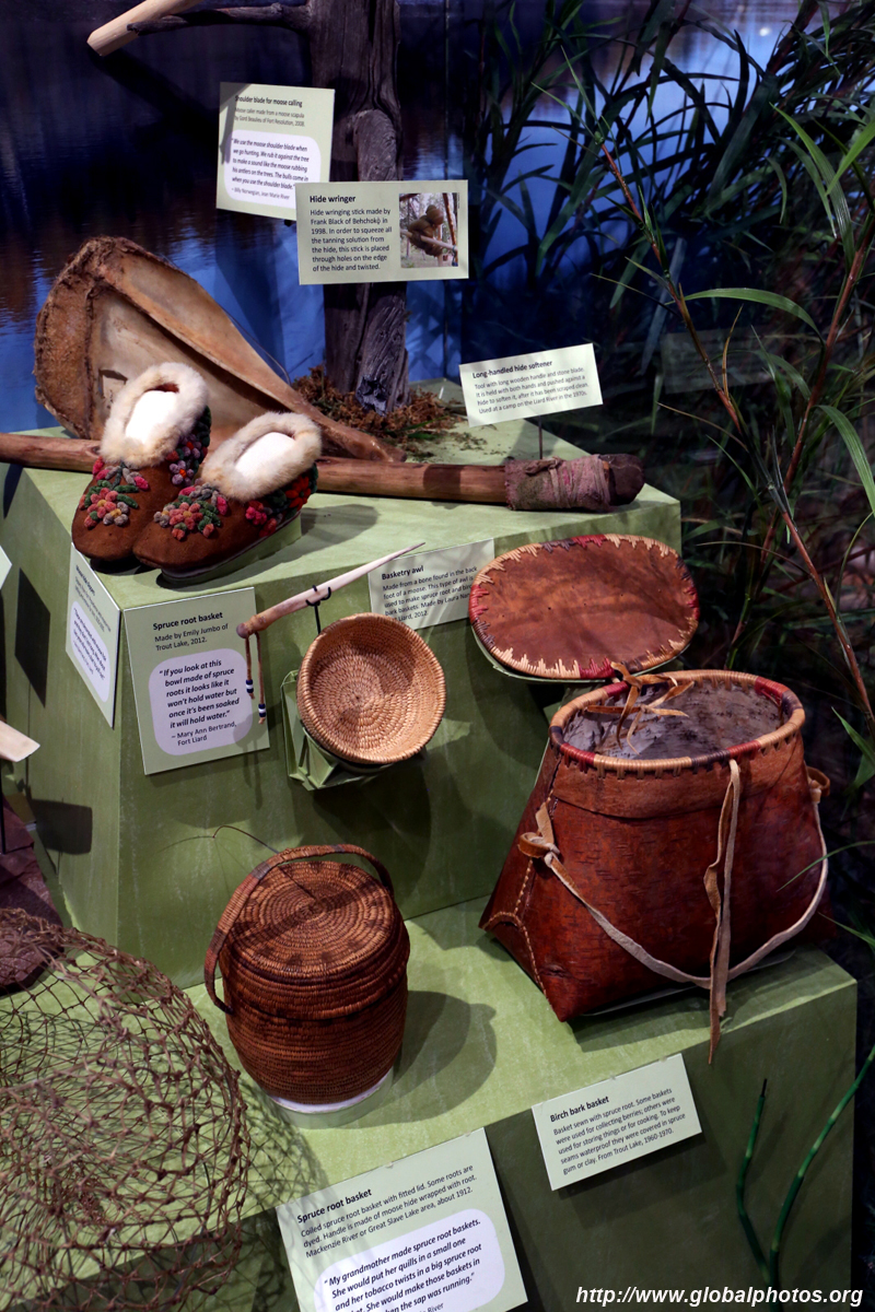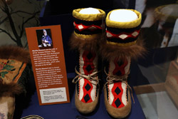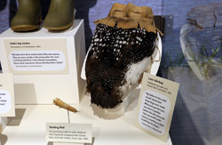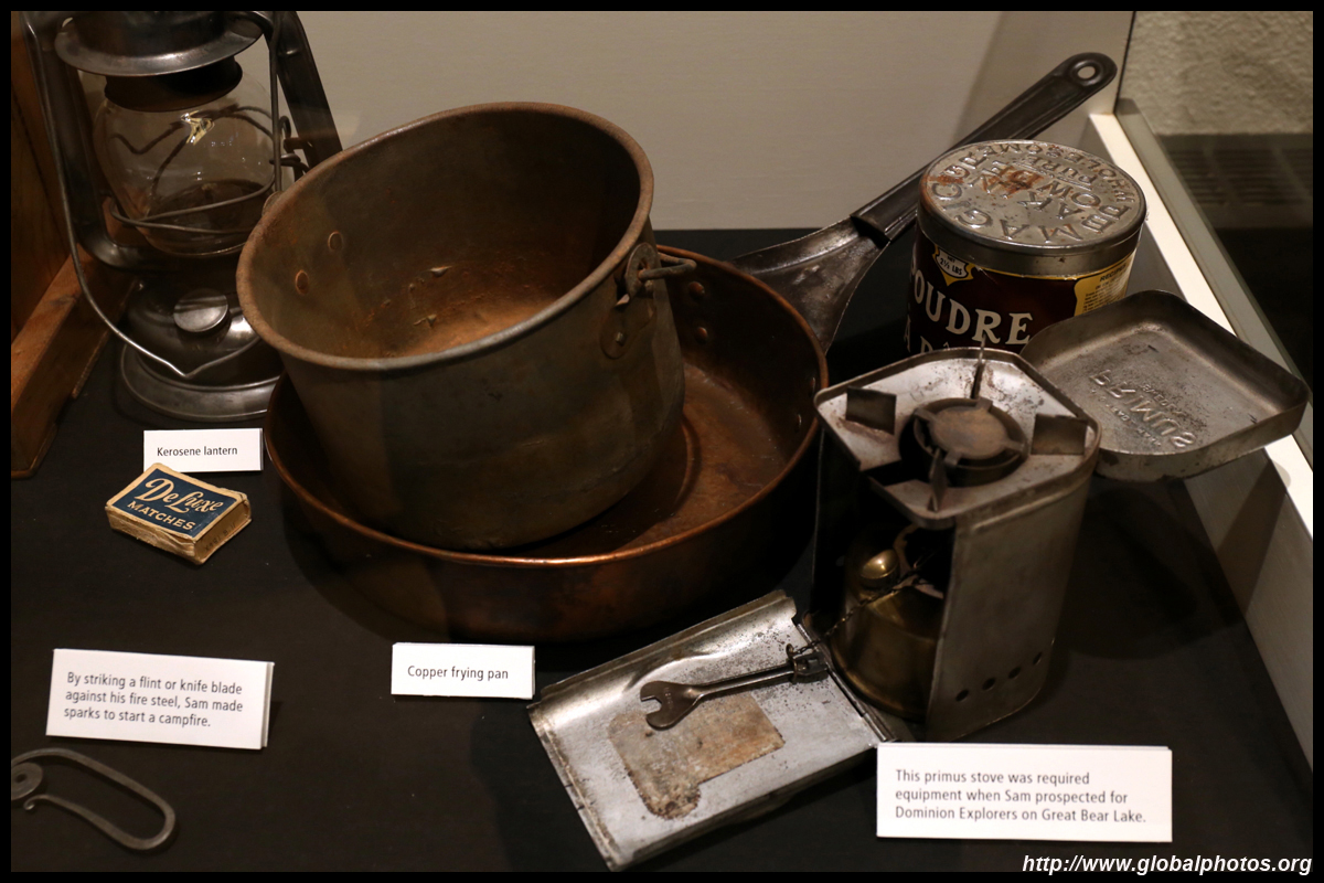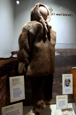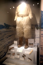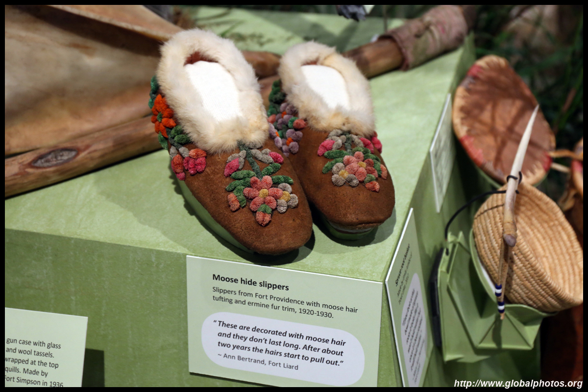 The mooseskin boat was popularly used in the late 1800s to the 1950s to carry cargo along the rivers. This example was built in 1981 and is the largest artifact in the museum.
