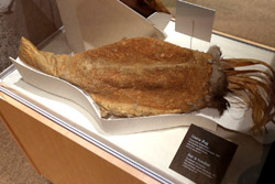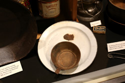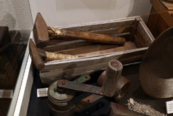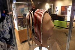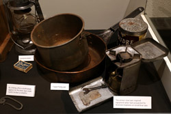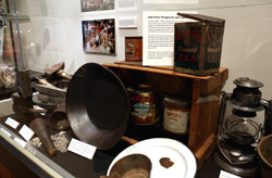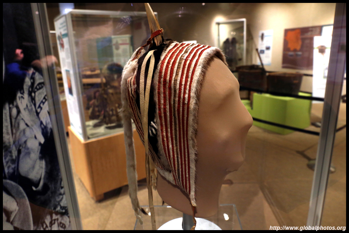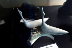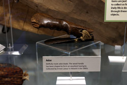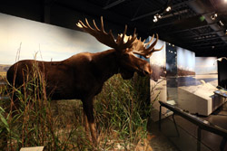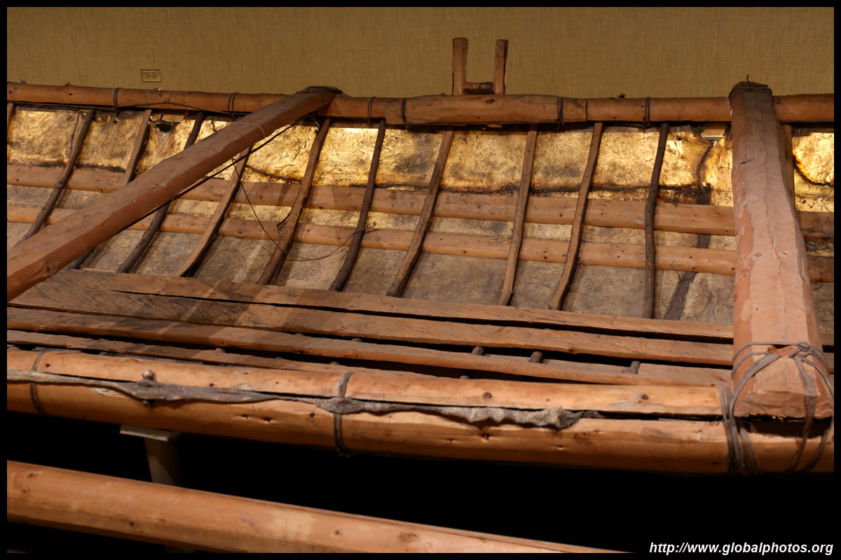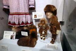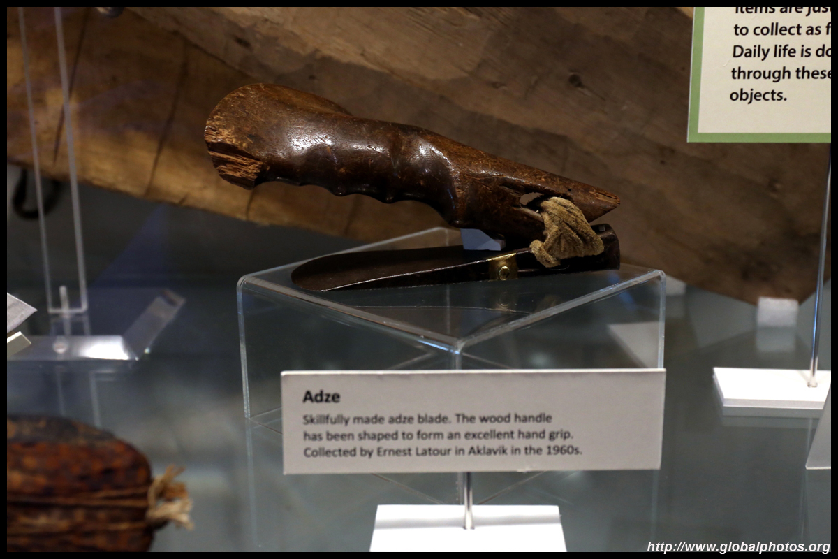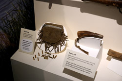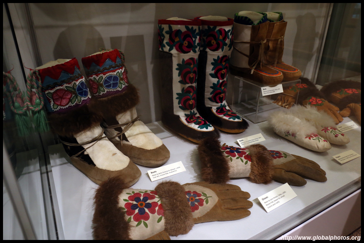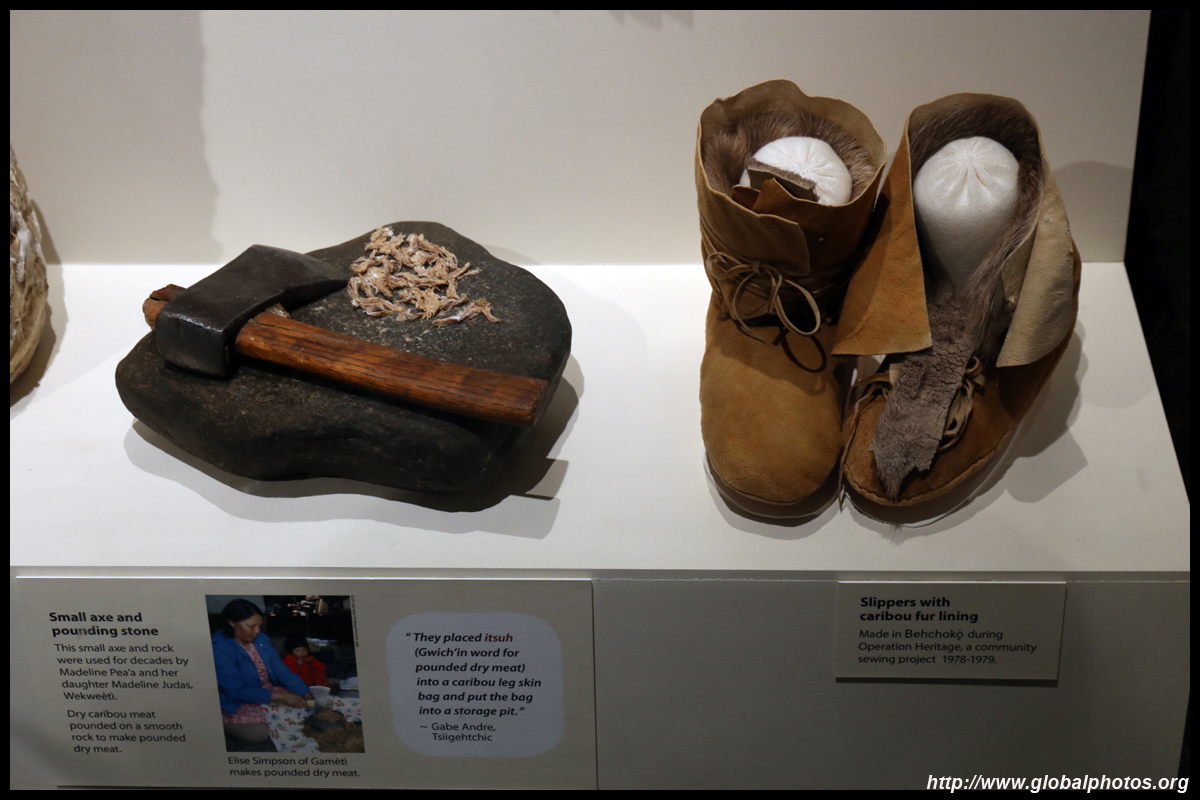 The mooseskin boat was popularly used in the late 1800s to the 1950s to carry cargo along the rivers. This example was built in 1981 and is the largest artifact in the museum.