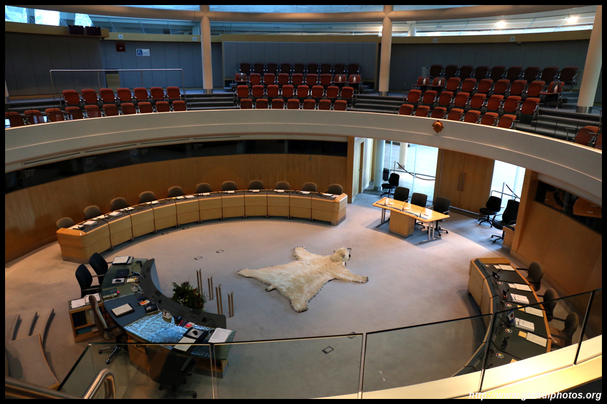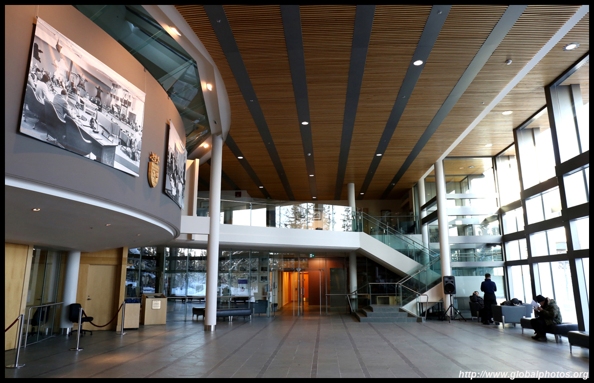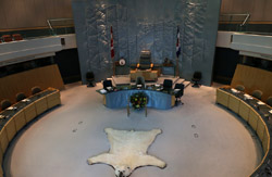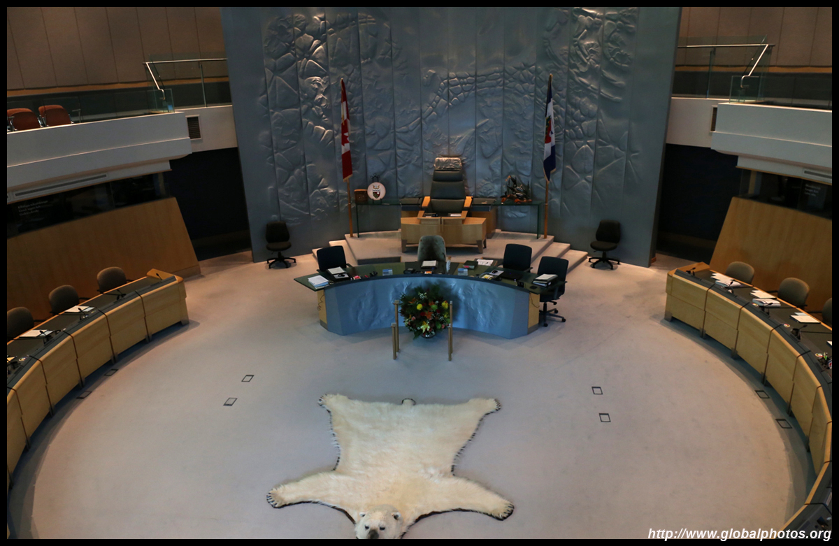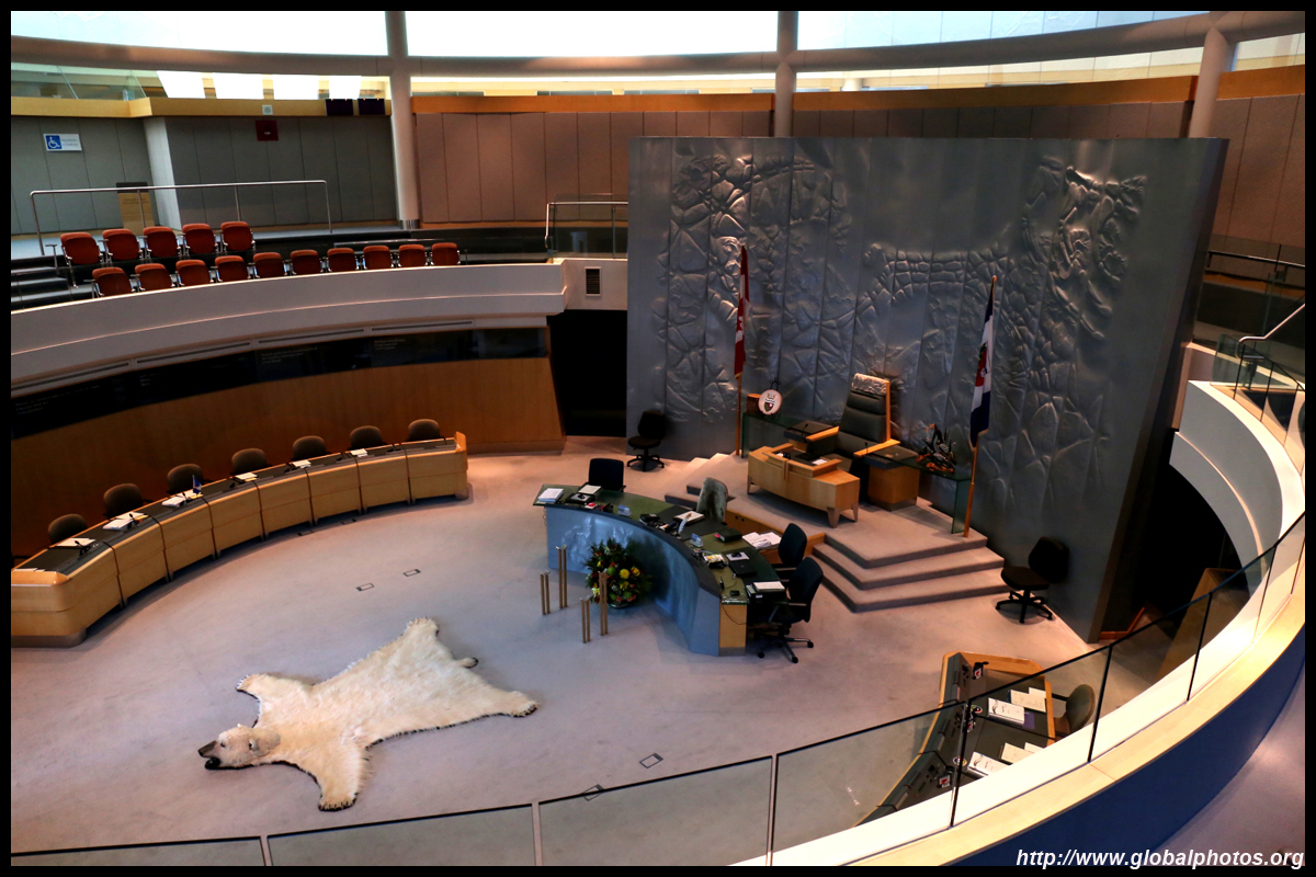 The Legislative Assembly building opened in 1993 on the shores of Flame Lake. While official tours only take place once a day on weekdays, it is possible to do a self-guided tour with a pamphlet from the information desk. The government in the Northwest Territories is unique in Canada as it is not party-based. Enter into the spacious Great Hall, which can be booked for non-profit activities, such as weddings.