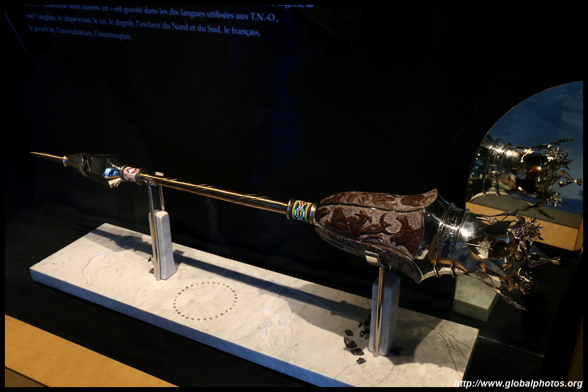 This mace was created in 1999 after Nunavut was carved out of the Northwest Territories. Made of silver and bronze, the mace weighs 12kg and is topped by a 1.3 carat diamond.