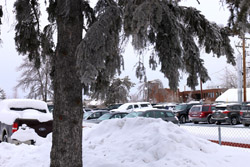 While the roads and sidewalks are not shovelled to their concrete or asphalt surfaces, it was not icy or slippery when walking around in snow boots.