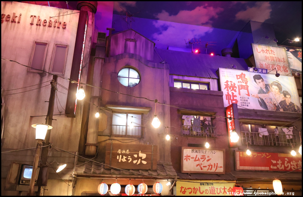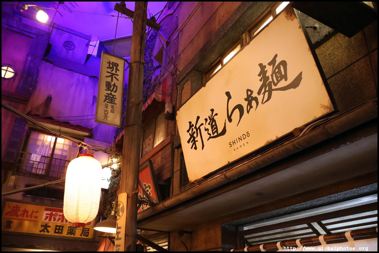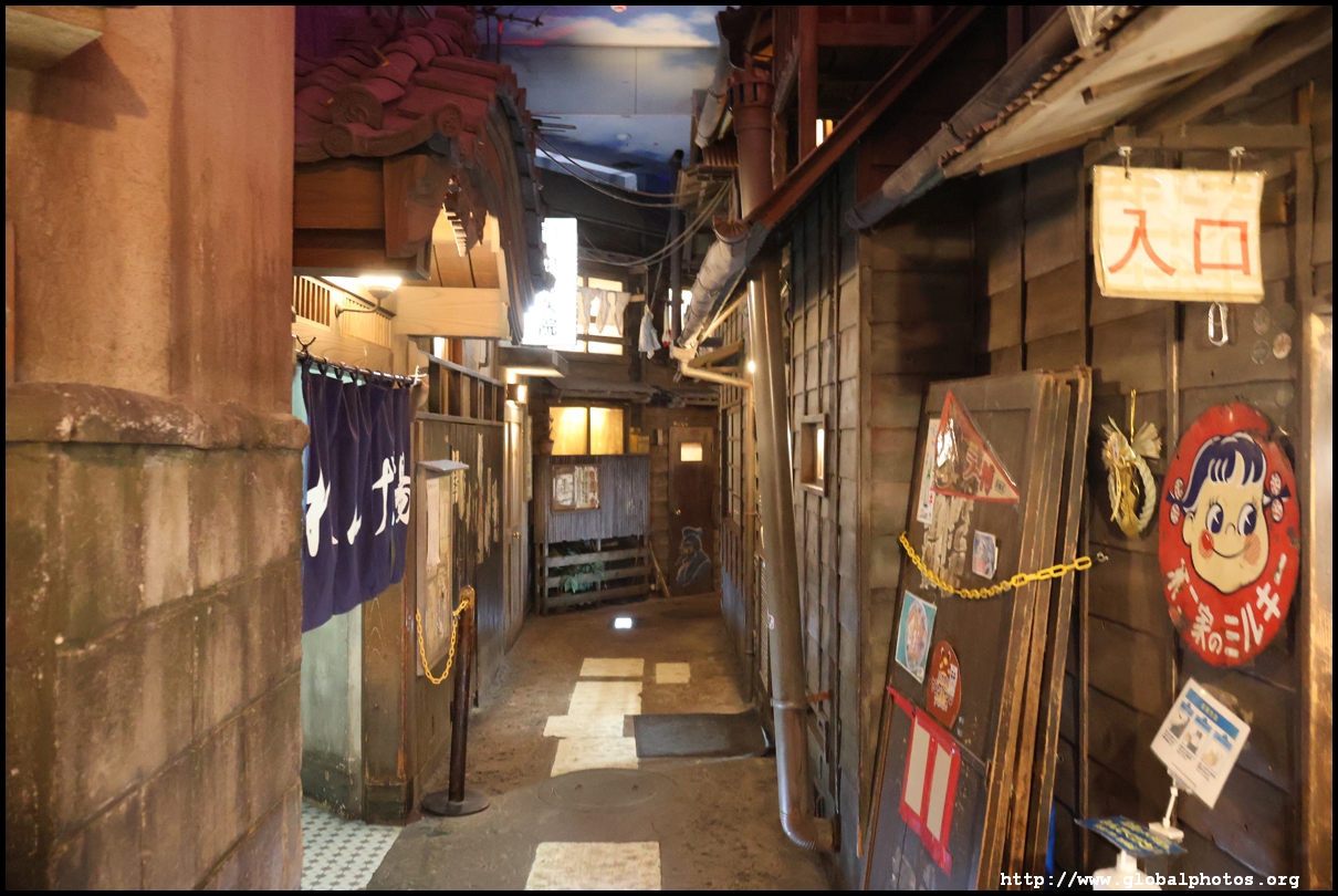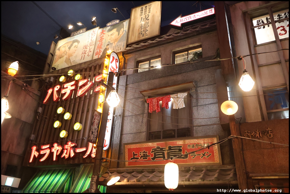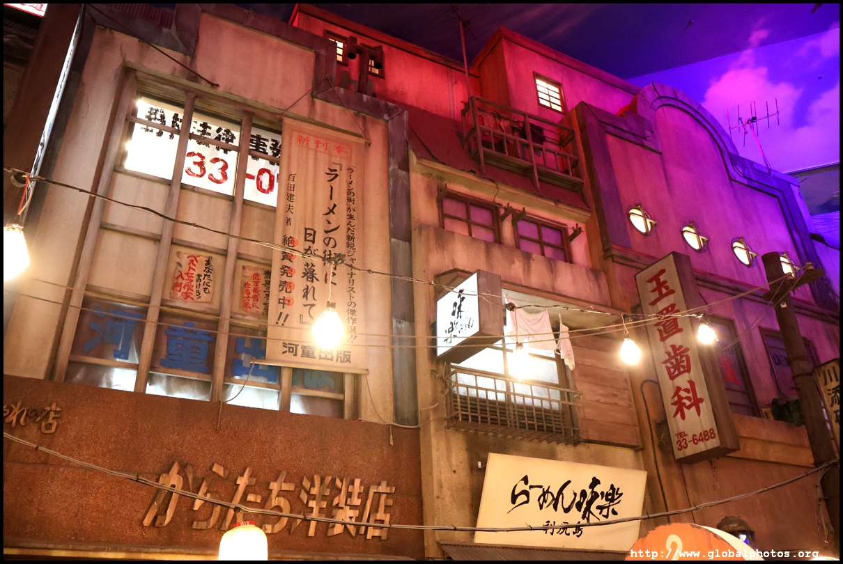 Founded in 1994, their website touts they are the world's first ramen-themed amusement park. After paying a 450 yen ticket, I headed downstairs to see an amazing scene from the past. They've recreated a shopping street scene from the late 1950s with different ramen restaurants incorporated in the old-looking buildings.