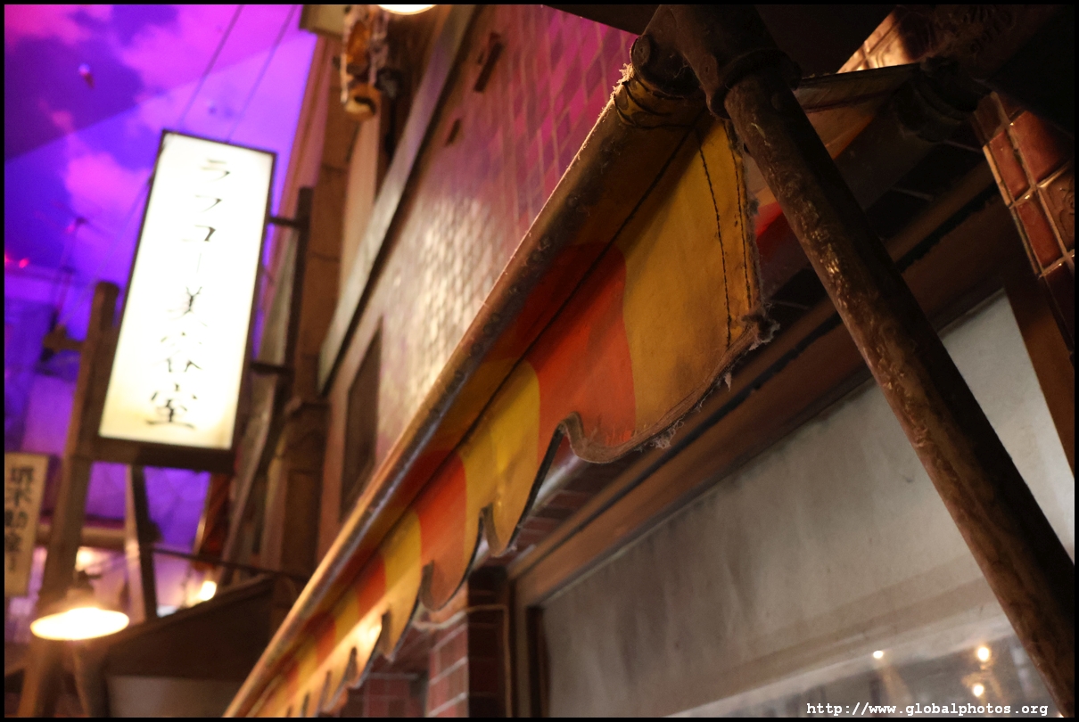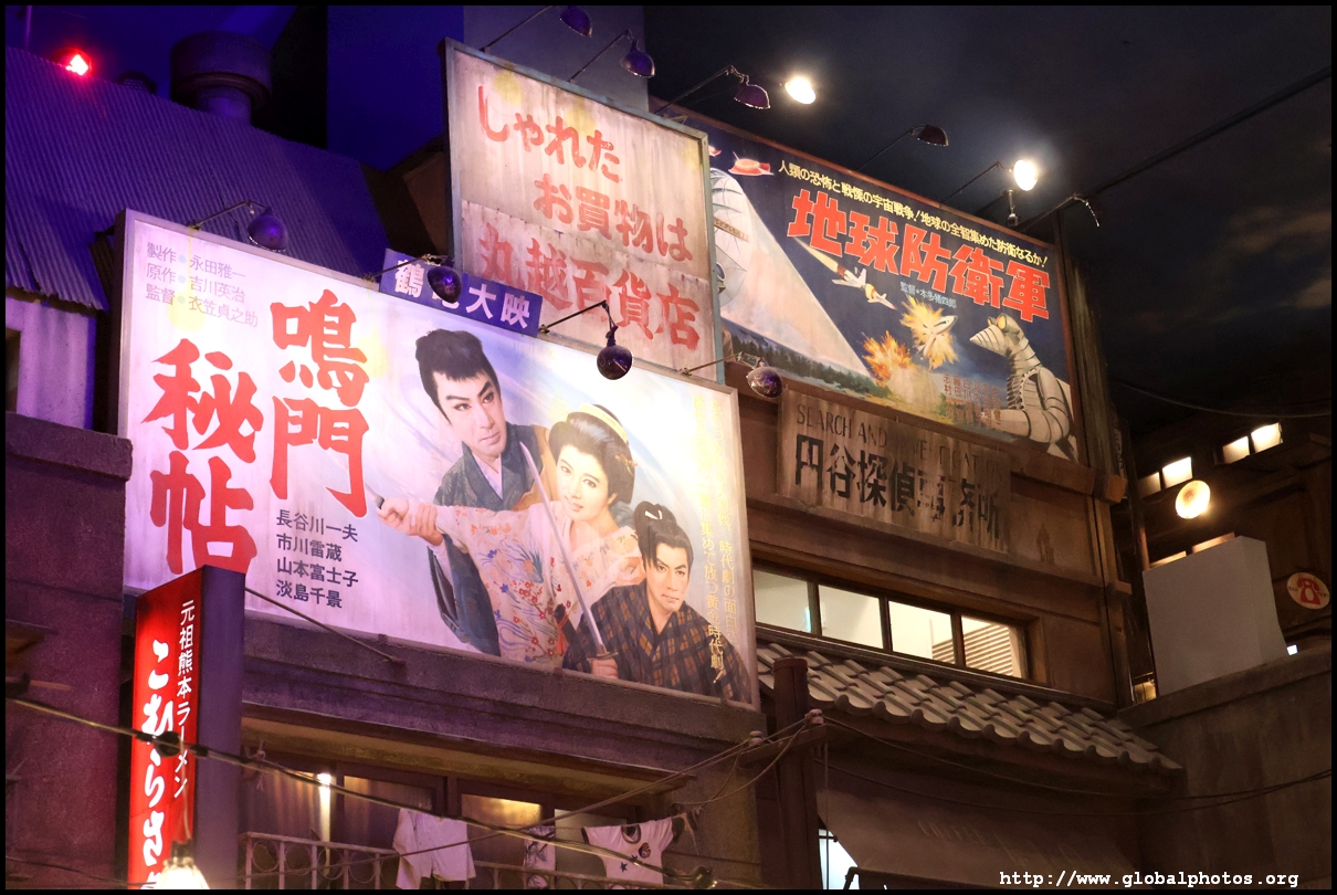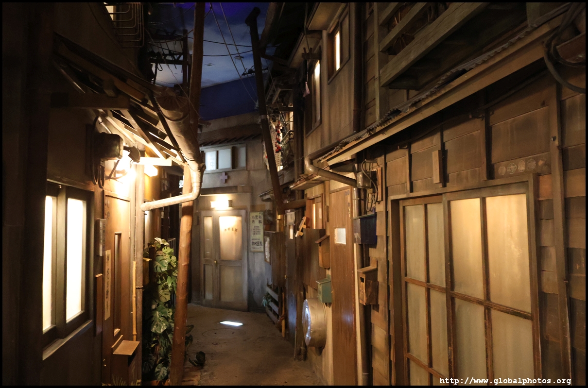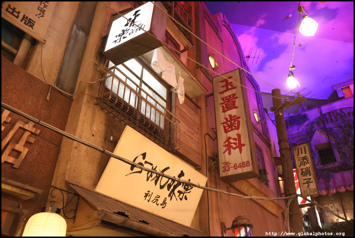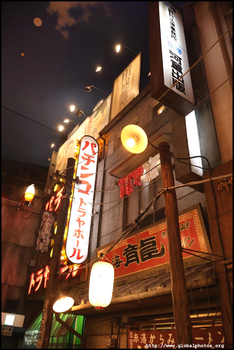 Founded in 1994, their website touts they are the world's first ramen-themed amusement park. After paying a 450 yen ticket, I headed downstairs to see an amazing scene from the past. They've recreated a shopping street scene from the late 1950s with different ramen restaurants incorporated in the old-looking buildings.