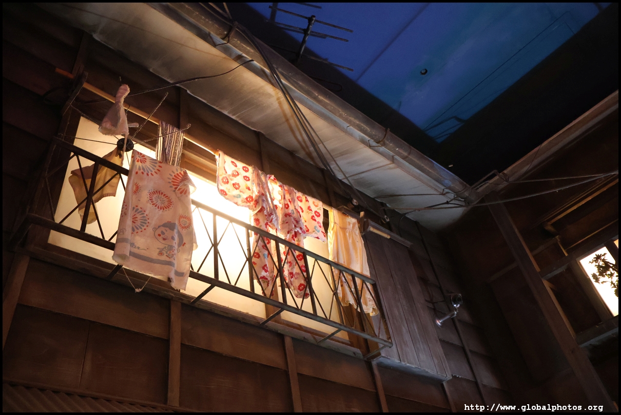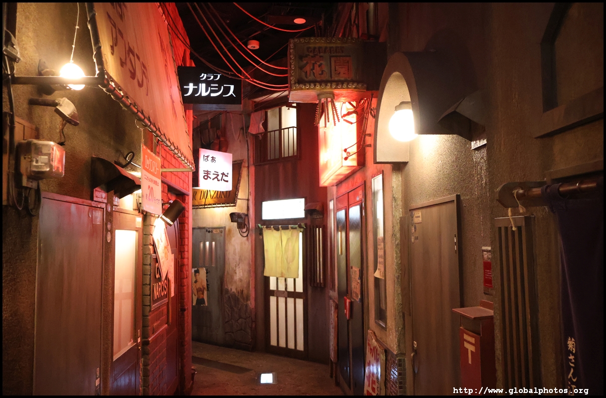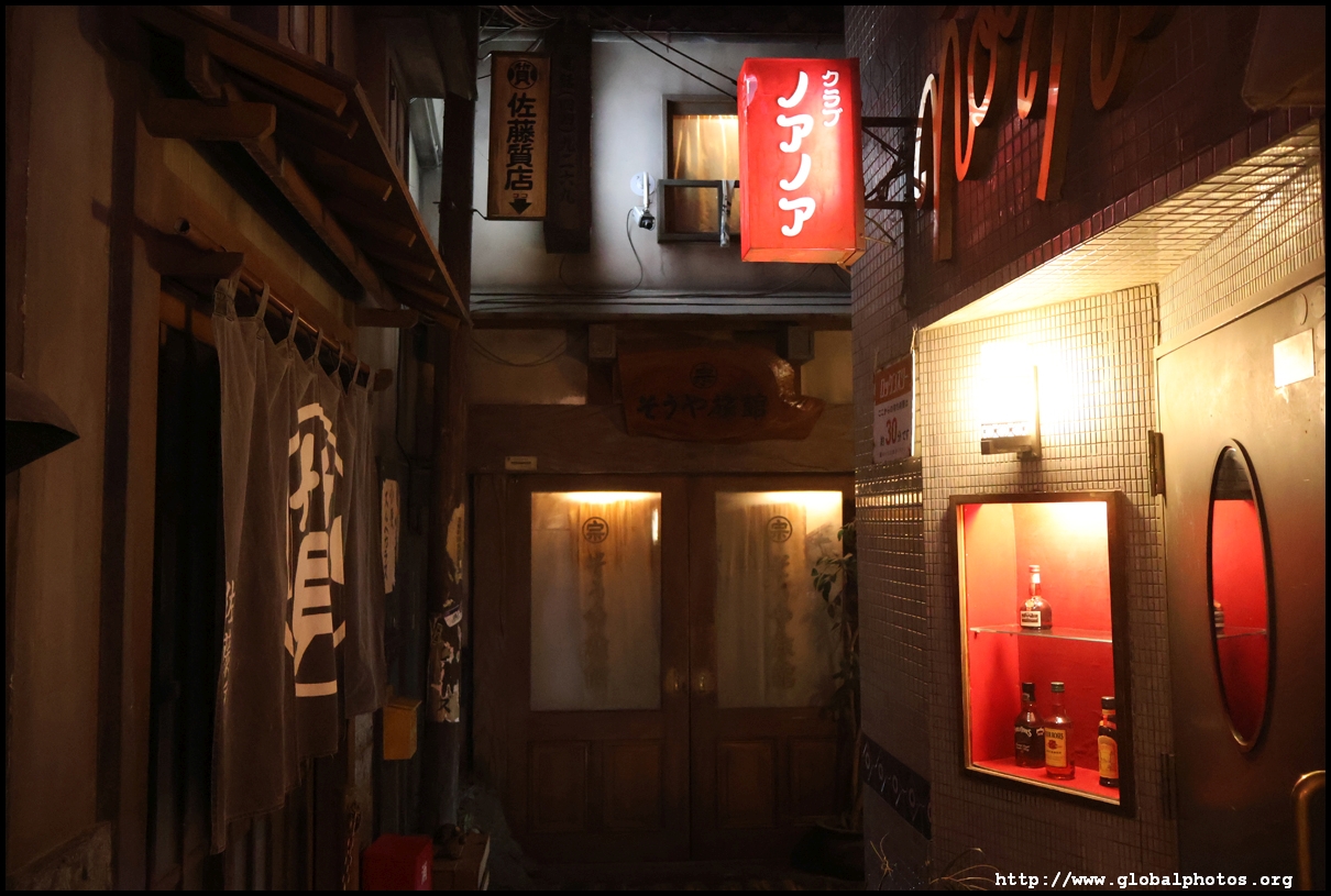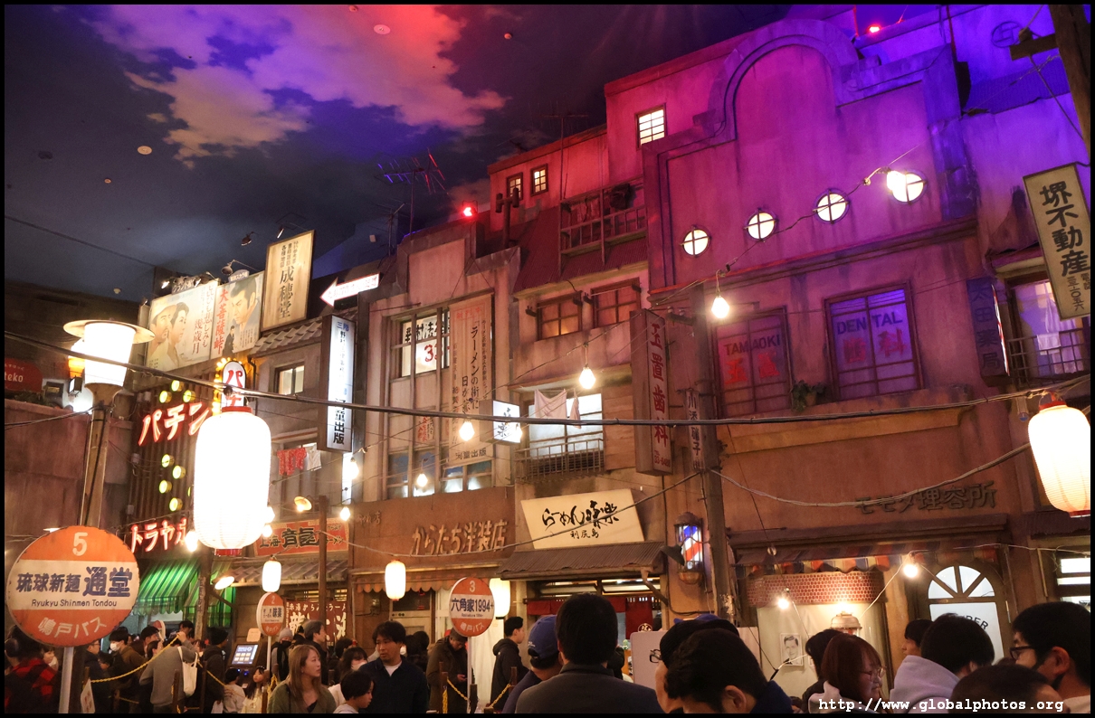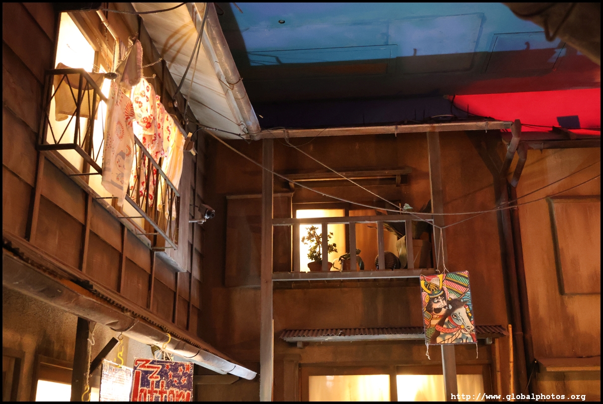 Founded in 1994, their website touts they are the world's first ramen-themed amusement park. After paying a 450 yen ticket, I headed downstairs to see an amazing scene from the past. They've recreated a shopping street scene from the late 1950s with different ramen restaurants incorporated in the old-looking buildings.