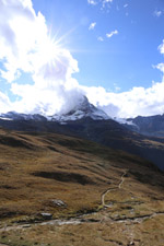 From Riffelberg, head to the trails and walk downhill to the next stop at Riffelalp.
