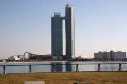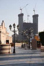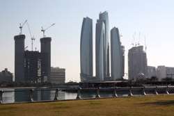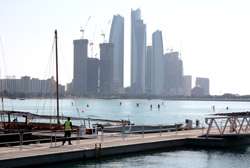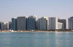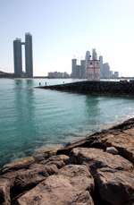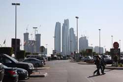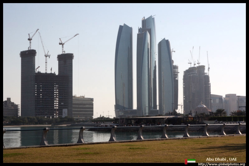 Etihad Towers is a five-tower complex whose construction started in 2006. Designed by Australian architects DBI Design, it includes residences, offices, and a hotel.