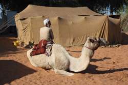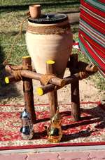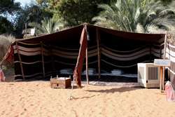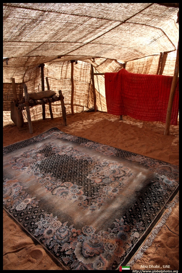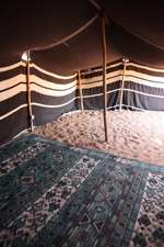 Hide from the heat inside this tent, and enjoy a warm drink while sitting on the carpet.