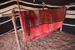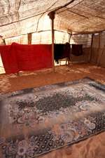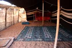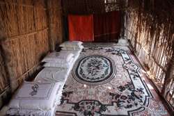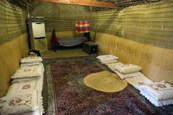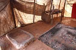 The greeting room is simply decorated but has a huge meaning in a tent household.