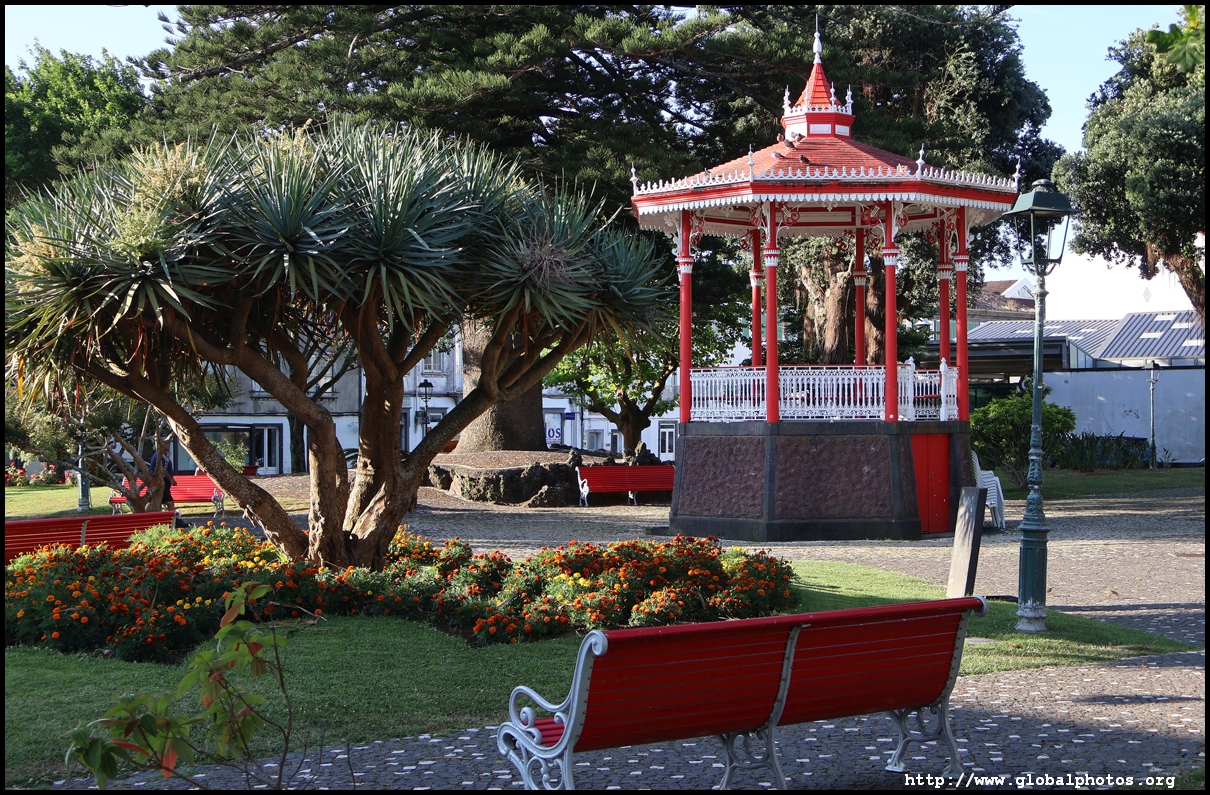 Jardim da Praca da Republica sits on a former convent and named after the Portuguese republic's establishment in 1910. What we see today is a re-design from the 1930s with a red and white bandstand, small lake, and rocks.