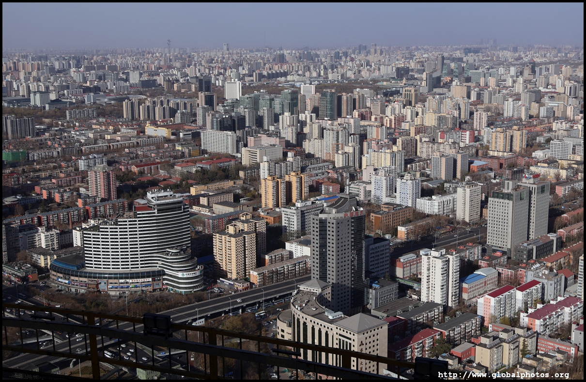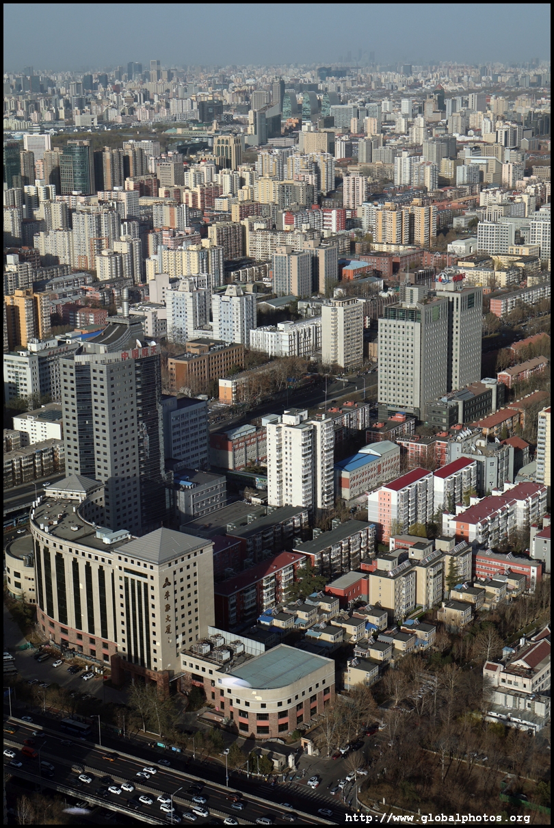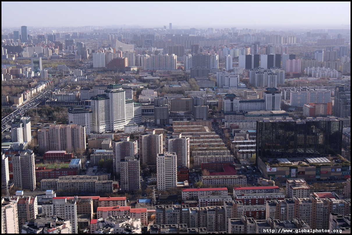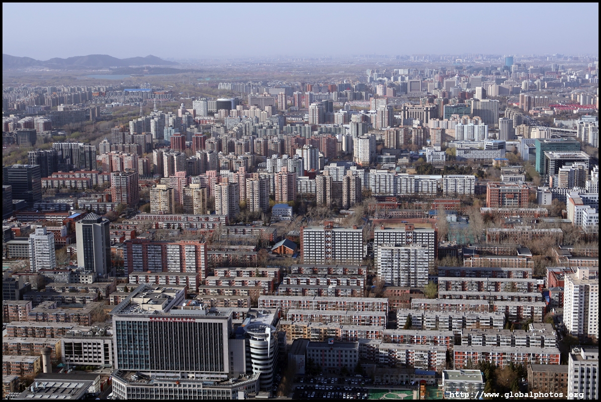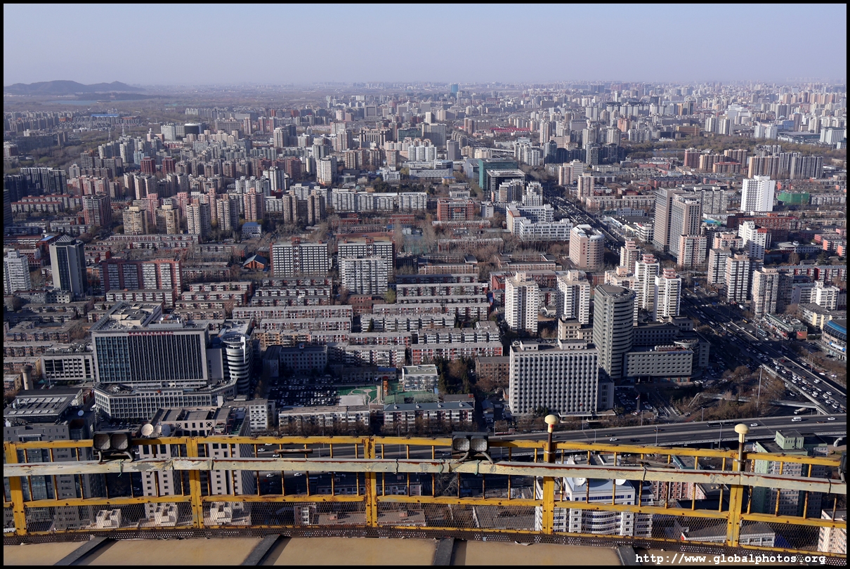The tower is located on the 3rd ring road, with residential suburbs extending as far as the eye can see in all directions.
