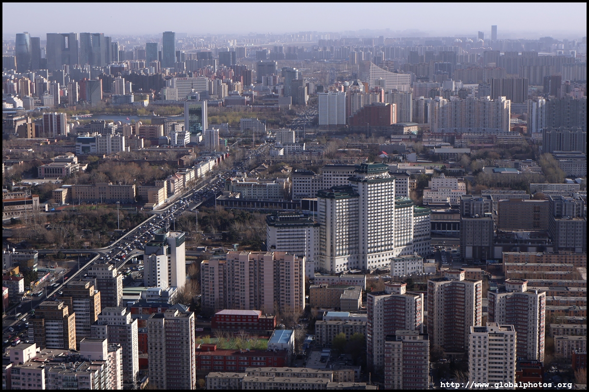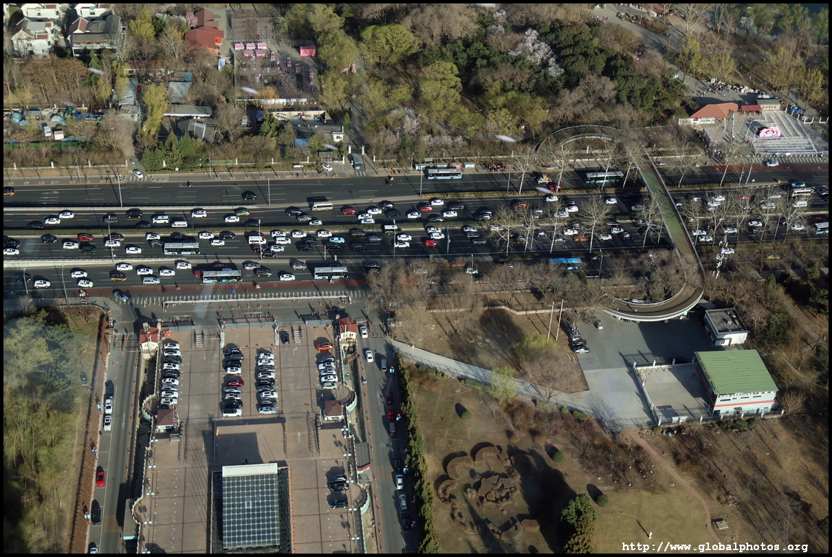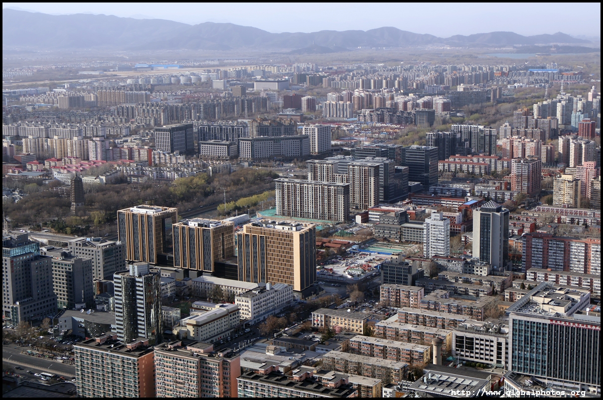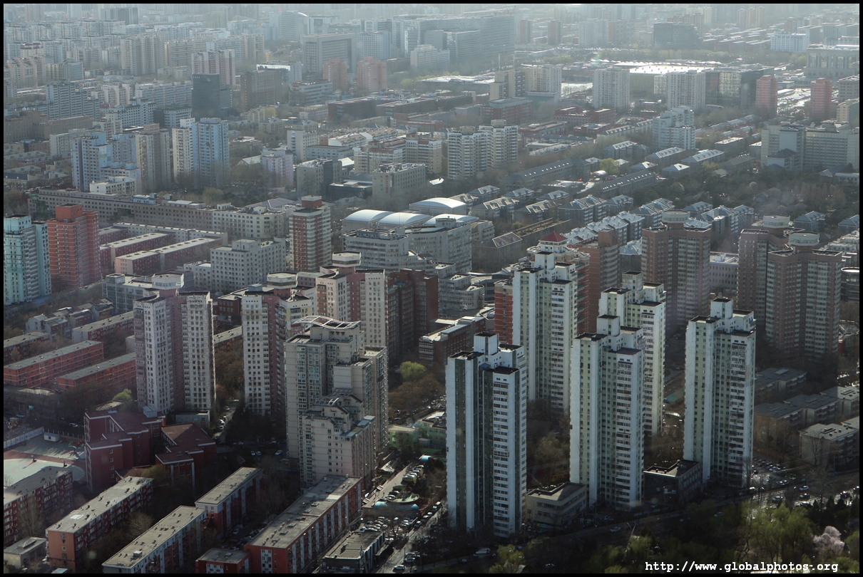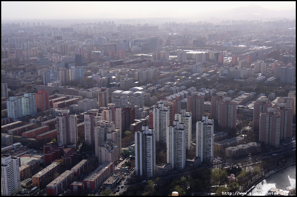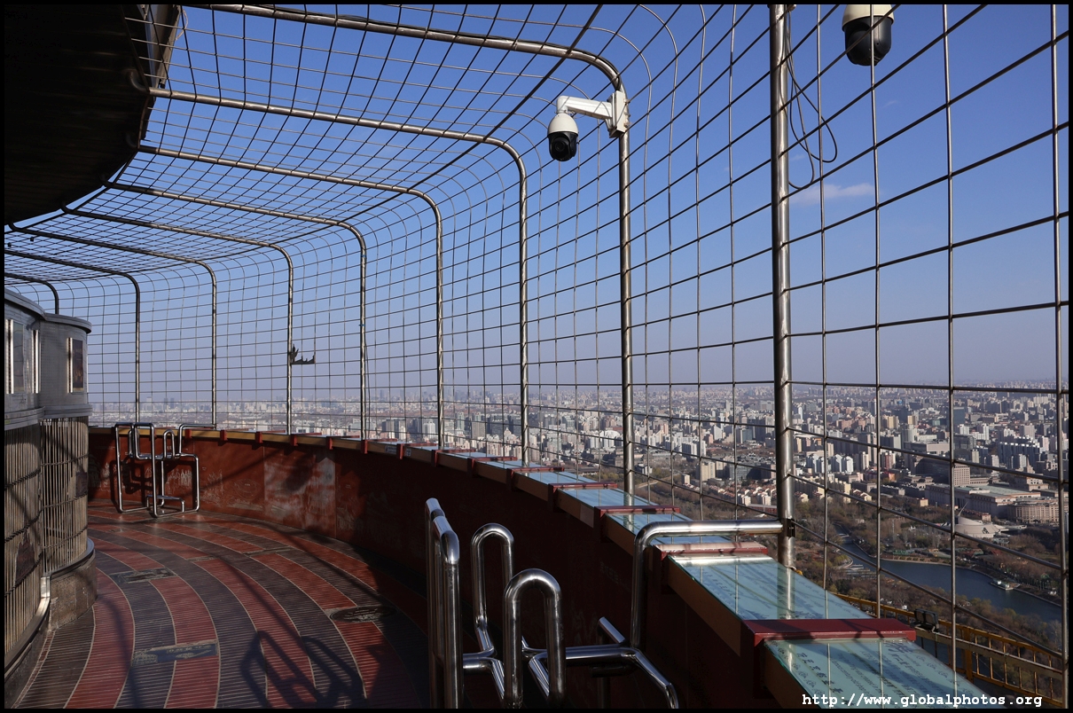 The tower is located on the 3rd ring road, with residential suburbs extending as far as the eye can see in all directions.