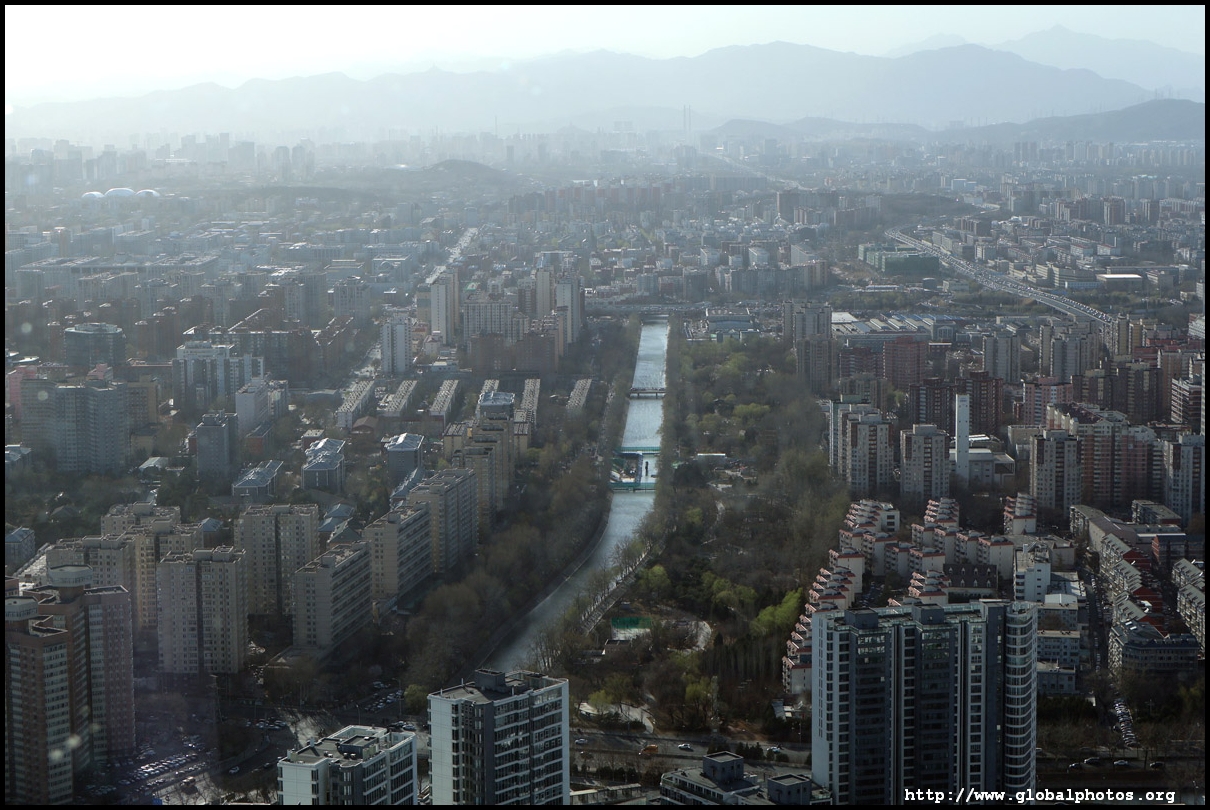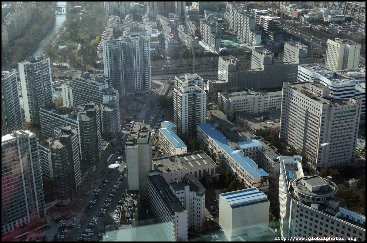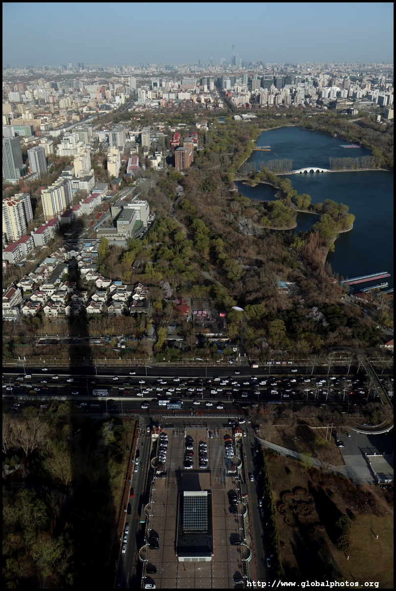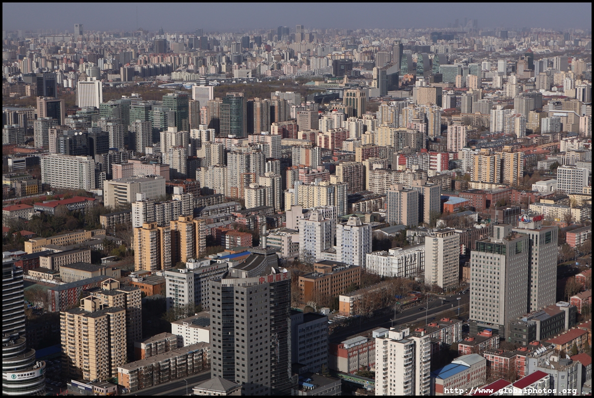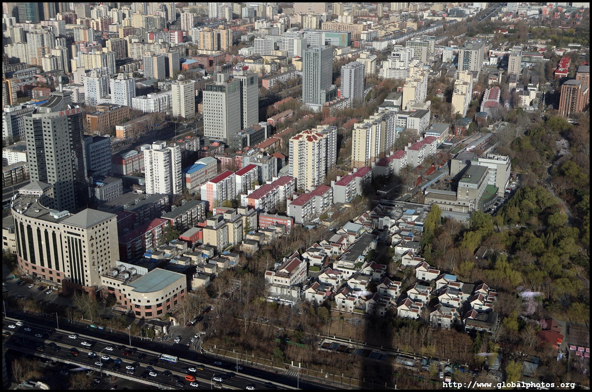 The tower is located on the 3rd ring road, with residential suburbs extending as far as the eye can see in all directions.