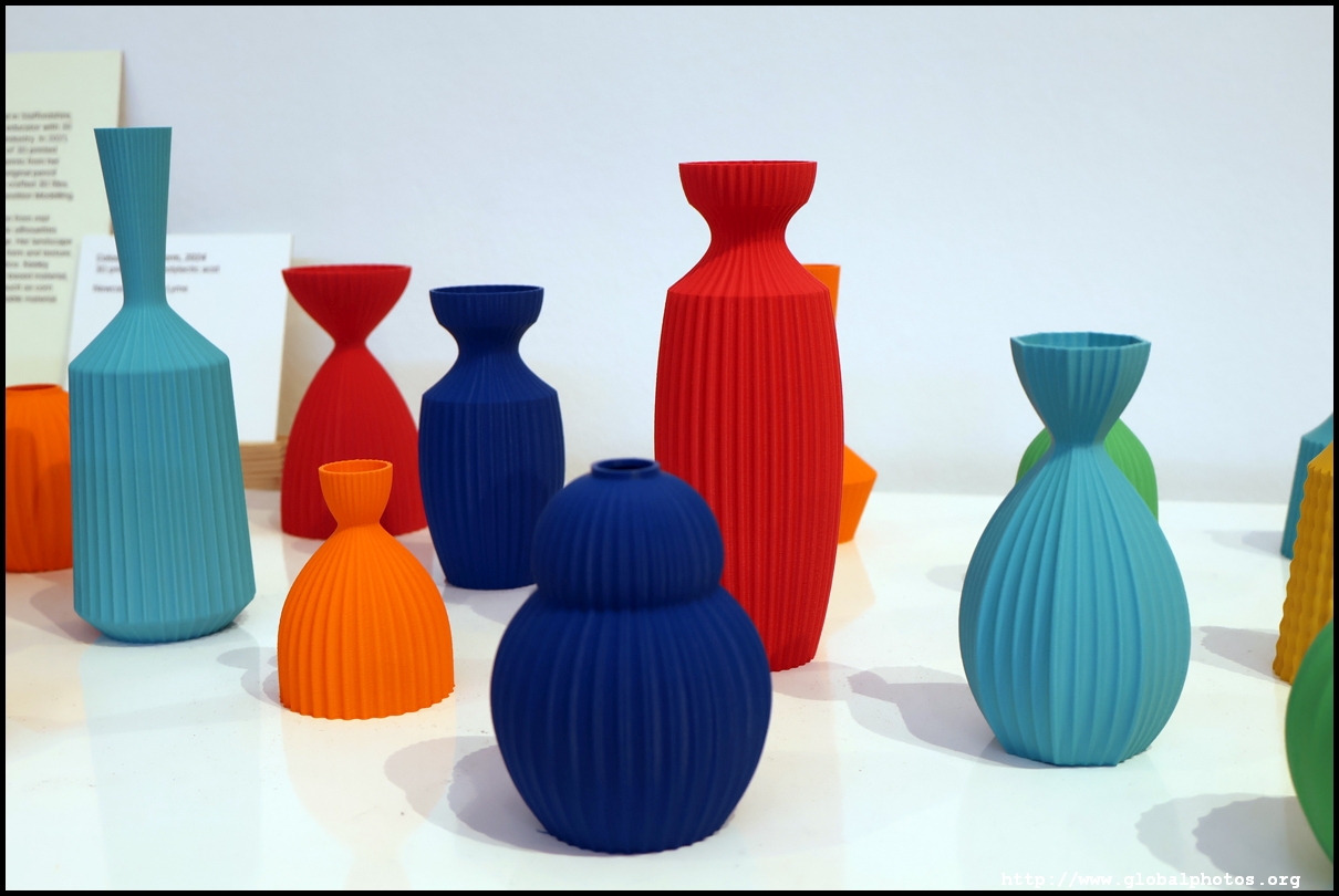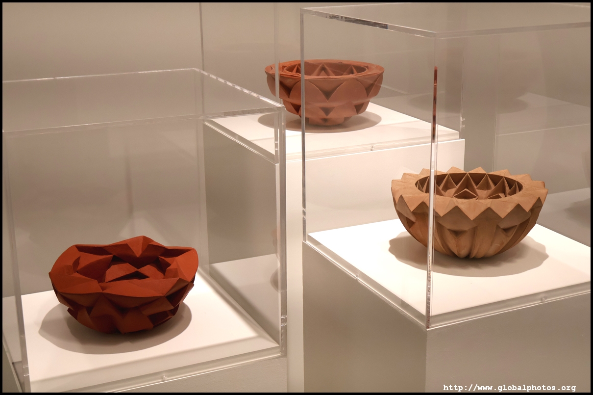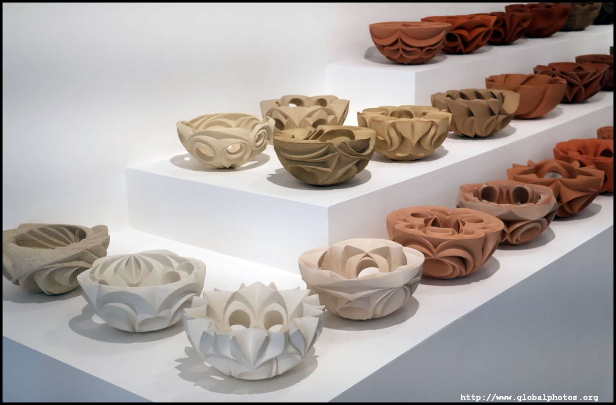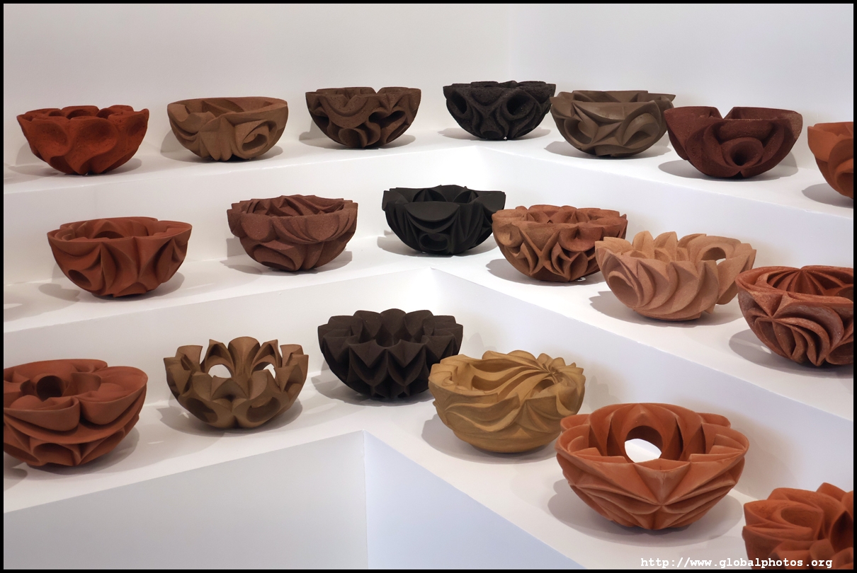 She also has 3 further works on display here showing the geometric forms, carving, and patterns that define her practice.