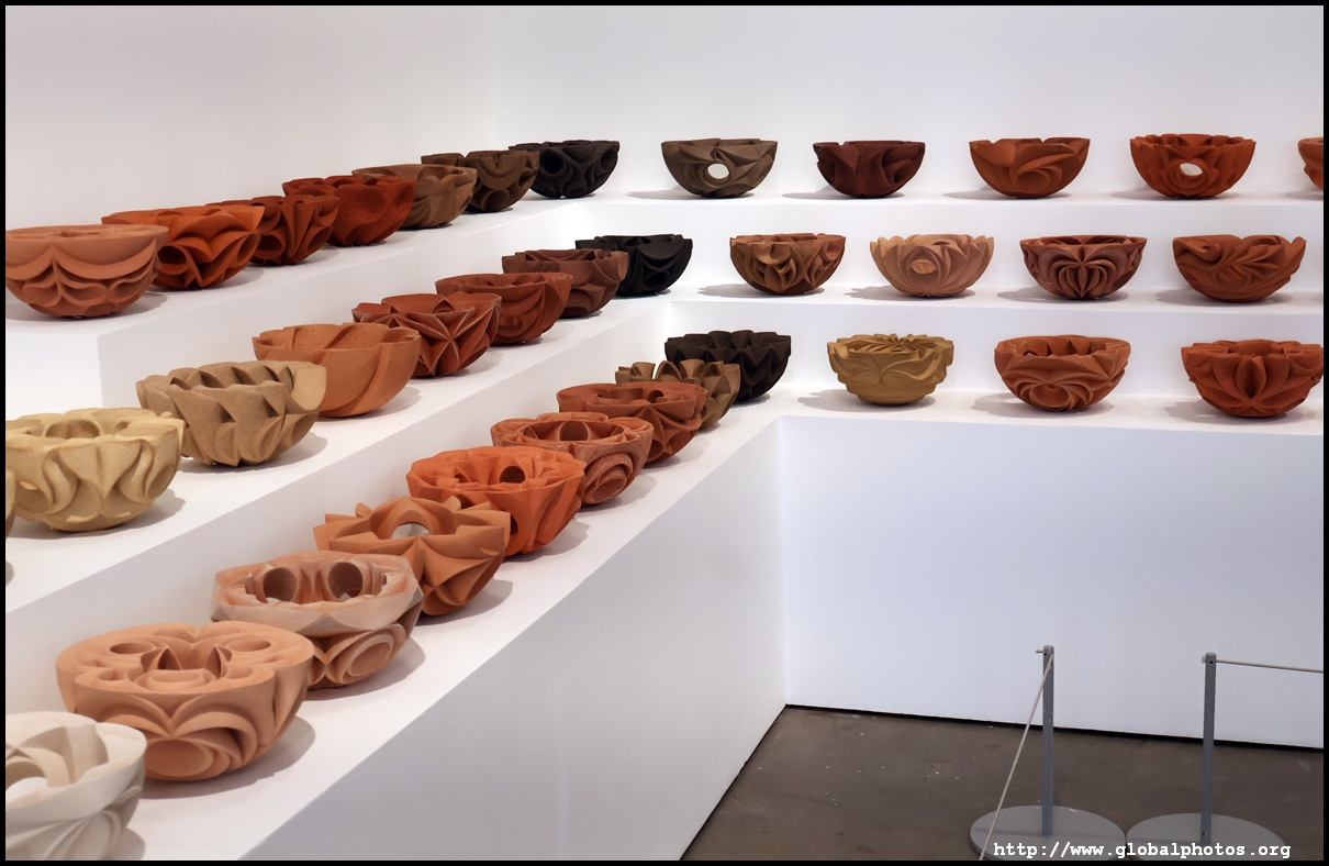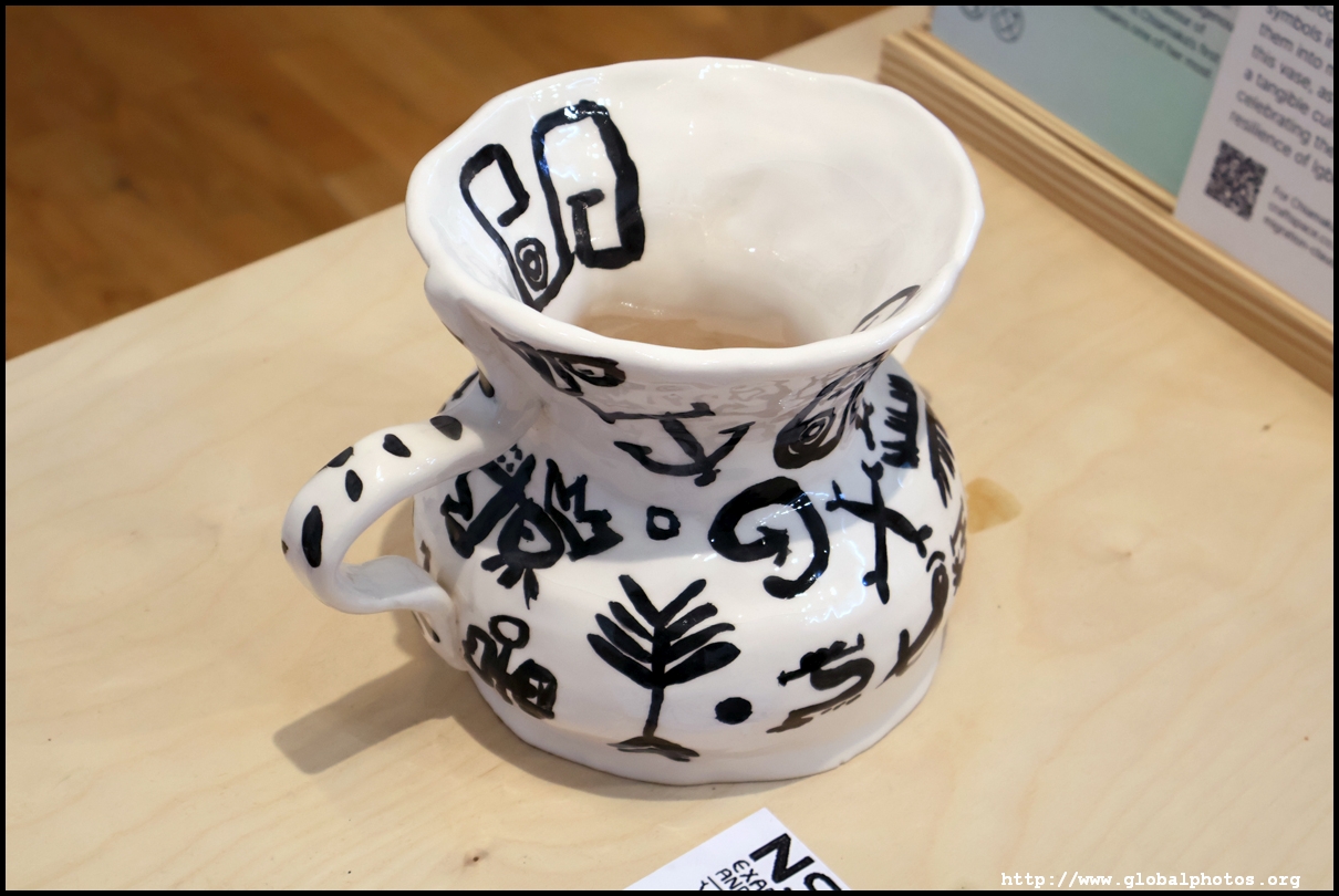 Halima Cassell's hand-carved ceramic vessels were made with clay gifted by others from around the world, symbolizing nothing is created in isolation.