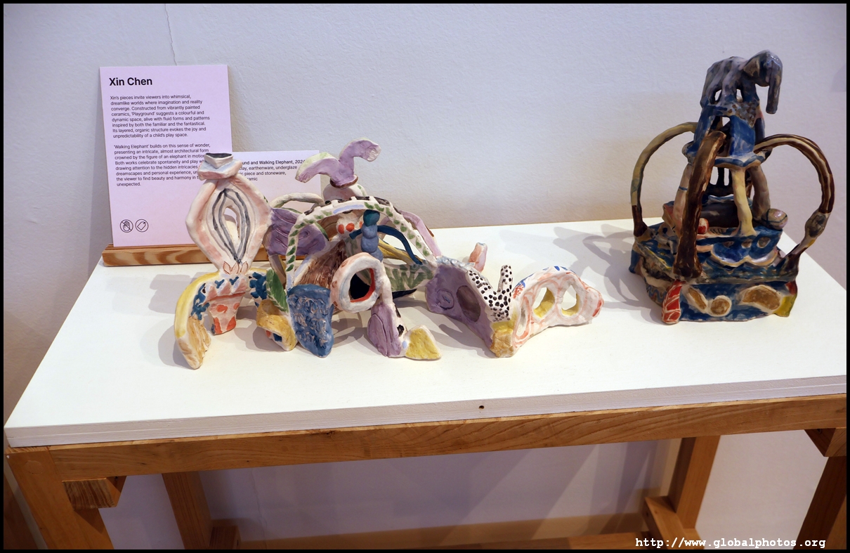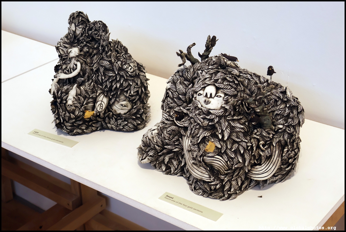 The Ikon Gallery is a contemporary art gallery in a repurposed Victorian boarding school. During my visit, there were two exhibitions on offer."Break the Mould" focuses on ceramics and experimenting with clay that challenges the traditional boundaries. At the entrance is Jack Ky Tan's ceramic urns inspired by ceremonial bronzes from the Shang Dynasty.
